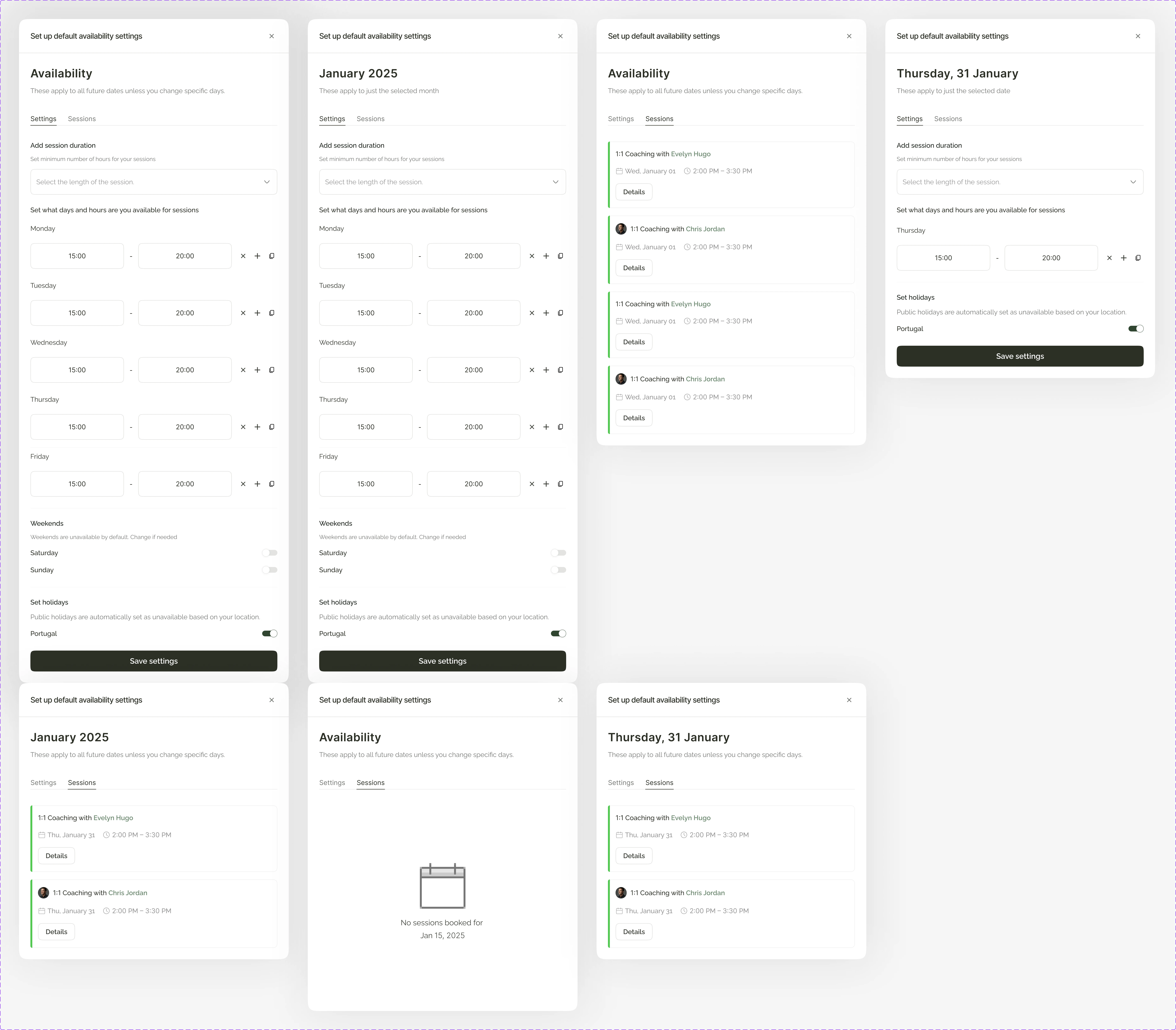 Availability settings modals