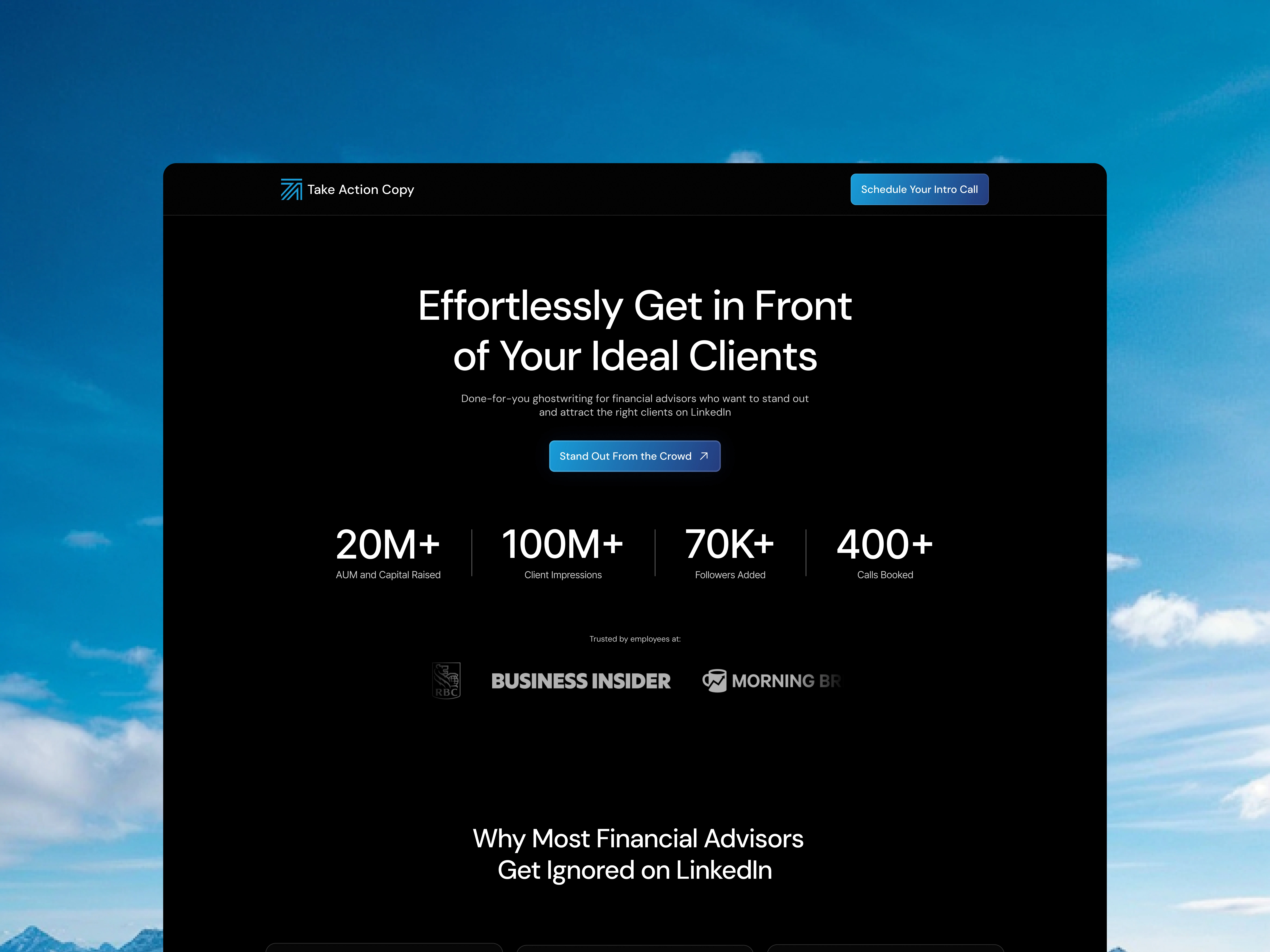 ➡ Turn financial advisors from “curious” into “confident enough to book a call.”