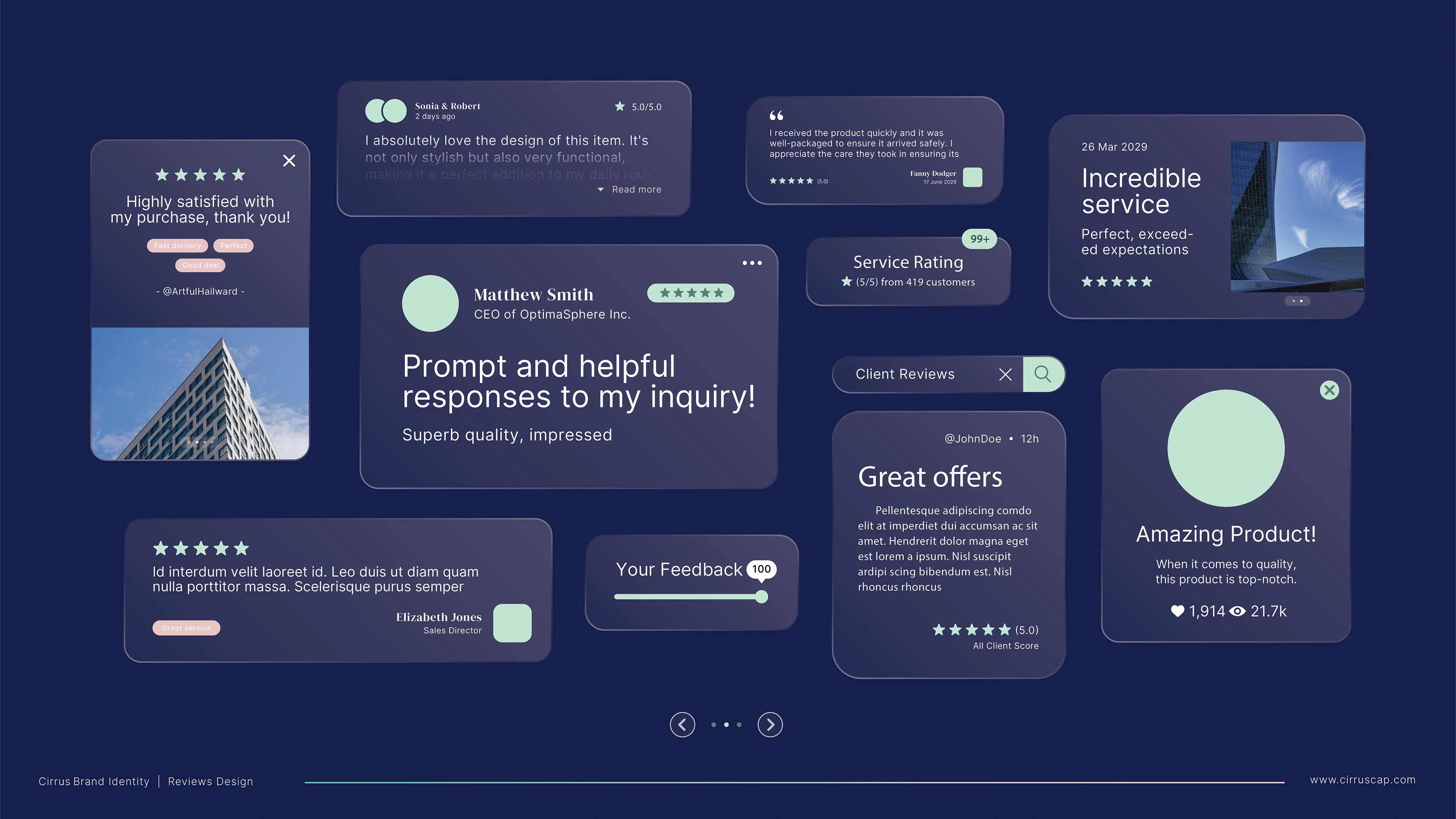 The identity was developed to project clarity, sophistication, and reliability. A refined logo anchors the visual system. The color palette and typography support a professional and approachable tone. Review designs highlight client trust, and the stationery system ensures consistent brand touchpoints. The Brand Book provides all guidelines for correct usage, ensuring long-term visual coherence.