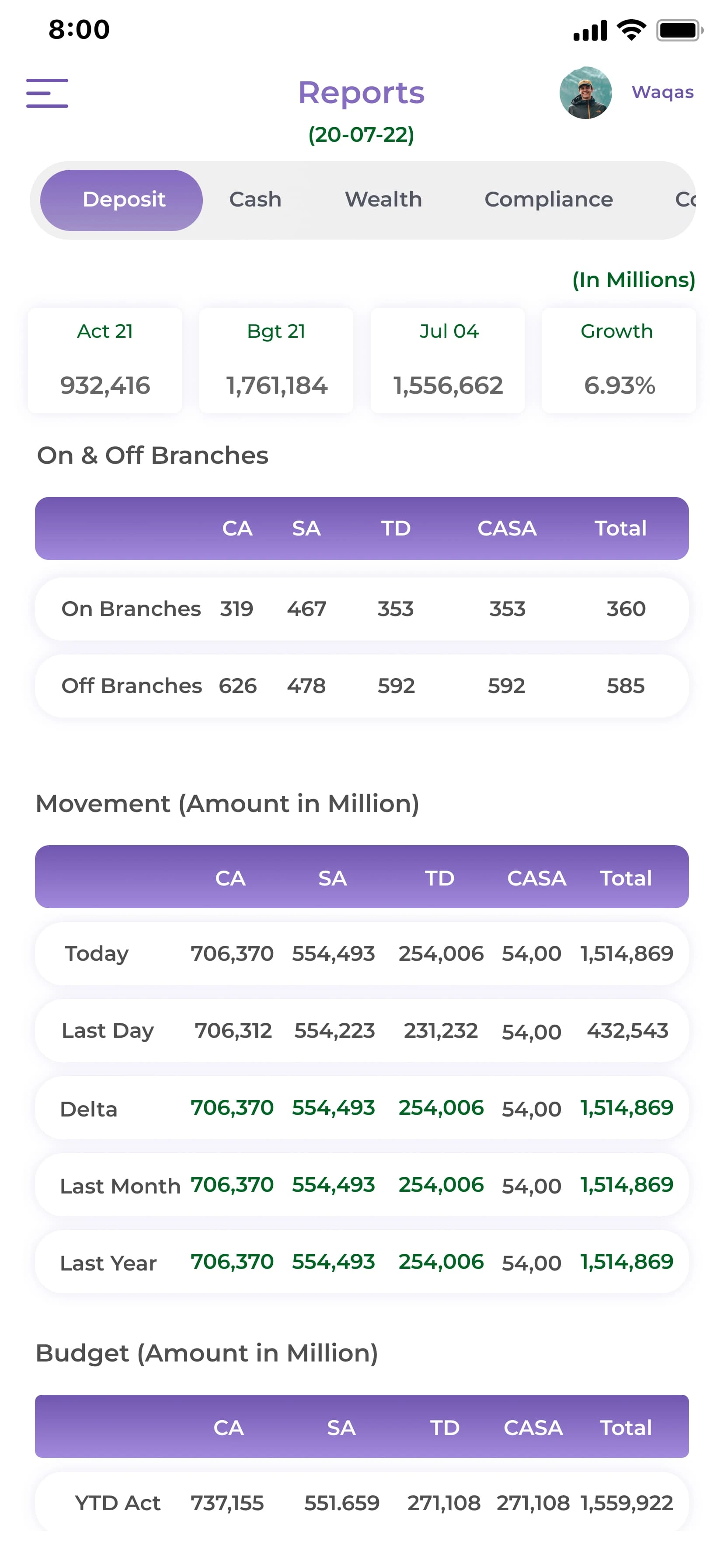 Built modules for branch/area/city/country managers