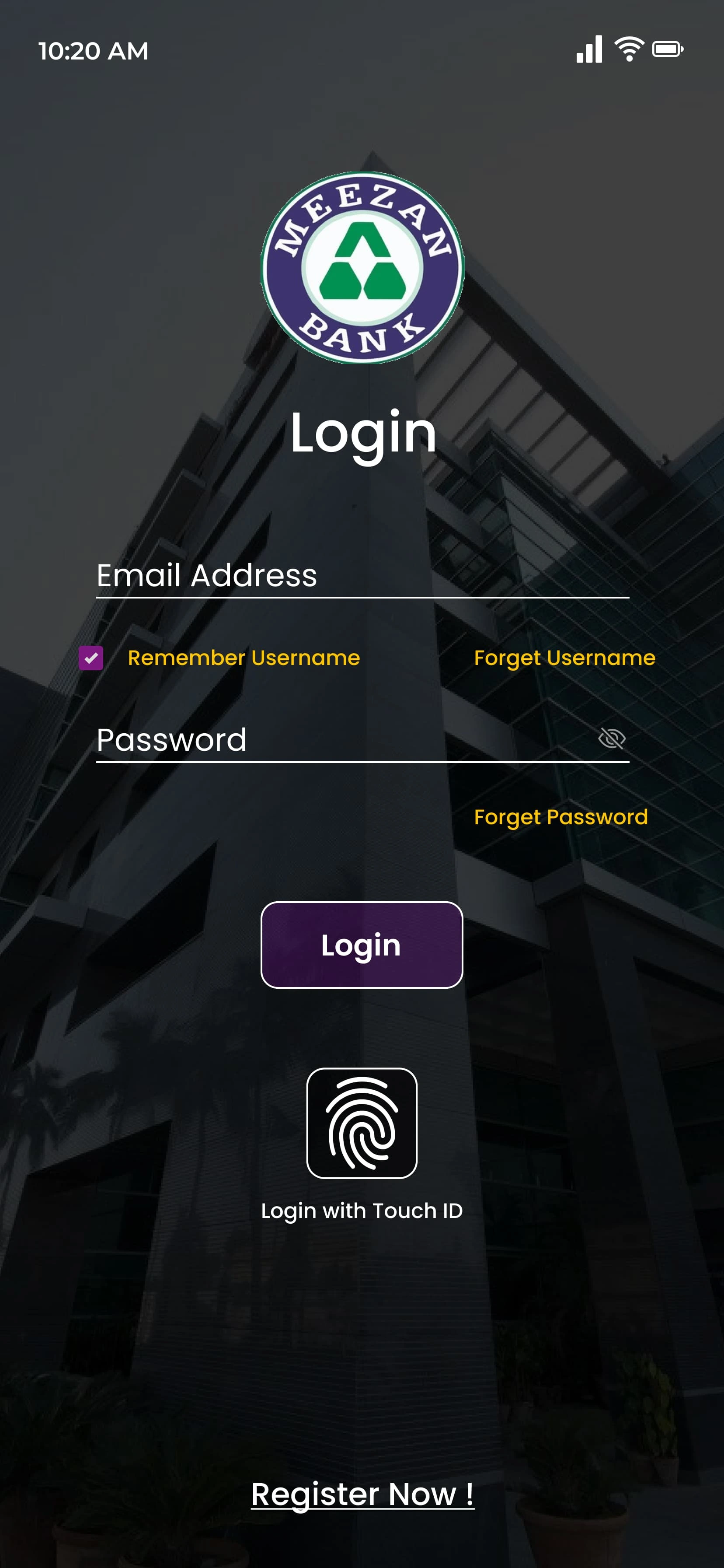Login Screen with Fingerprint Sensors