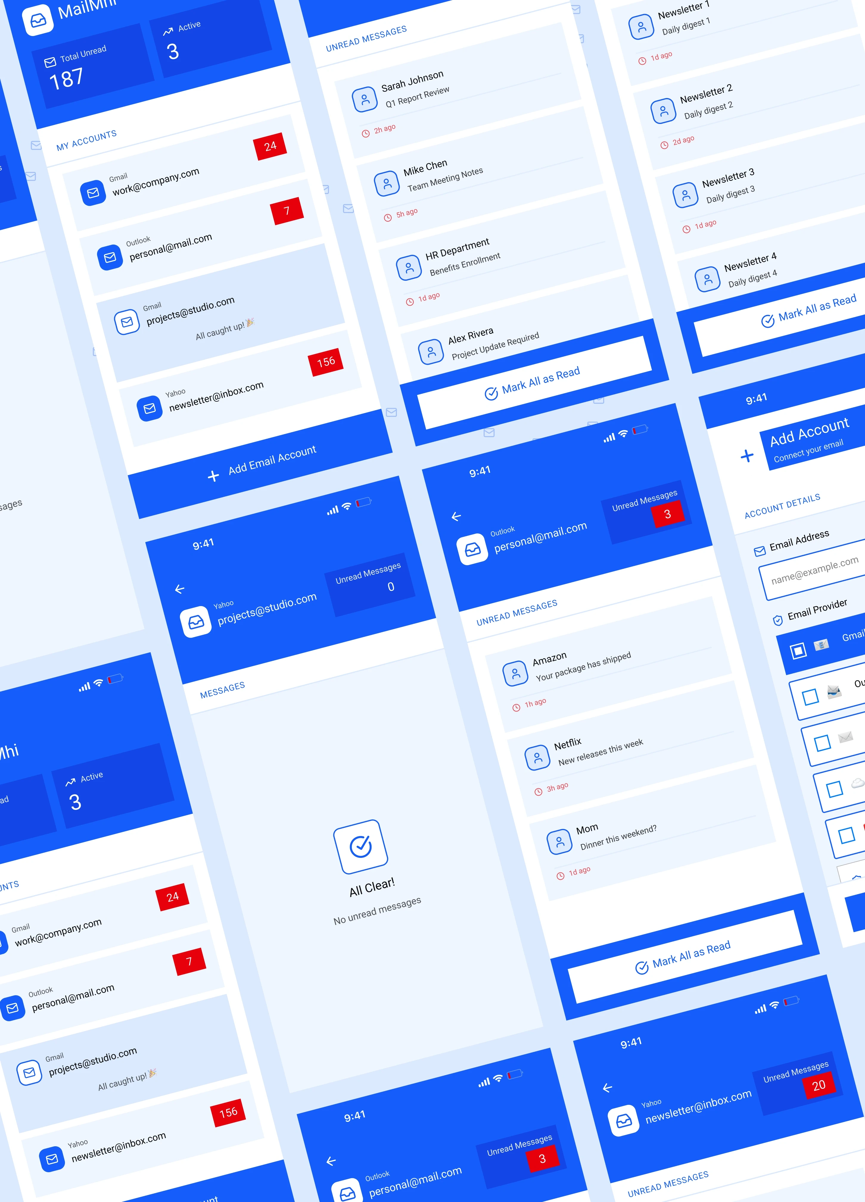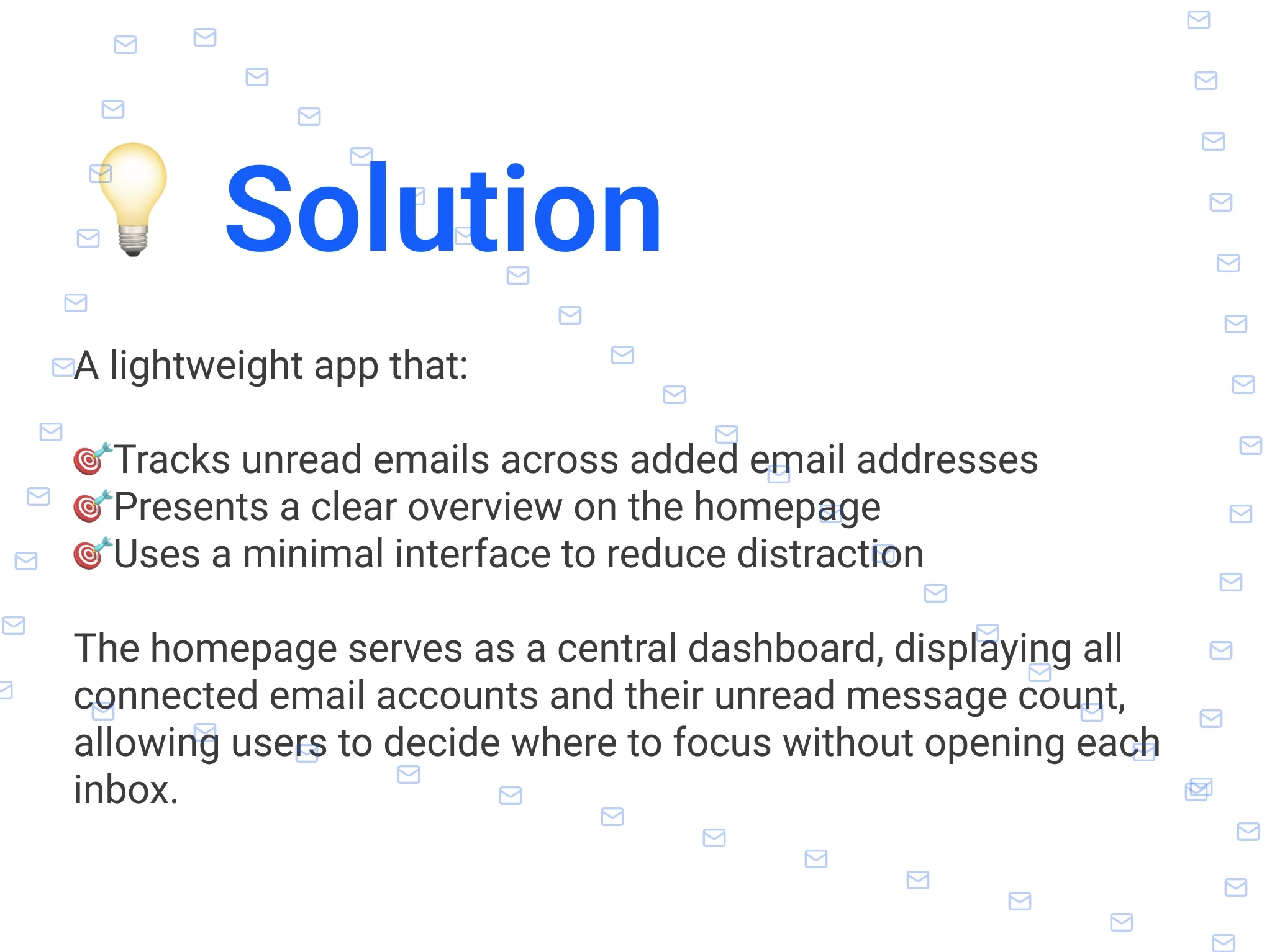 A minimalist app that helps users track unread emails across multiple accounts at a glance, without the noise of a full inbox.