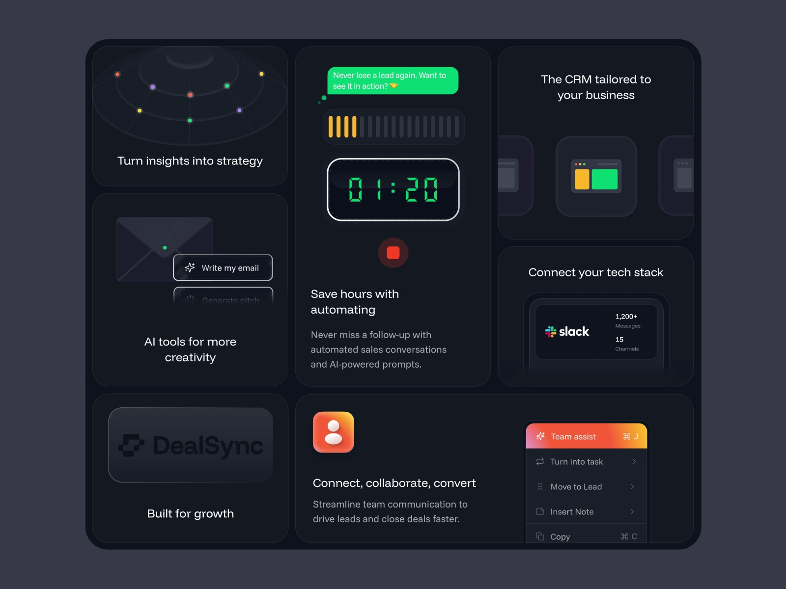 Introducing the sleek and intuitive Bento Section for the DealSync CRM platform!