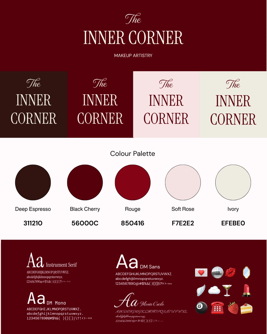 The Inner Corner is a Melbourne-based makeup artistry business in its early stages. They wanted to look polished, premium, and put-together online, without taking attention away from other important parts of the business. I stepped in to help them build a brand identity that feels elevated but still approachable.