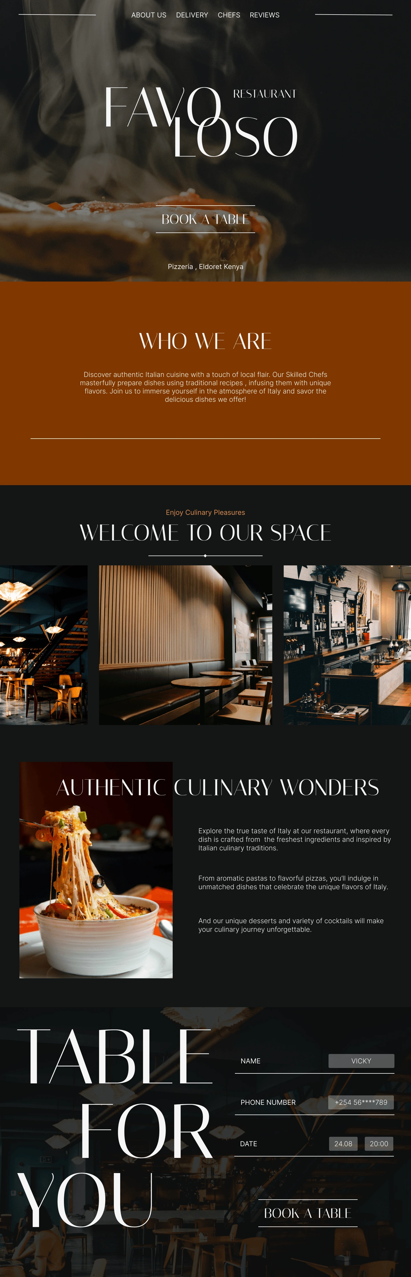 Landing page for a Kenyan restaurant bringing Italian cuisine with a touch of local flair. Product Design, Figma