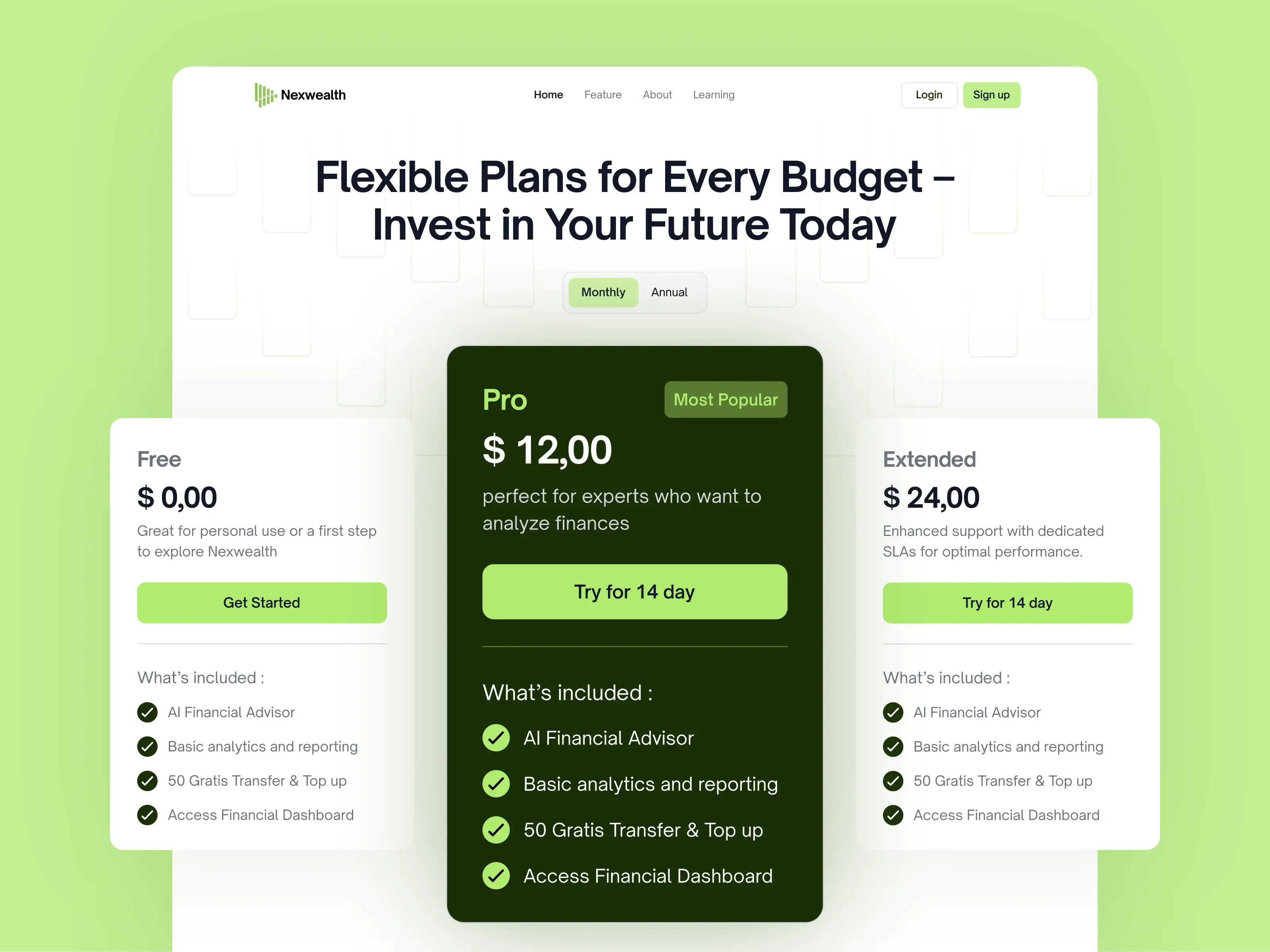 Nexwealth – AI Personal Finance App & Landing Page Design