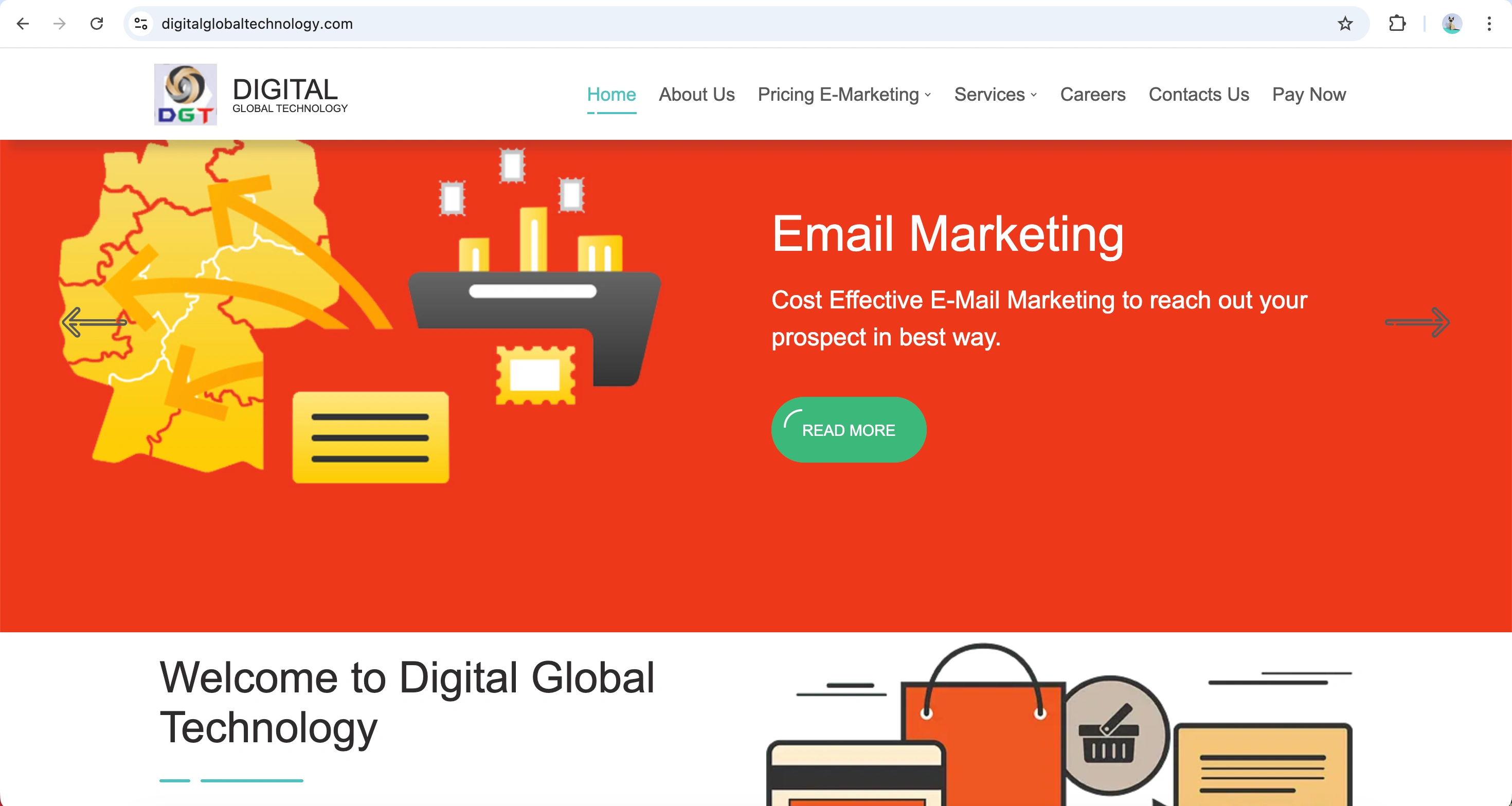 Built a responsive static landing page for Digital Global Technology using HTML, CSS & Bootstrap, showcasing services like SEO, web development & branding.
