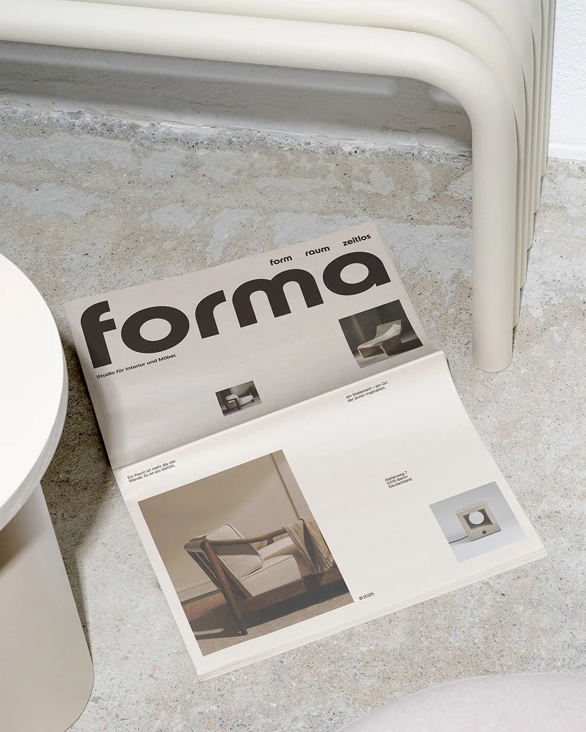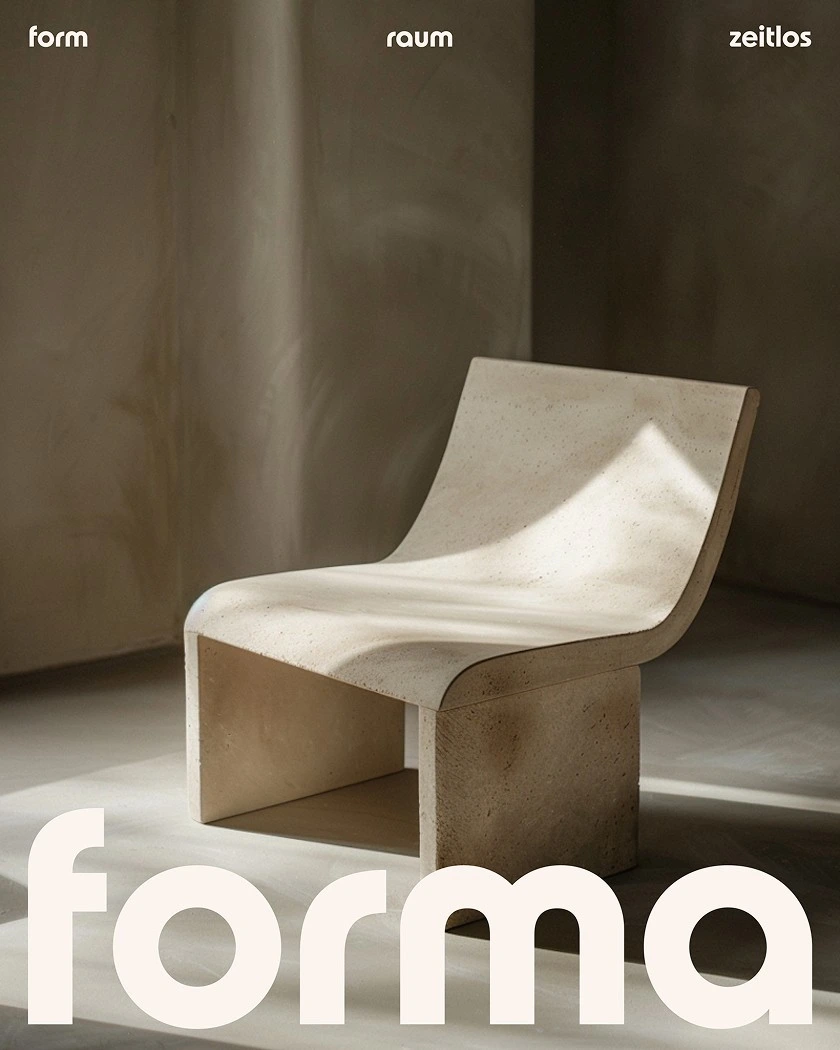 The visual strategy centers on the interplay between bold structural elements and ethereal lightness. We utilized an ultra-bold, geometric typeface for the wordmark to mirror the physical presence of furniture, contrasted by a minimalist, fluid monogram that represents atmospheric flow. The digital and editorial layouts prioritize a rigorous grid system with expansive negative space, allowing the photography of materials, light, and shadow to breathe. By merging functional typography with an avant-garde editorial feel, the identity positions the studio as a curator of both physical objects and intangible moods.