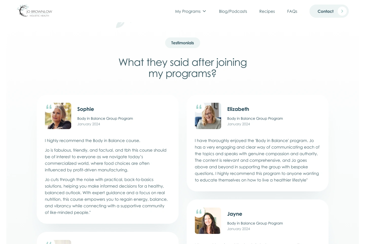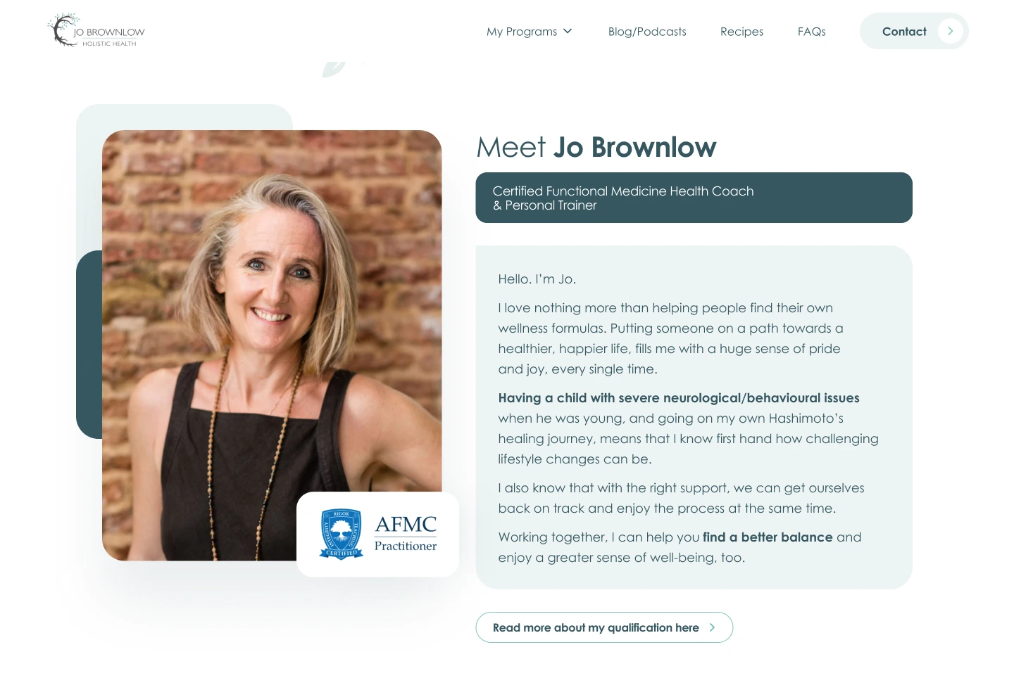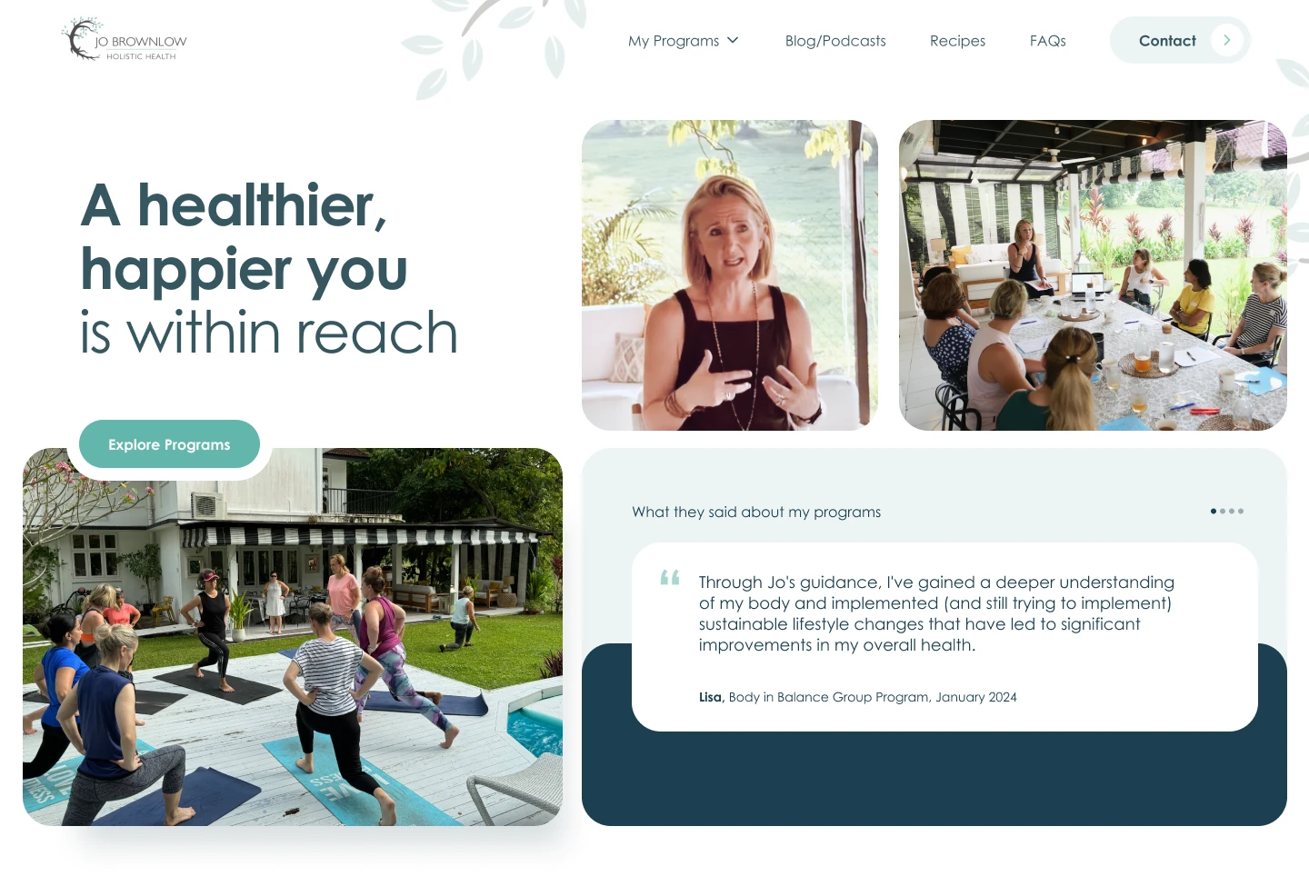 Jo is a holistic health coach, she is fully satisfied with the web redesign and it brings her more and more clients.