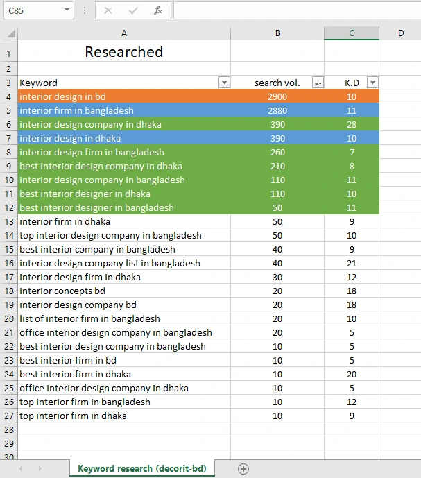 I've work for his keyword research.