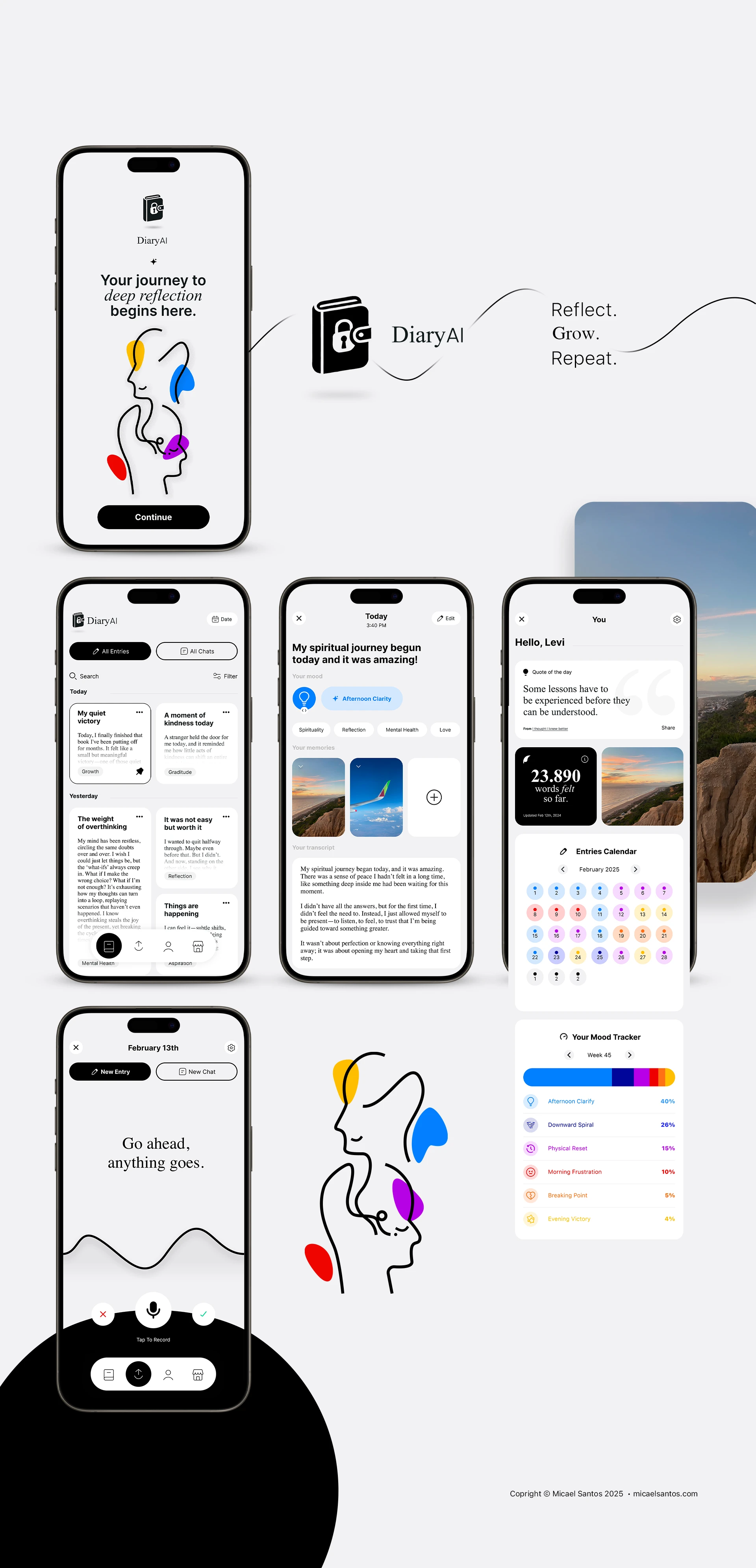 DiaryAI lets you track life through journaling and AI chat. The ‘You’ page visualizes your journey with photos, quotes, and emotion tracking for mental clarity.