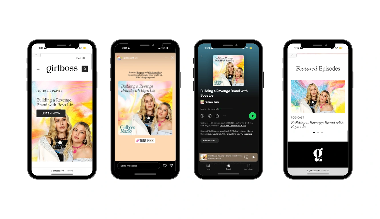 Here's a preview of some of the digital assets produced for desktop and mobile devices. Here are the digital assets for the Girlboss podcast.