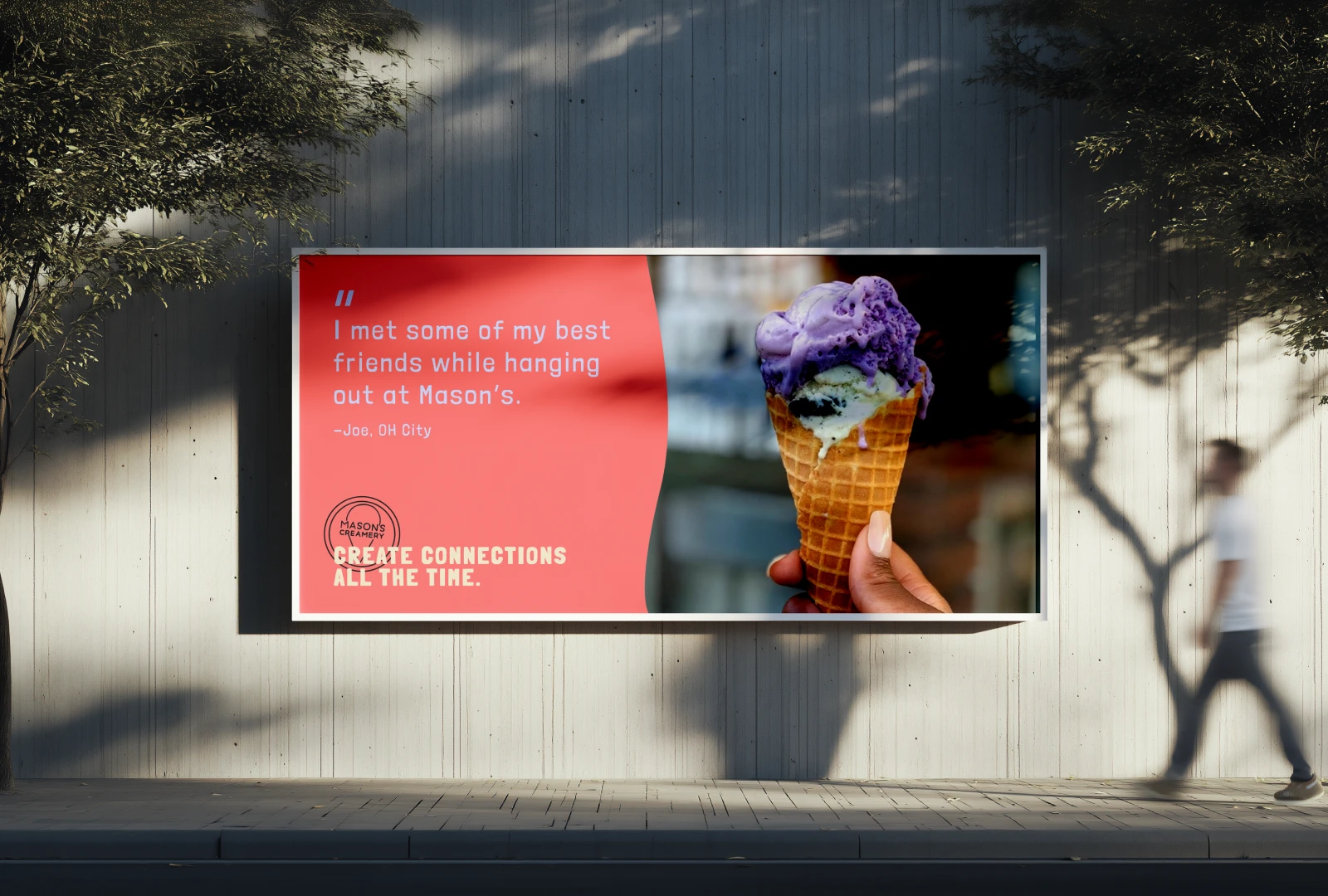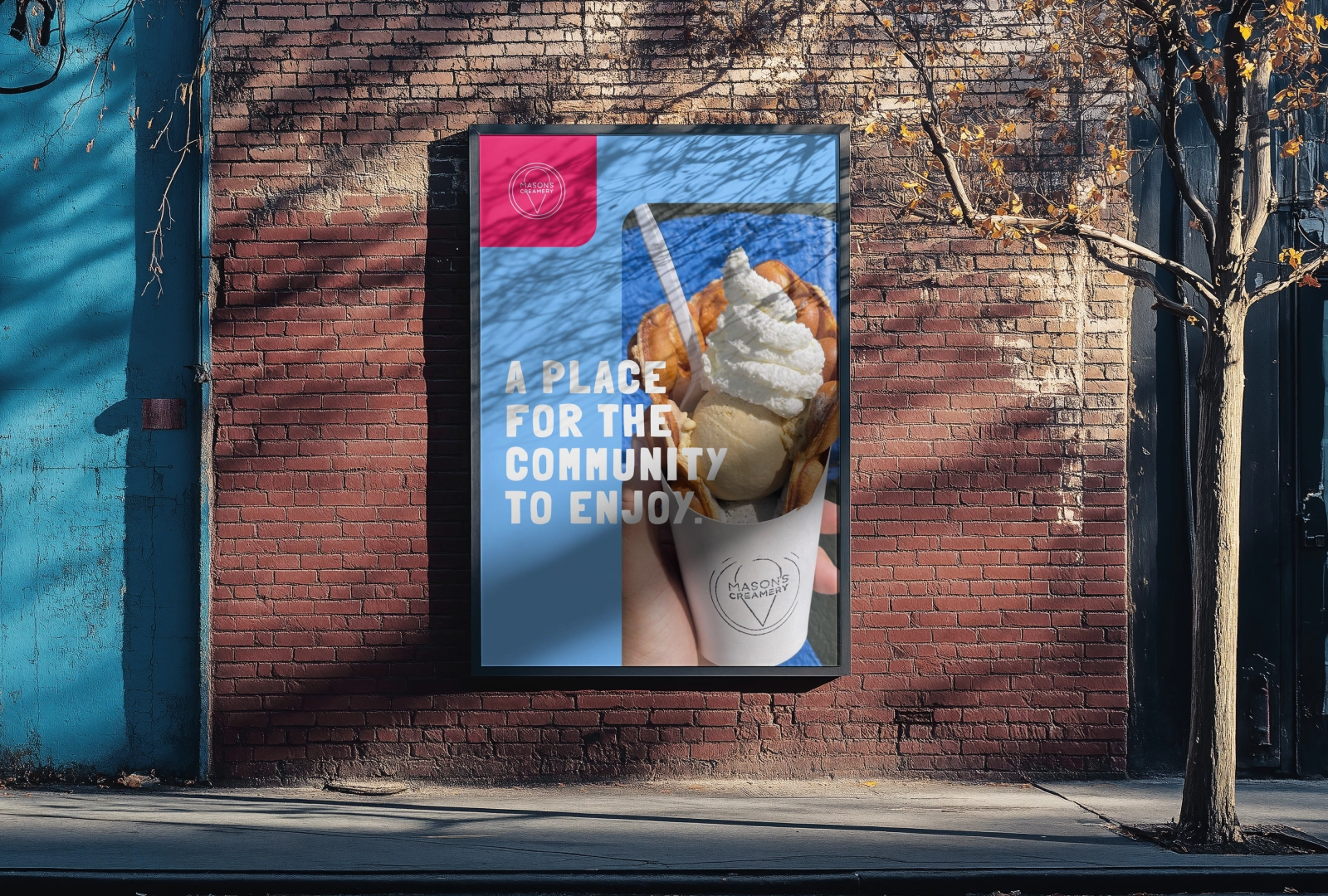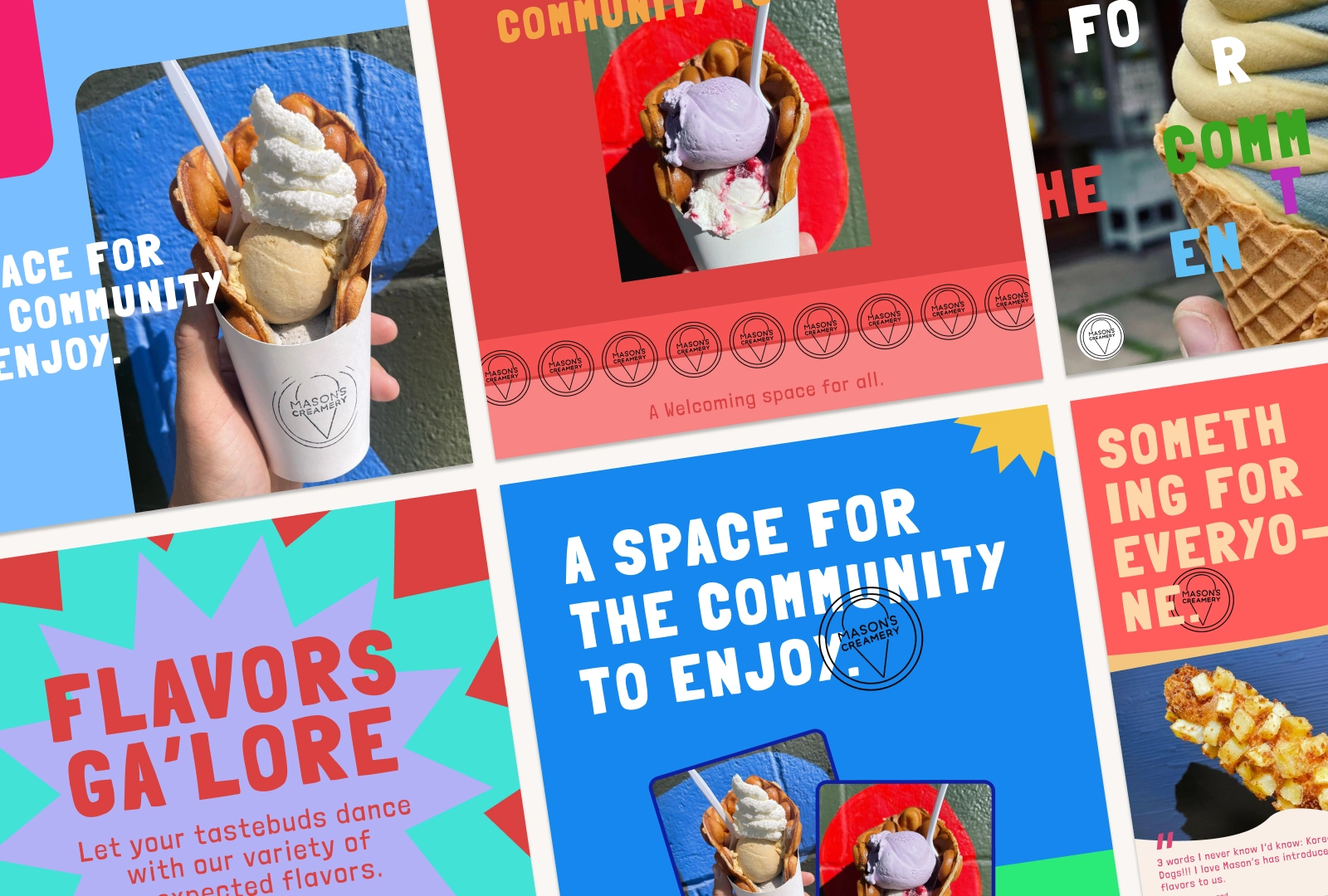 A community first ethos for this ice cream shop was reflected in the proposed visual identity.