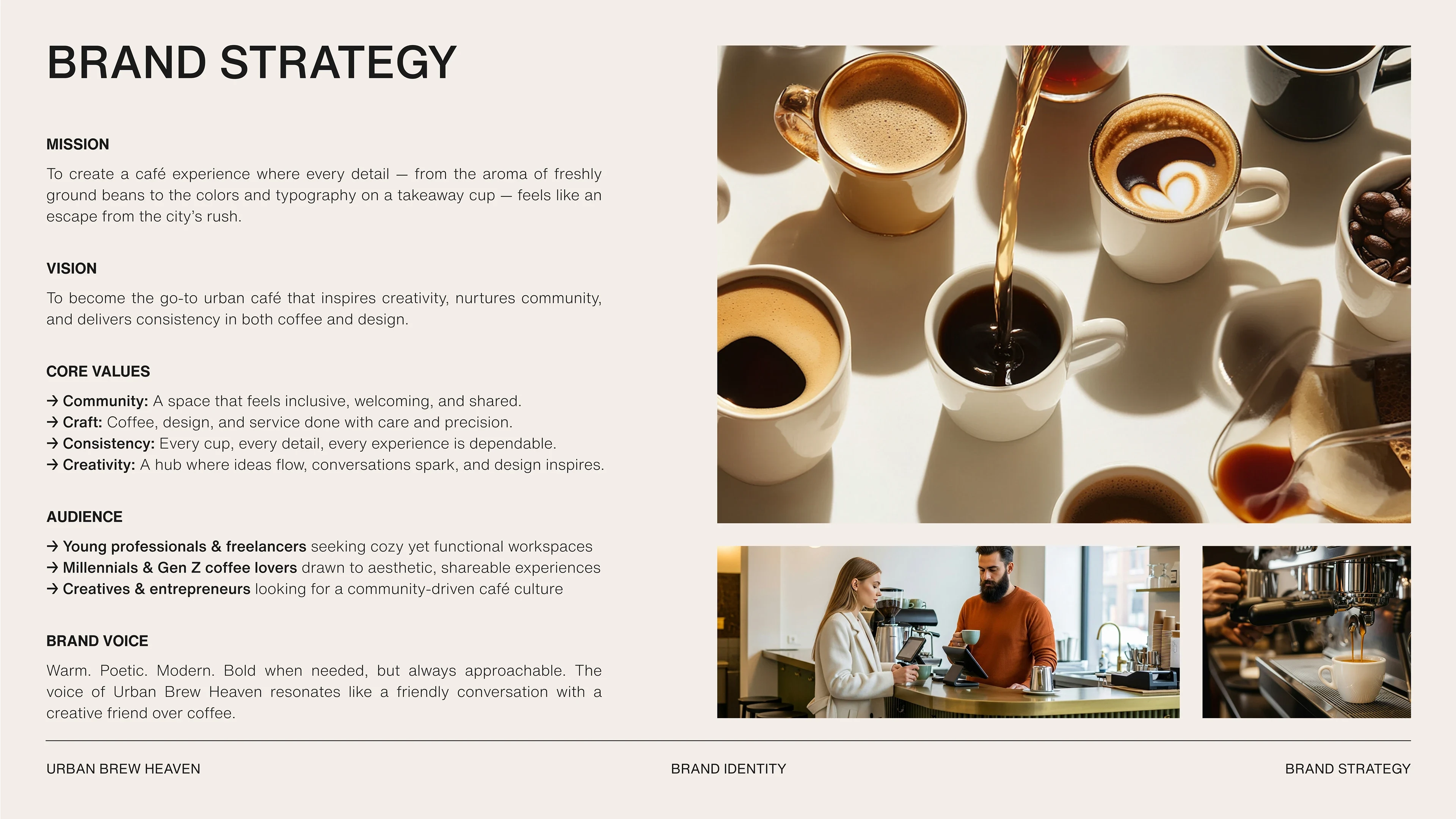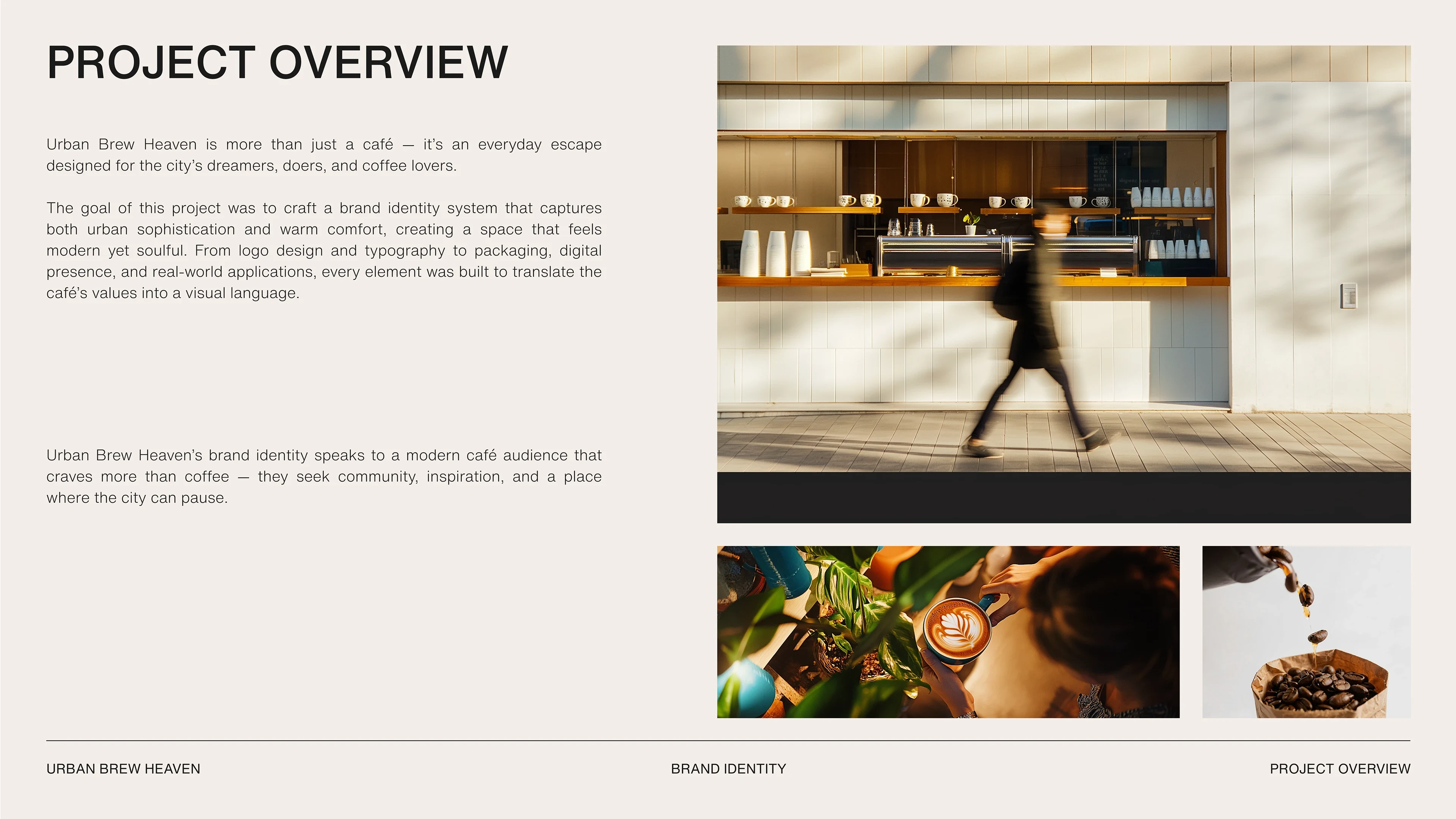 Urban Brew Heaven is a brand identity project for a contemporary cafe designed to become a sanctuary for coffee lovers in the urban jungle.