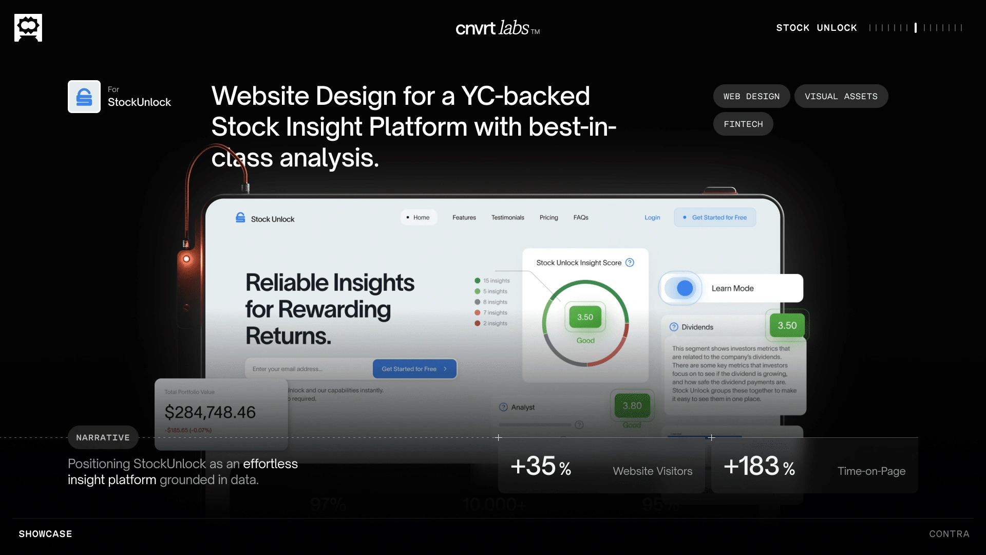 Content Strategy & Website Design for a YC-backed Stock Insight Platform. Iterations of website structure, custom feature assets, 3D and 2D graphic explorations