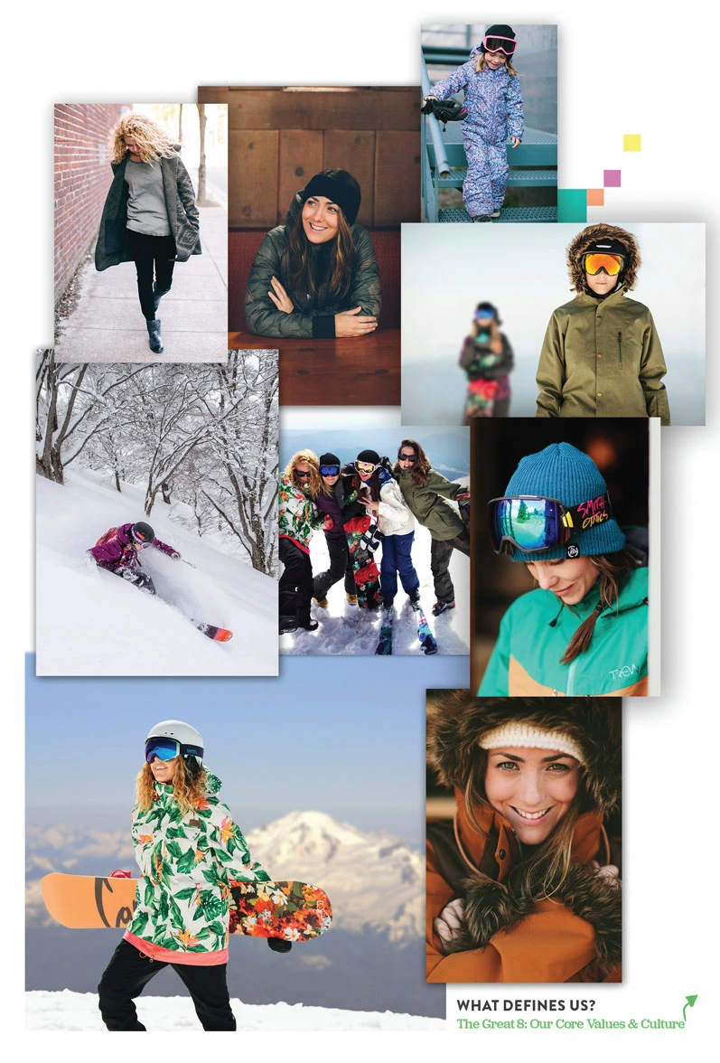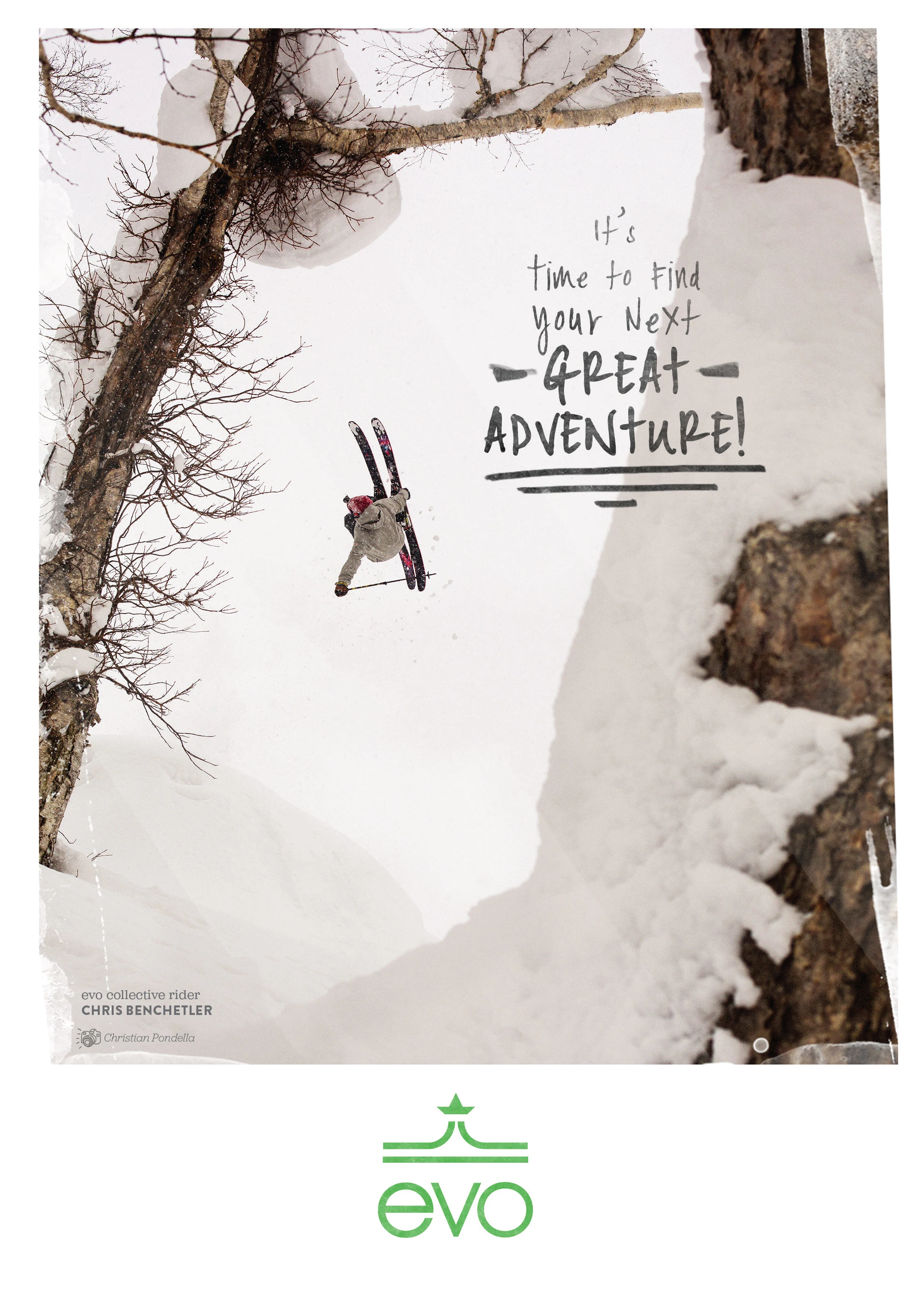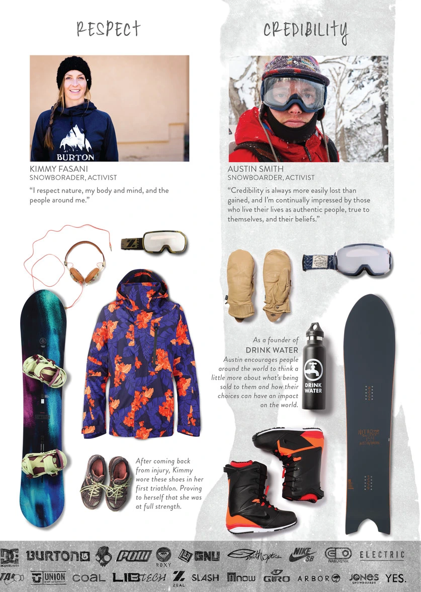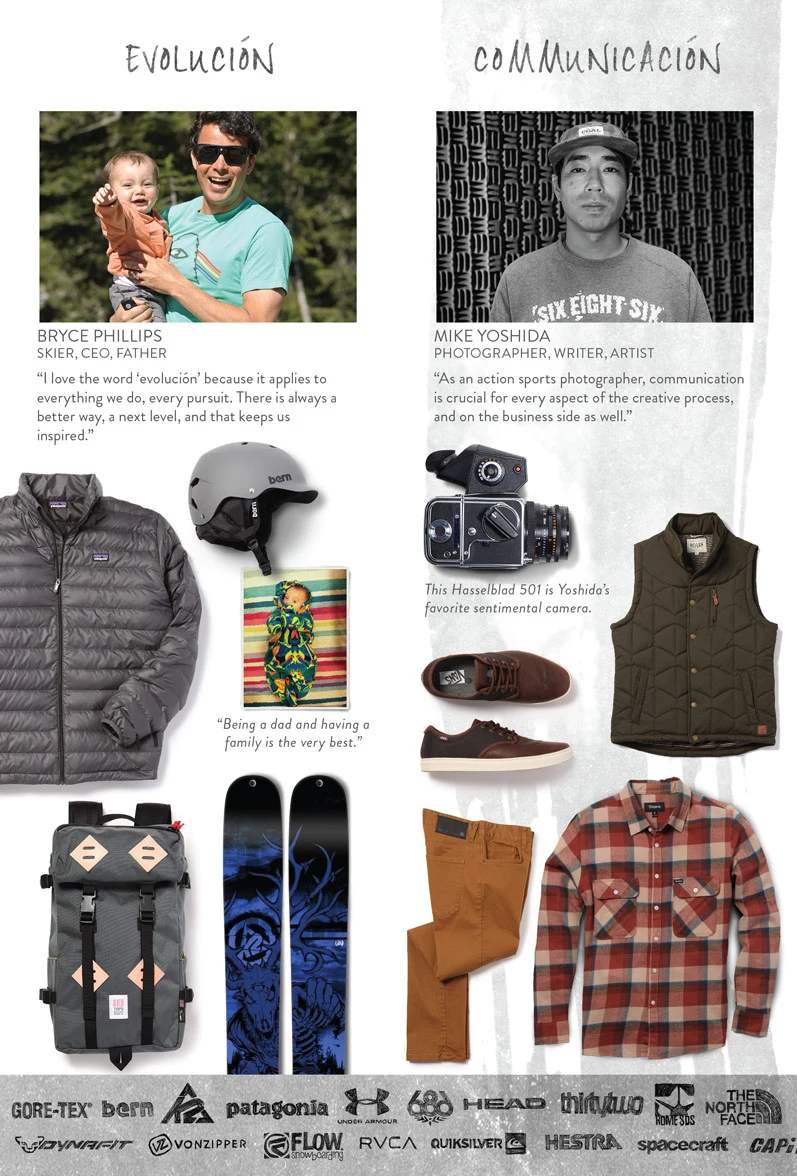 The piece is a true representation of the evo brand today. The models used in the interior product shots were all evo employees while each of the founding principles is represented by an evo Collective member that represents it well. The piece was featured in all major ski and snowboard magazines including Powder, Transworld Snowboarding, and Snowboard Mag. I also was part of the team that encouraged evo reaching out to a broader audience seeing the piece get placement in Outdoor Magazine.