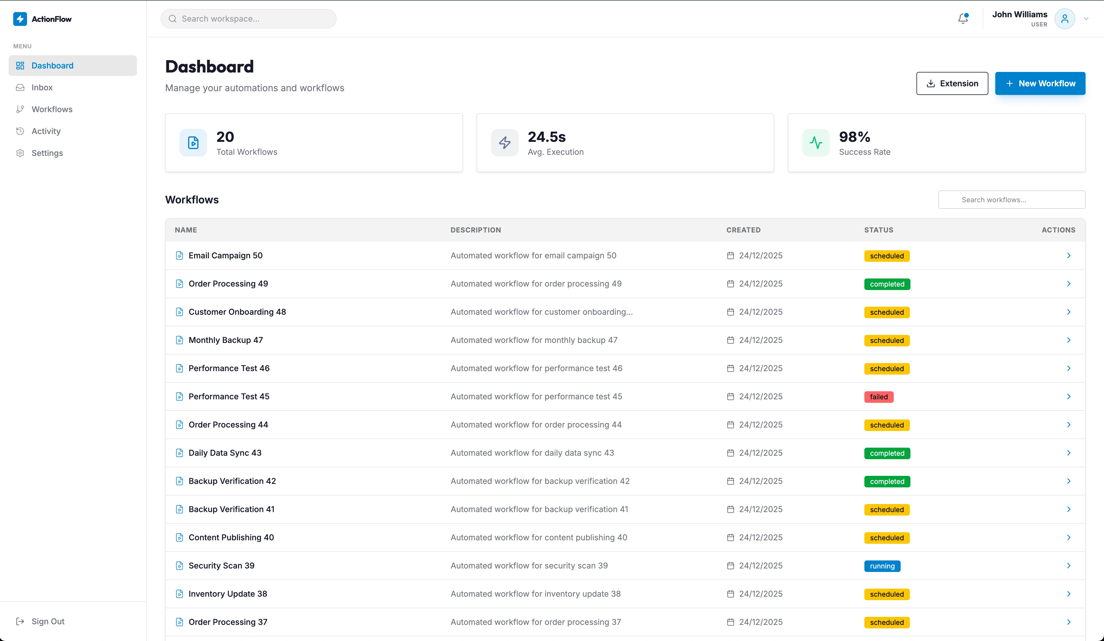 Execution Transparency: Built a comprehensive dashboard to monitor "Workflow Health," featuring visual replay logs, failure alerts via email, and timezone-aware scheduling.