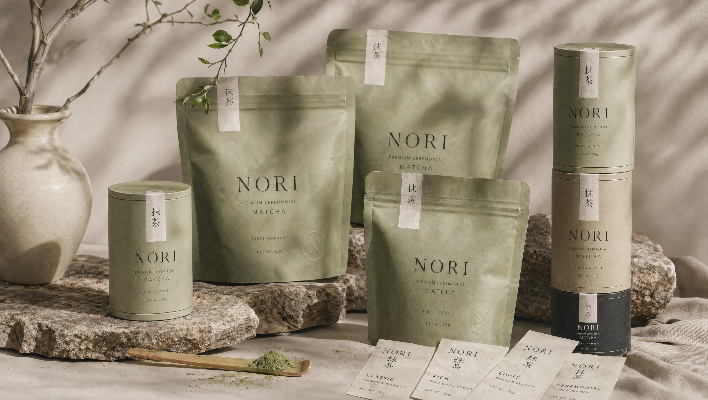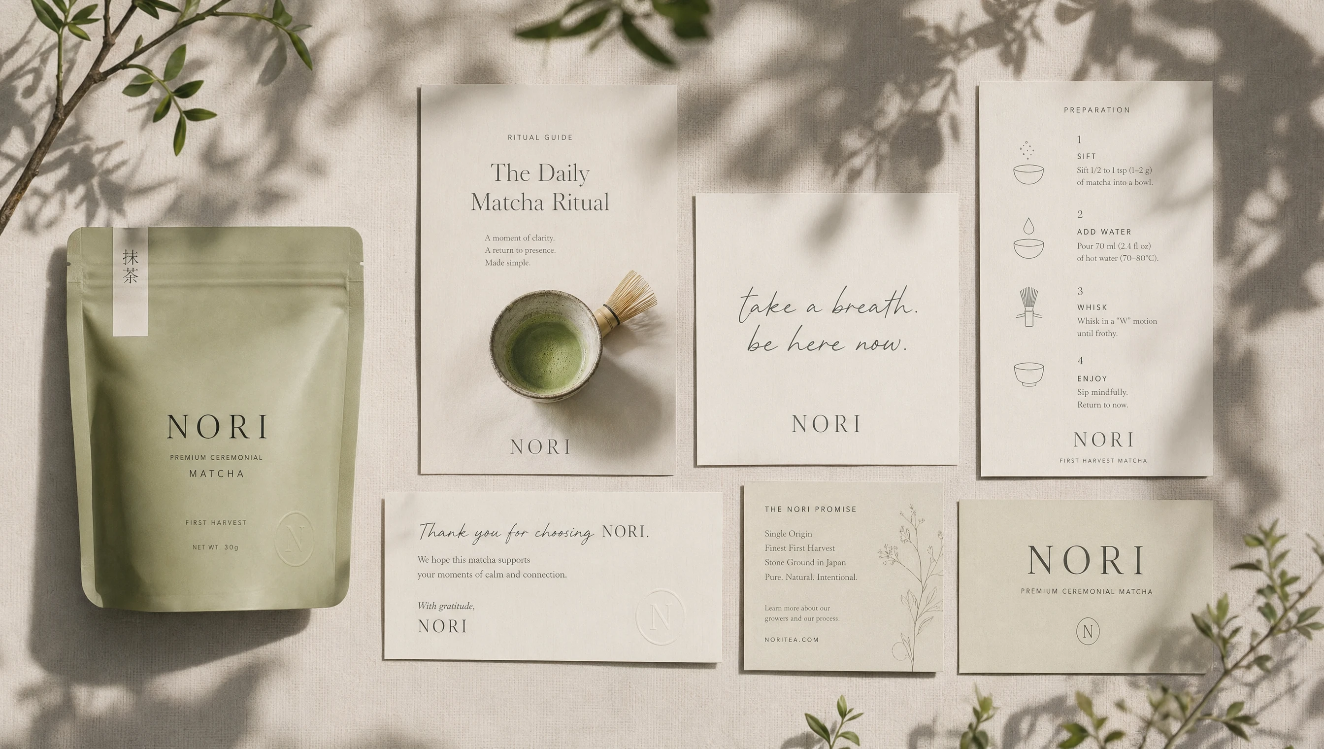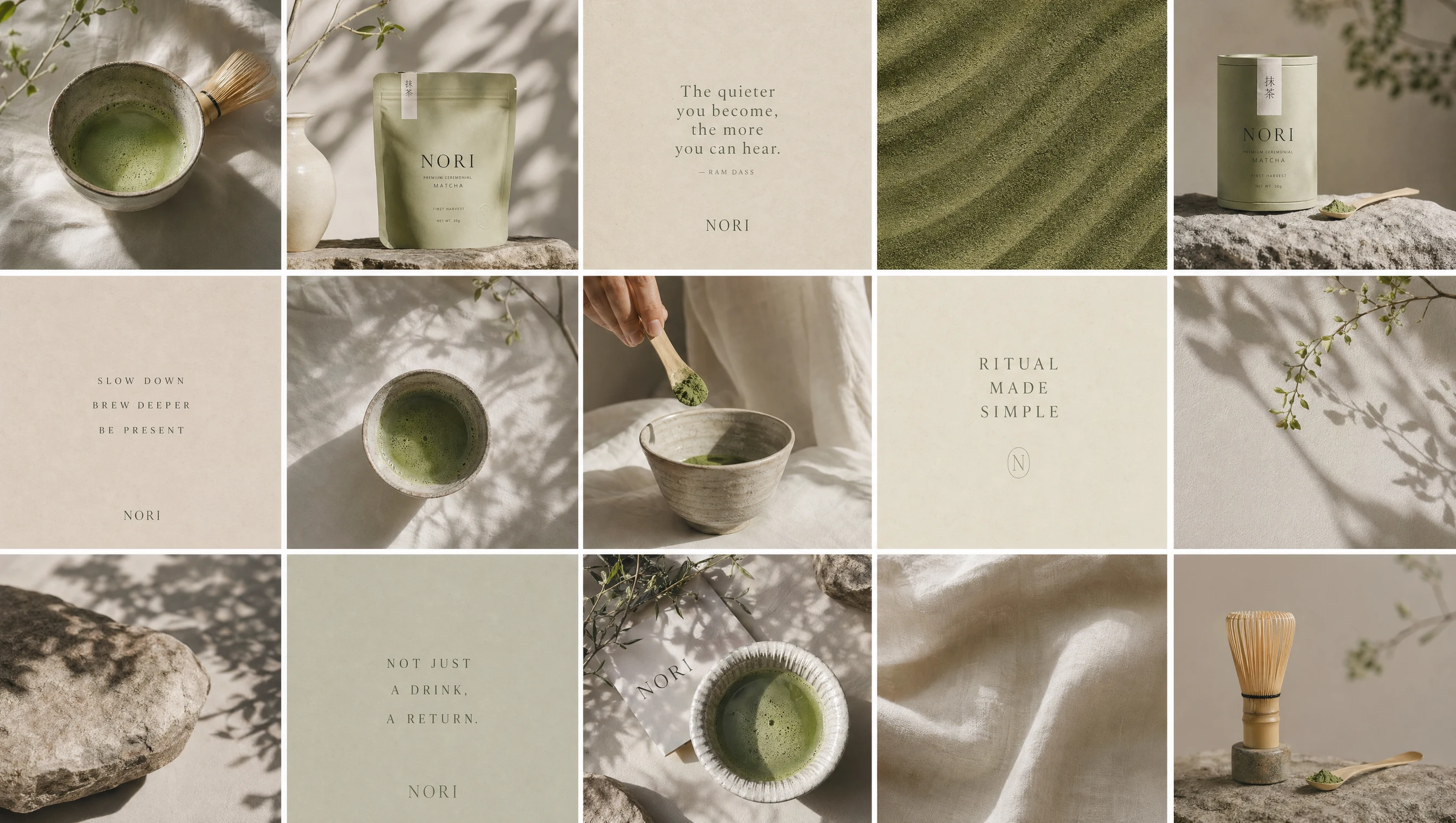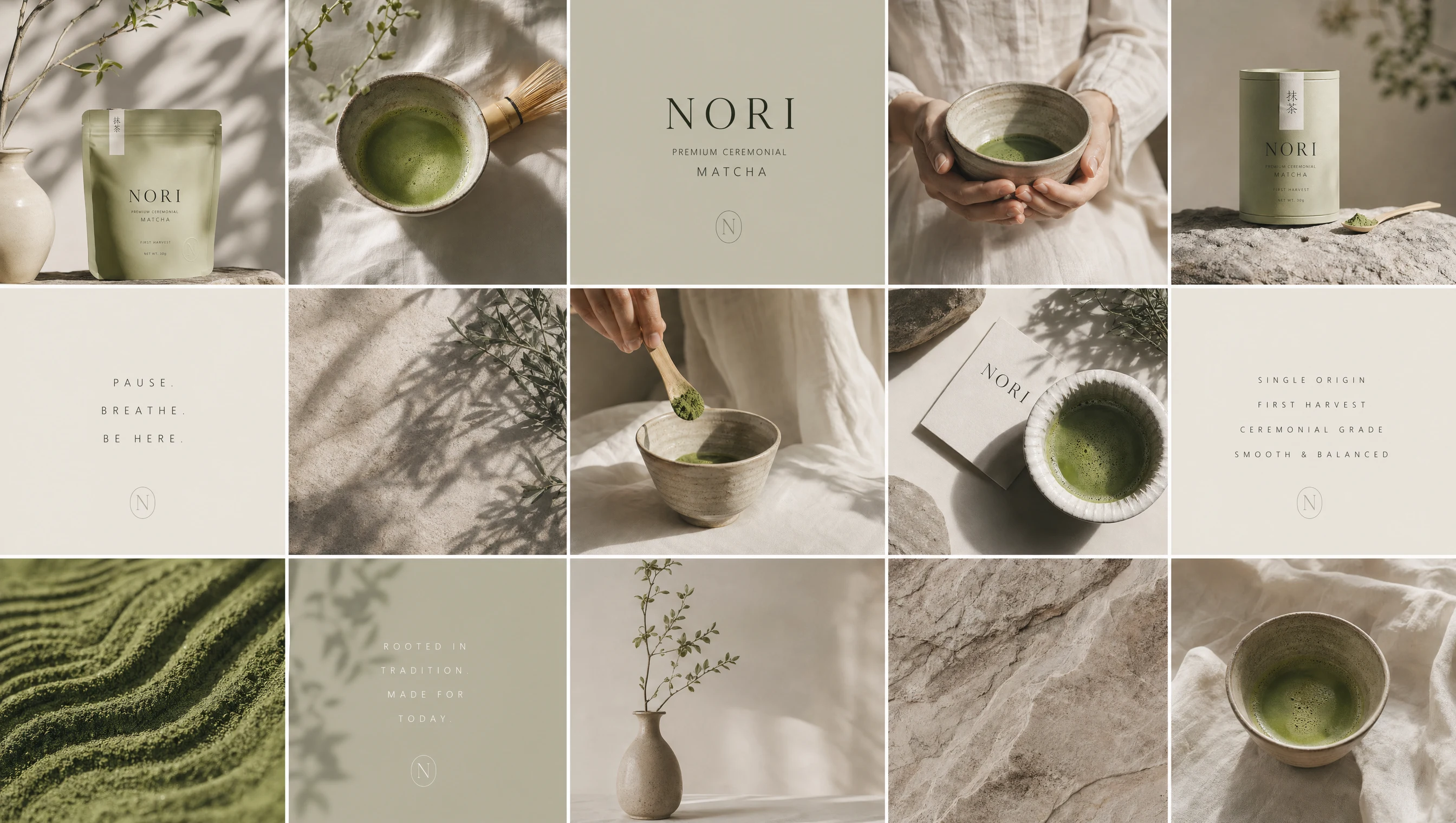 Design a modern matcha brand that feels quiet, premium, and emotionally grounded.