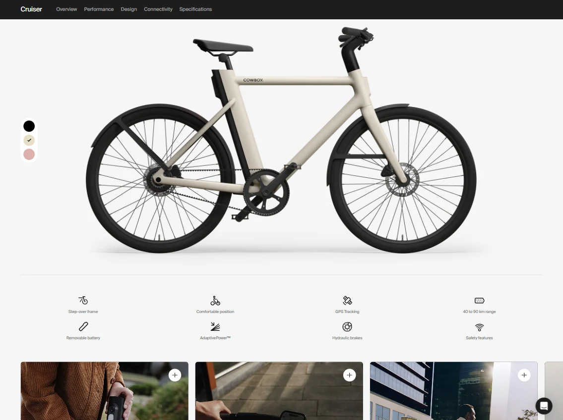 I built the Cowboy website — a high‑performance e‑bike brand experience site showcasing connected electric bikes with rich visuals, product pages, and interactive exploration. The platform highlights innovative features like AdaptivePower™, integrated GPS and security tech, model comparisons, and smooth browsing flows to drive user engagement and conversions.