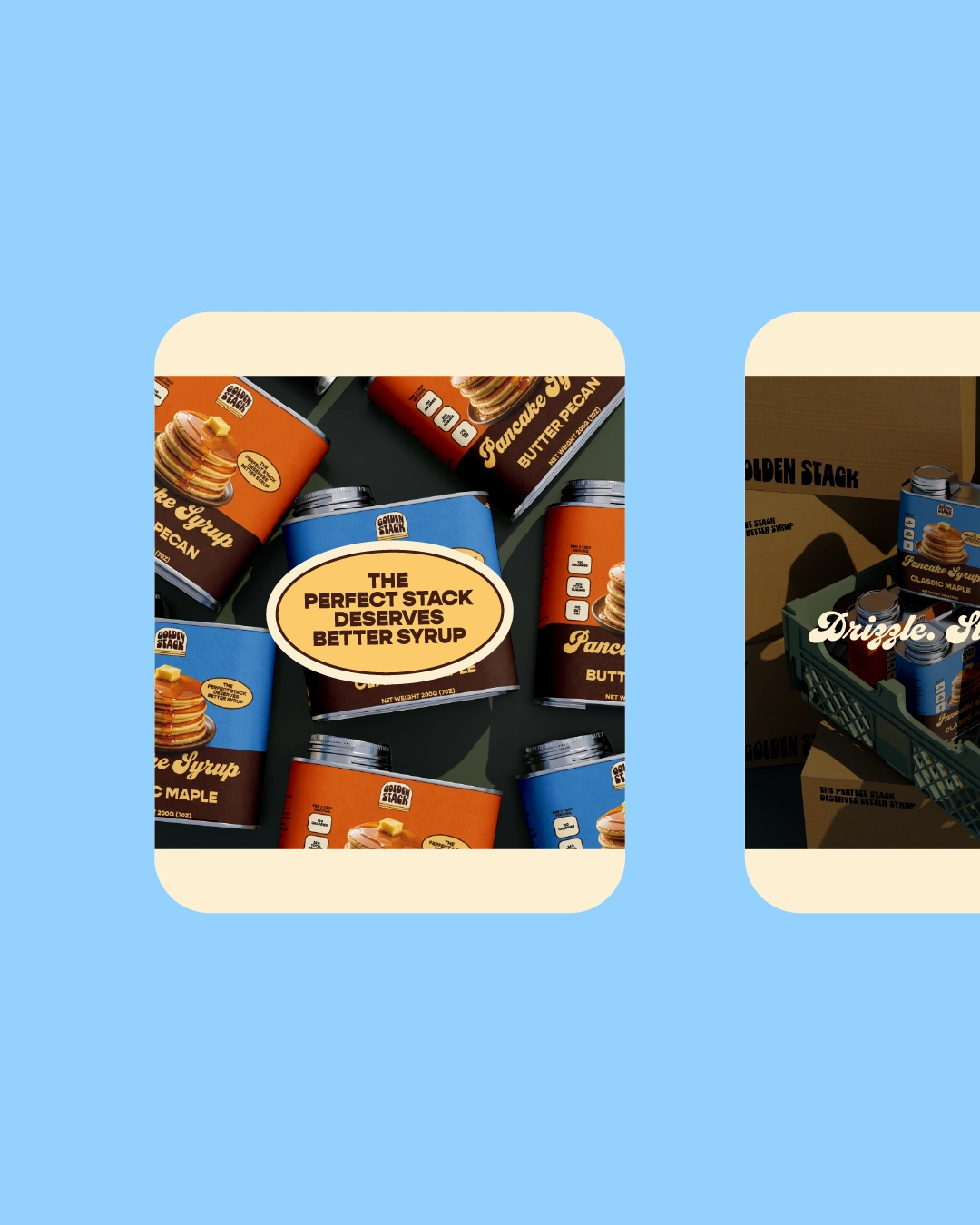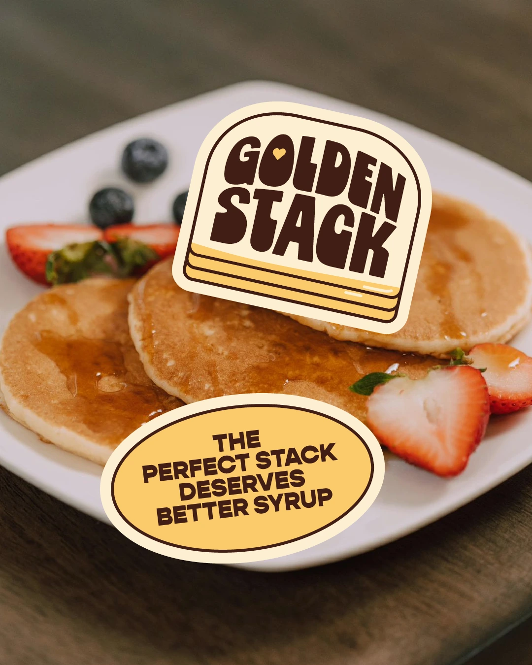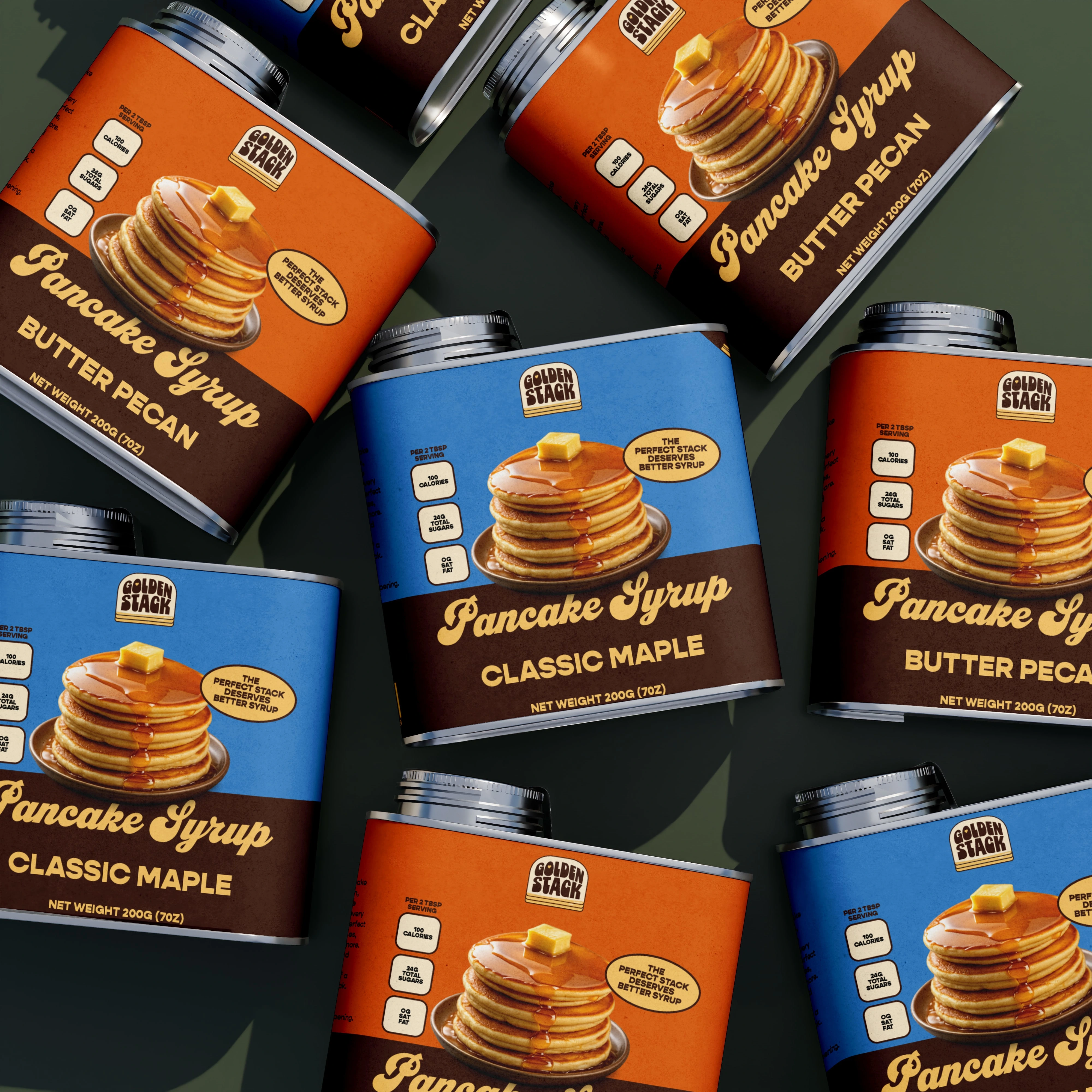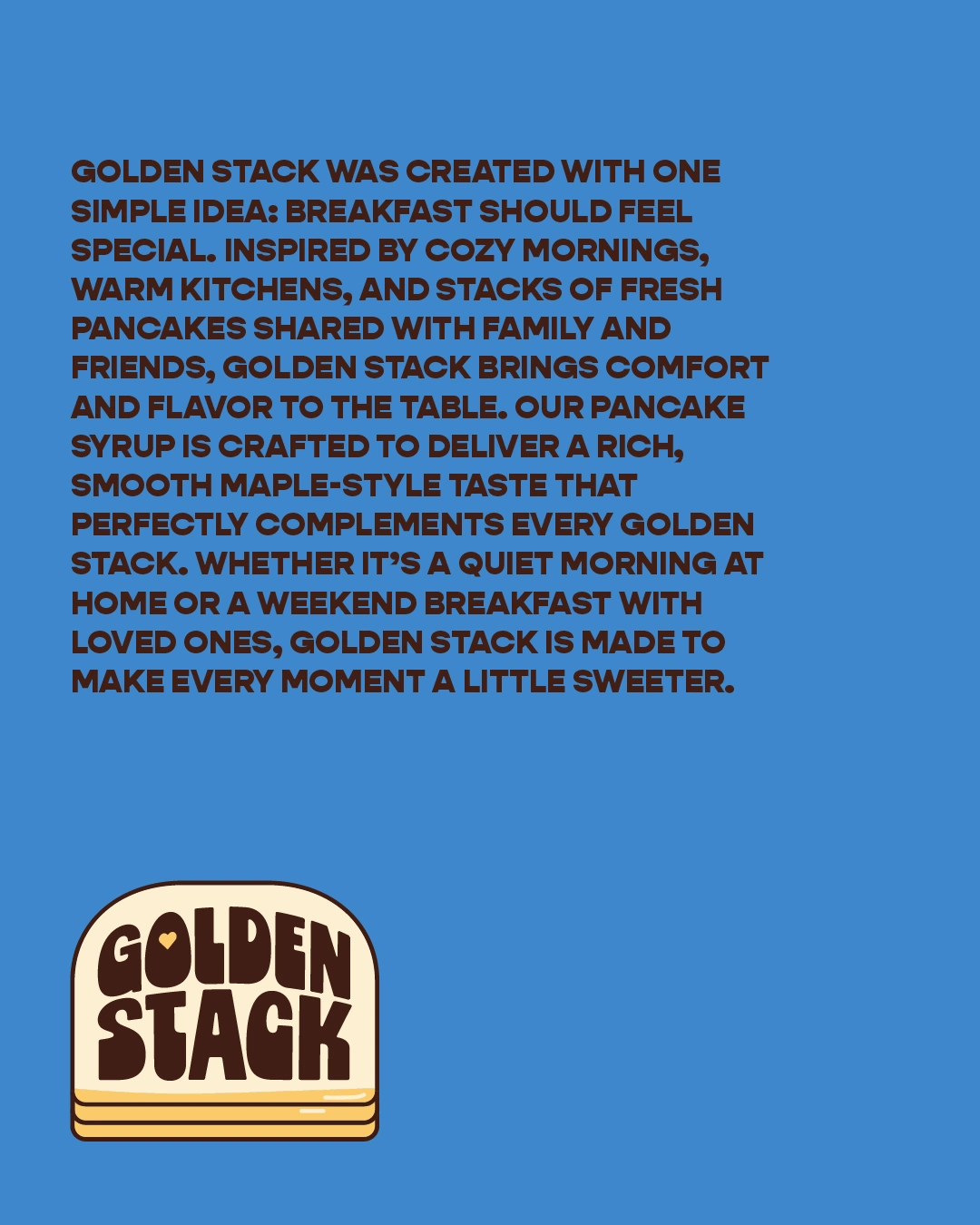 The packaging is designed to feel warm, nostalgic, and instantly recognizable on the shelf. A rich color palette, bold typography, and the signature pancake stack illustration create a strong visual identity that highlights the comfort of breakfast while keeping the design playful and appetizing.