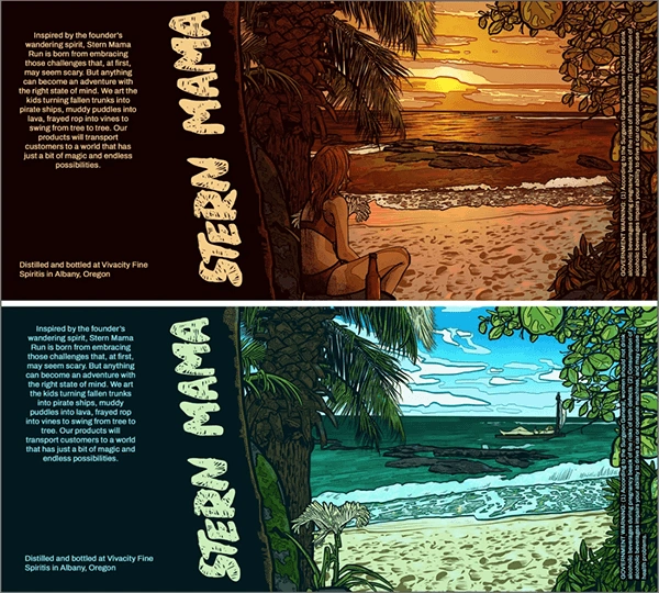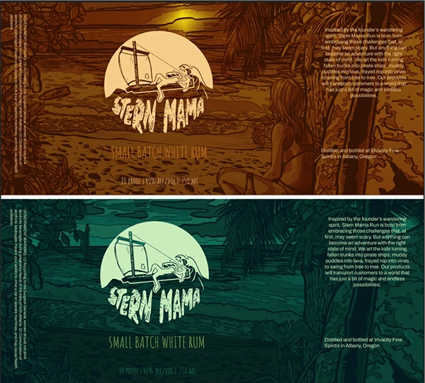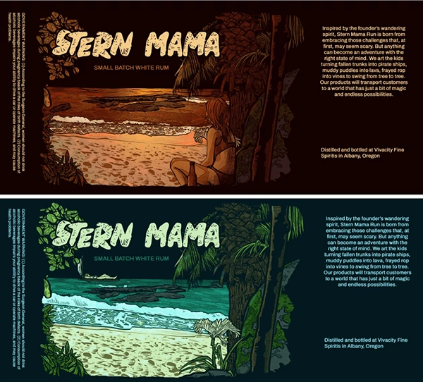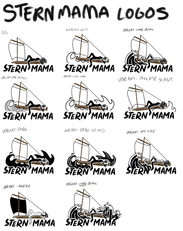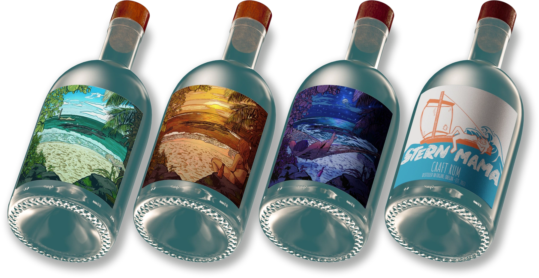 Compilation of Logo Design, Finalized Hoodie Designs, Concept Label Art, and Full Illustrations for Stern Mama Distillery in Eugene, Oregon.