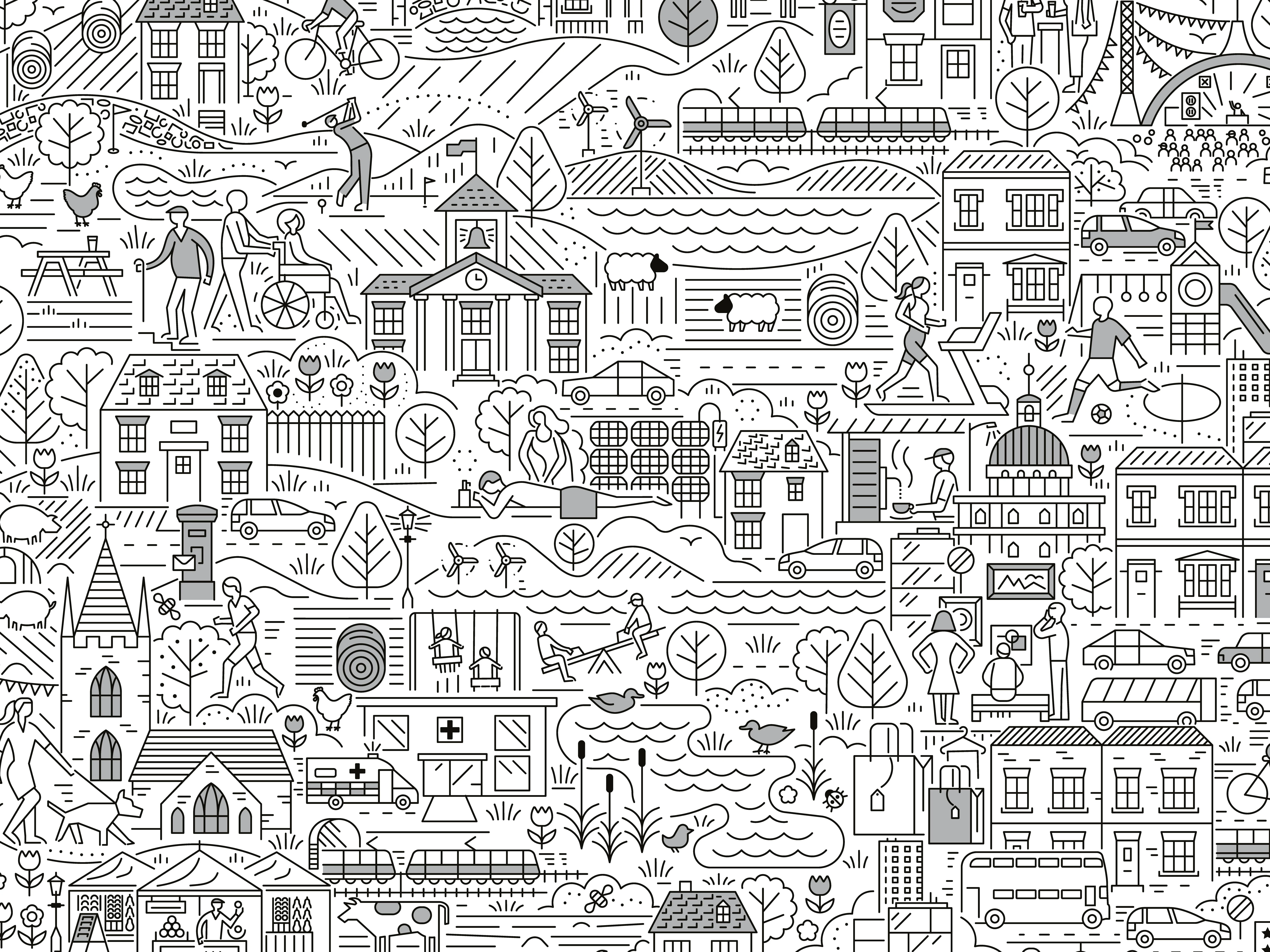 Art directed a complex area-guide template system for UK luxury estate agency Knight Frank, designed to scale across 52 city and countryside locations. Created a seamless visual language where city editions featured bespoke front-cover linework illustrations that transitioned into countryside scenes on the back, ensuring every guide felt unique while still part of one consistent family. Developed an interior illustration style with a refined, charming tone to appeal to Knight Frank’s premium demographic, maintaining strong consistency across layout, hierarchy, and production constraints.