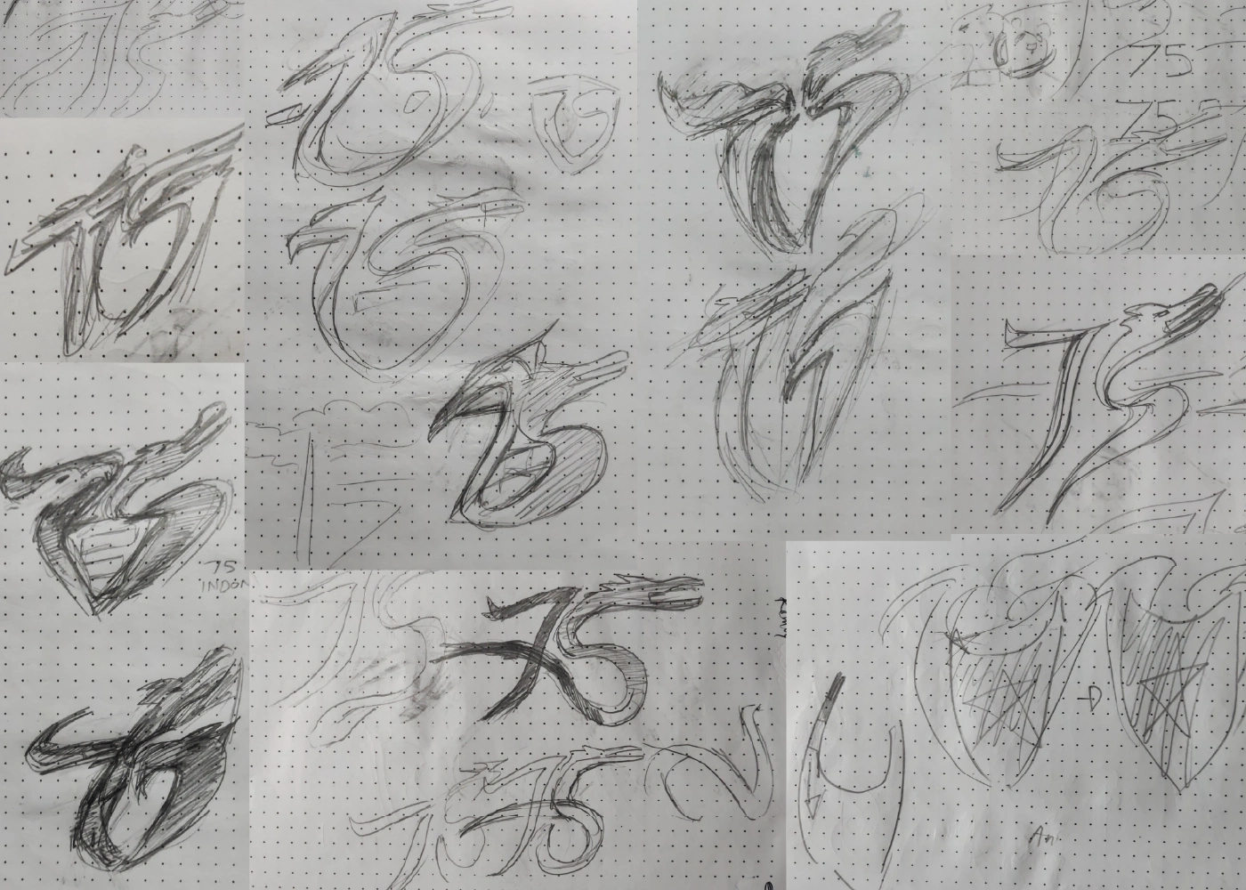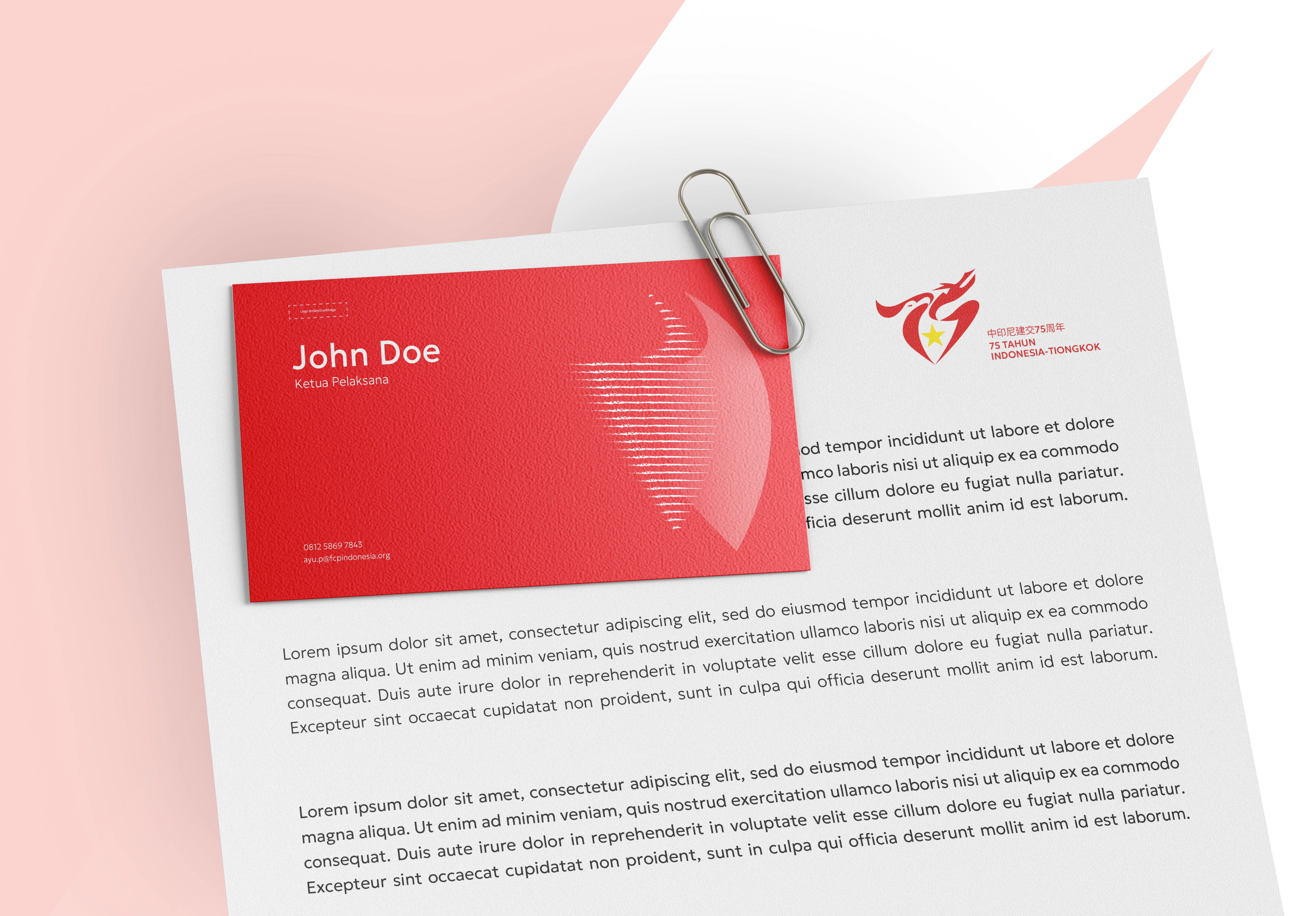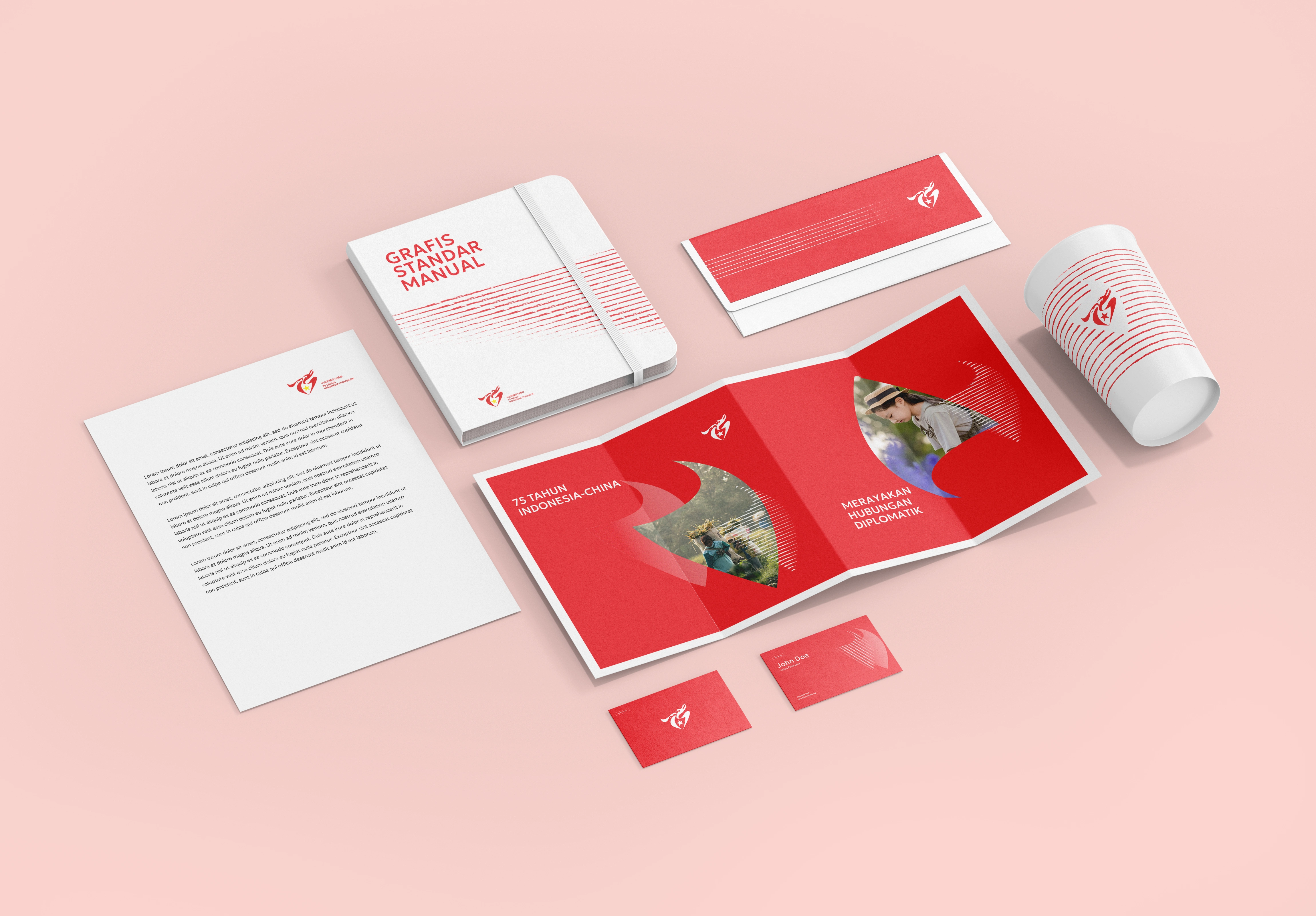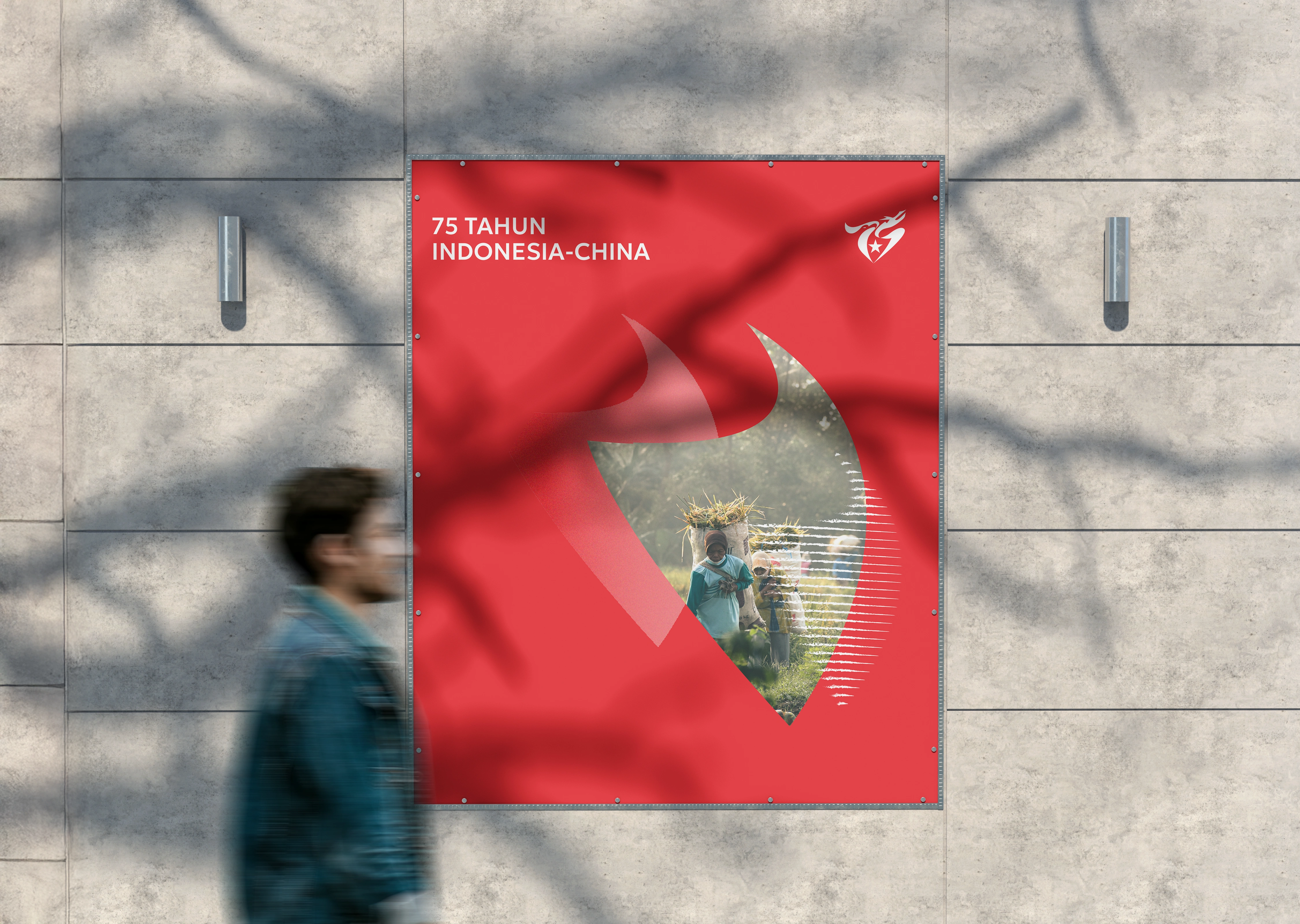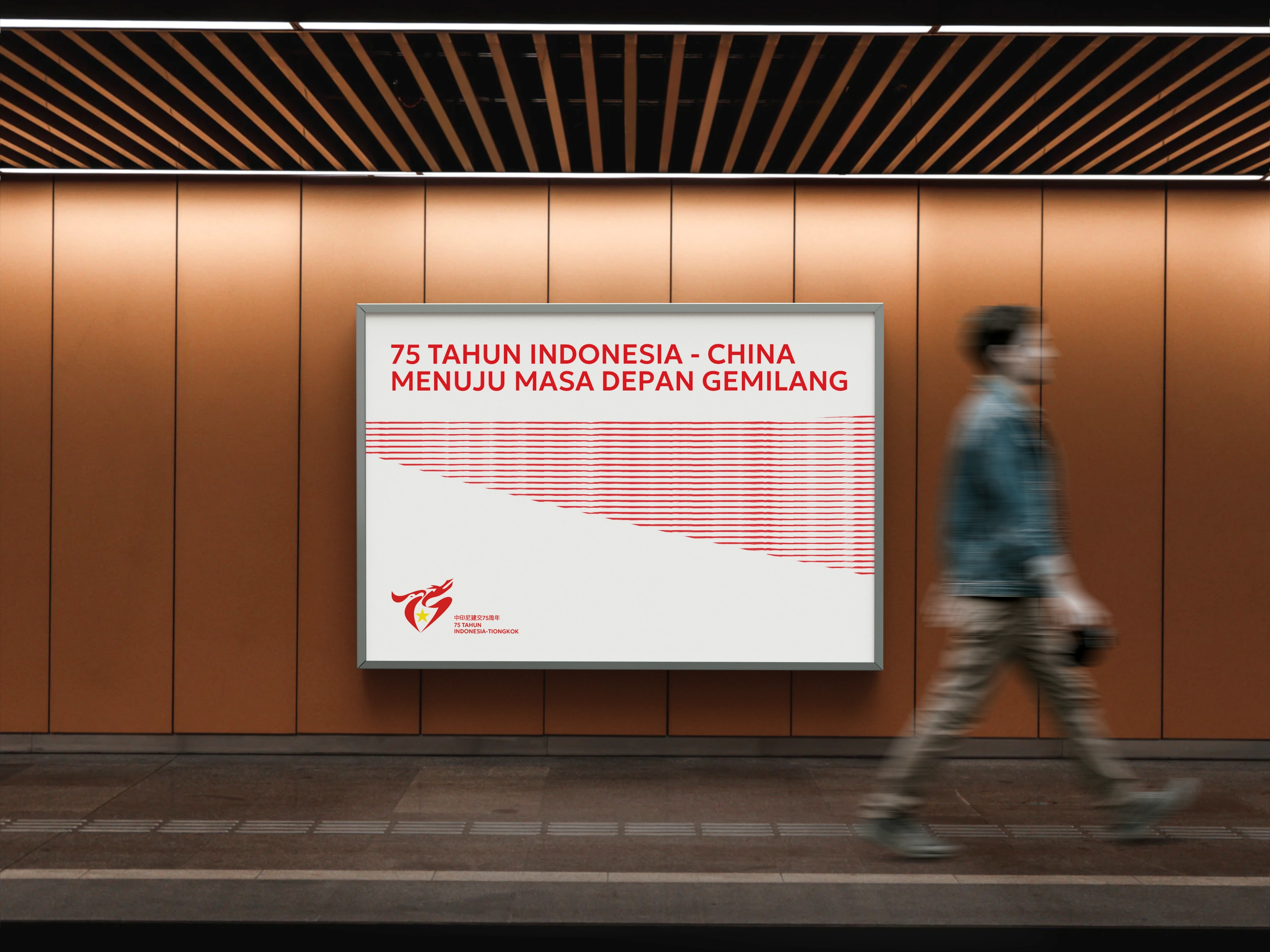 With the mission of commemorating the 75th anniversary of diplomatic relations between Indonesia and China, the logo further emphasizes its friendships ties. The wordmark logo "75" marks their anniversary year, hence forming whole as a dragon, symbolizing prosperity, strength, and shared unity between two countries. Between number 7 and 5, inside negative space a shield is formed that signifies Indonesia’s foundational values of Pancasila, adjascent is a big star symbolizes Communist Party of China.