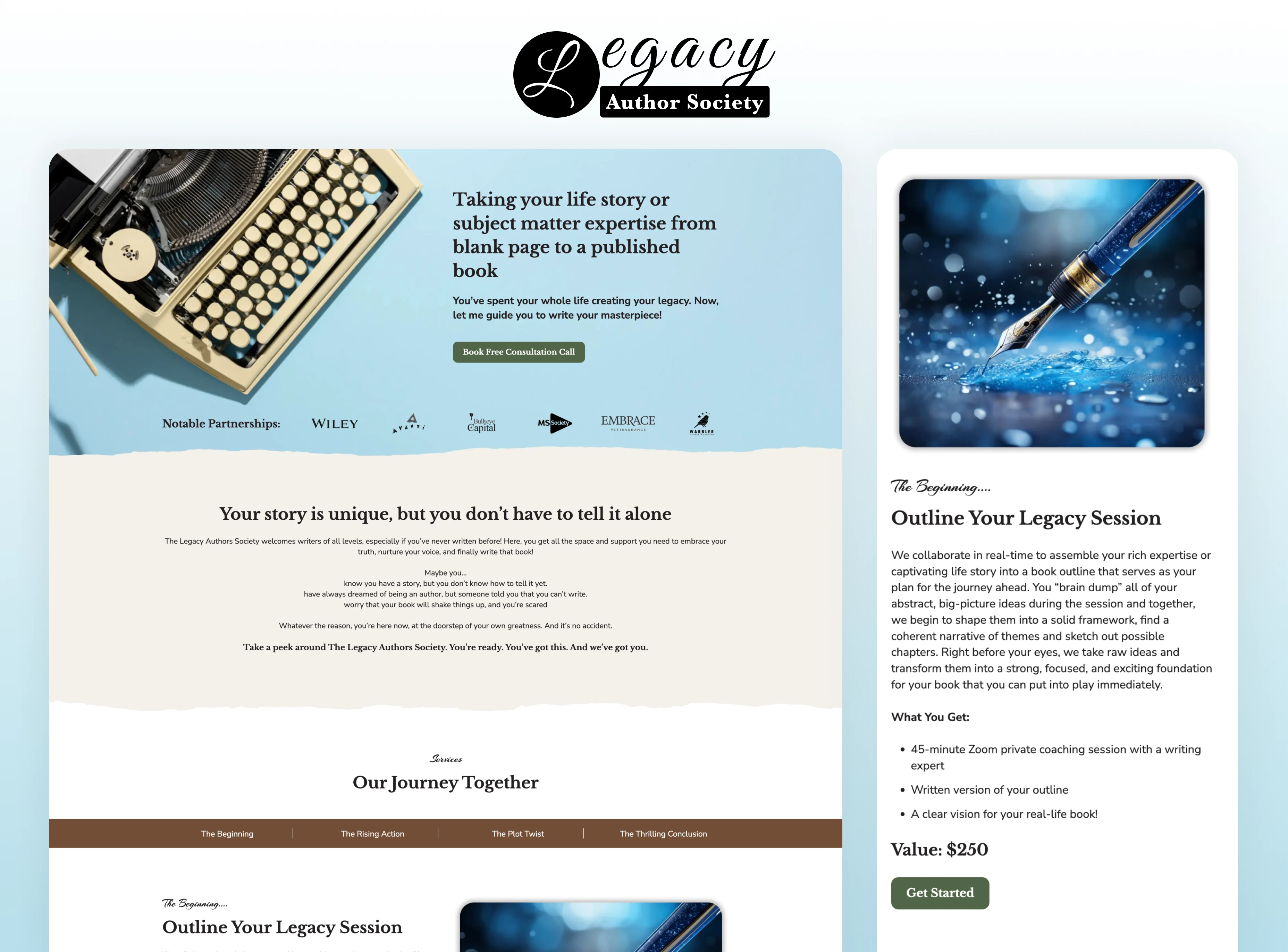 The Legacy Author Society is a platform designed to promote the productized services of Sarah Sypniewski.