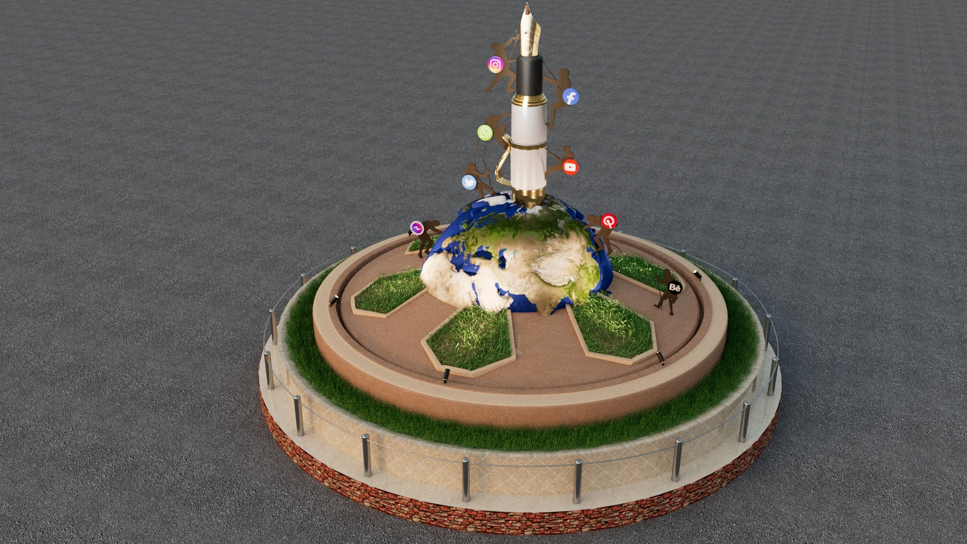 Innovative 3D roundabout designs featuring sculptural central and vibrant diffrent concepts, illuminated by embedded LEDs for a striking urban aesthetic.