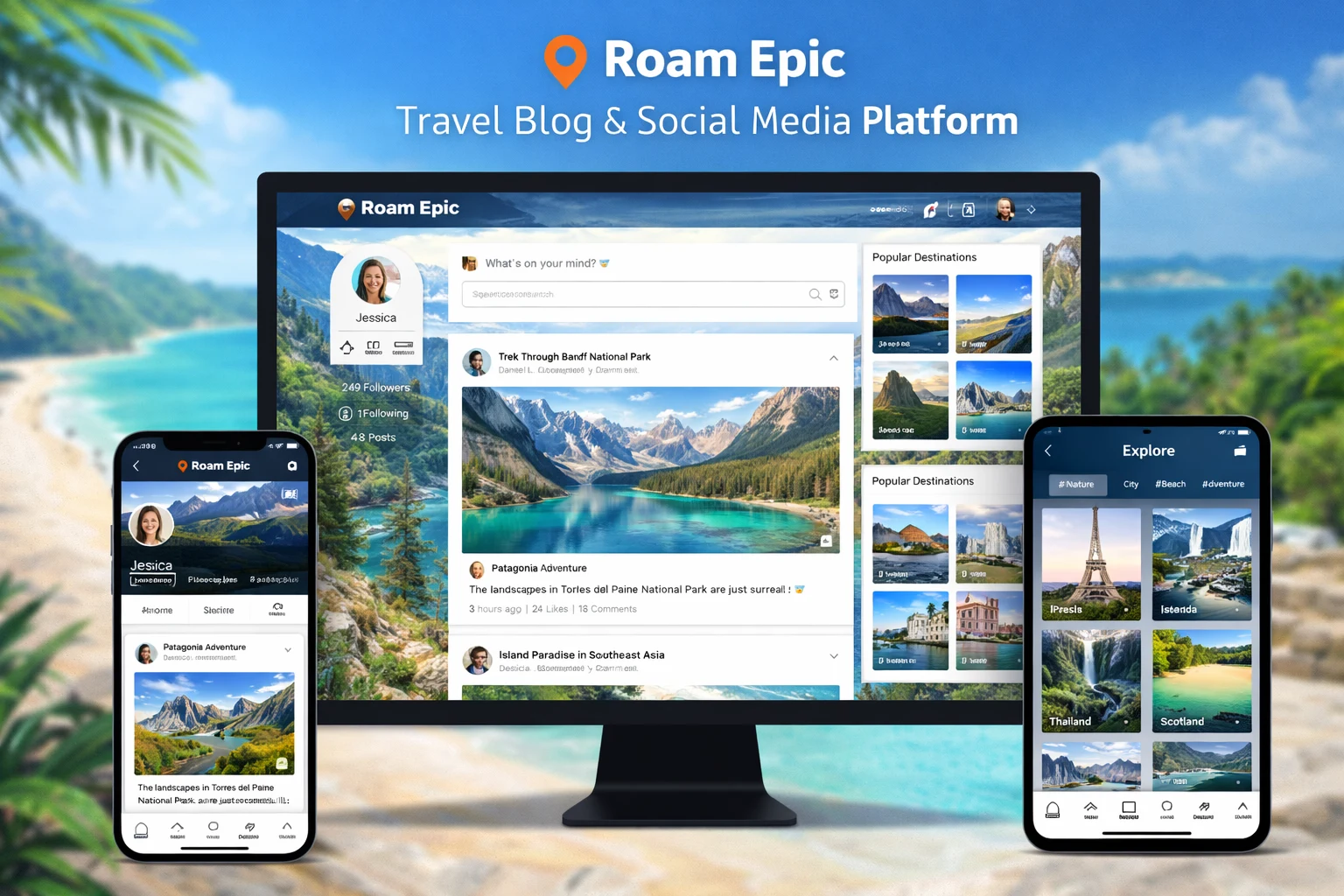 The goal of Roam Epic was to create a travel-focused social platform where users could share stories, destinations, and experiences through rich content and social interaction. The client wanted a modern, engaging application that felt fast, intuitive, and reliable across devices.