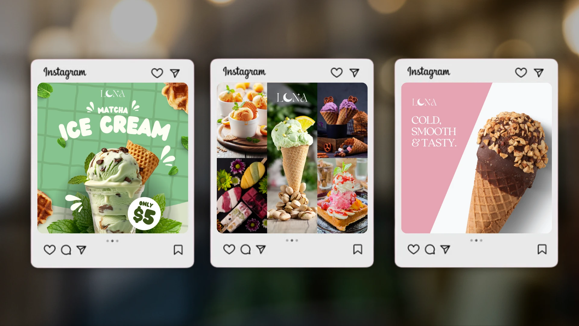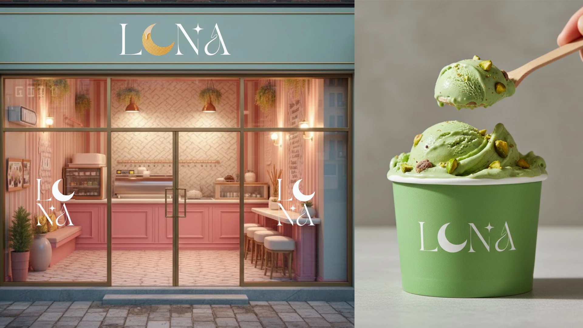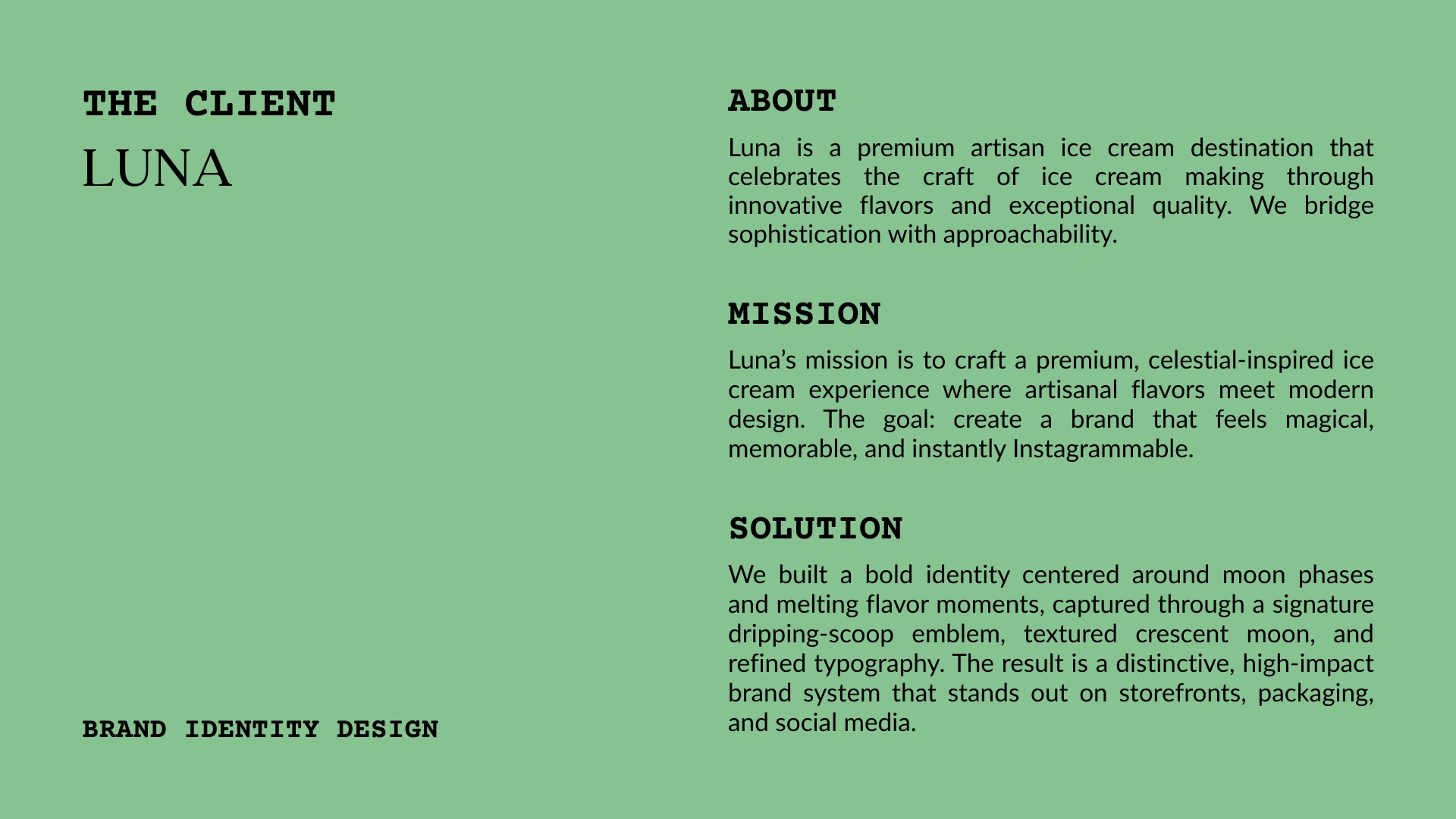 A premium artisan ice cream brand identity inspired by lunar phases-blending celestial visuals, crafted typography, and social-first design for modern audiences