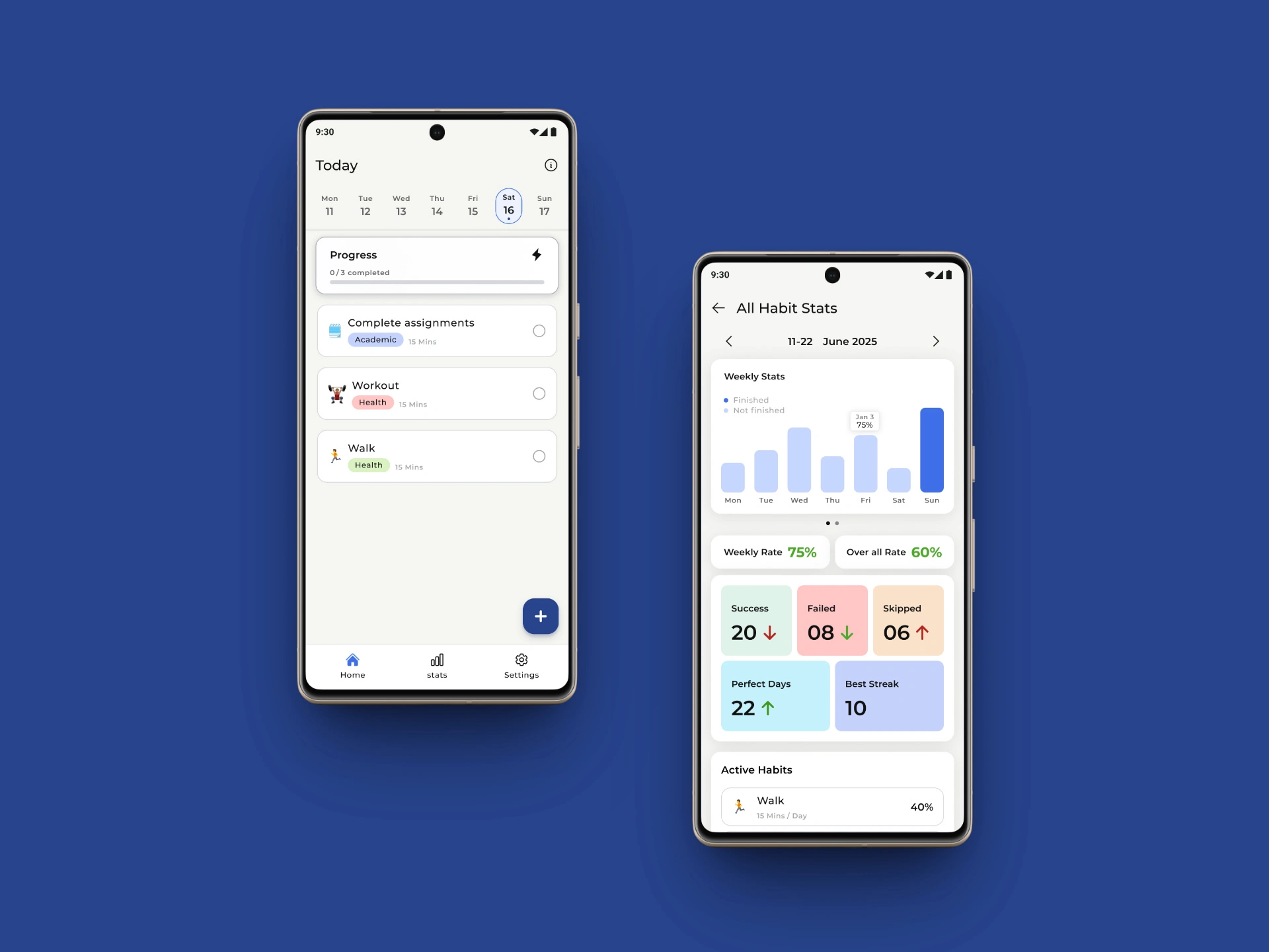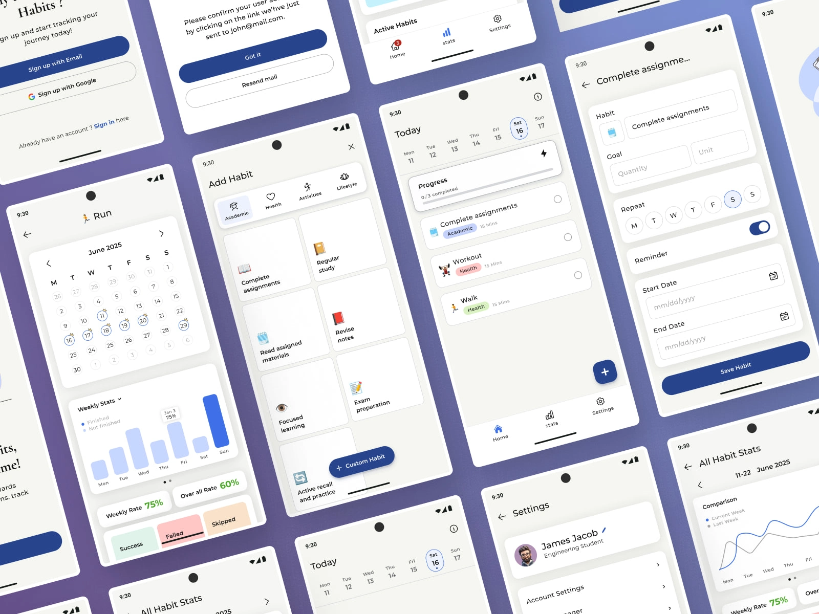Designed a habit tracking app tailored for students.