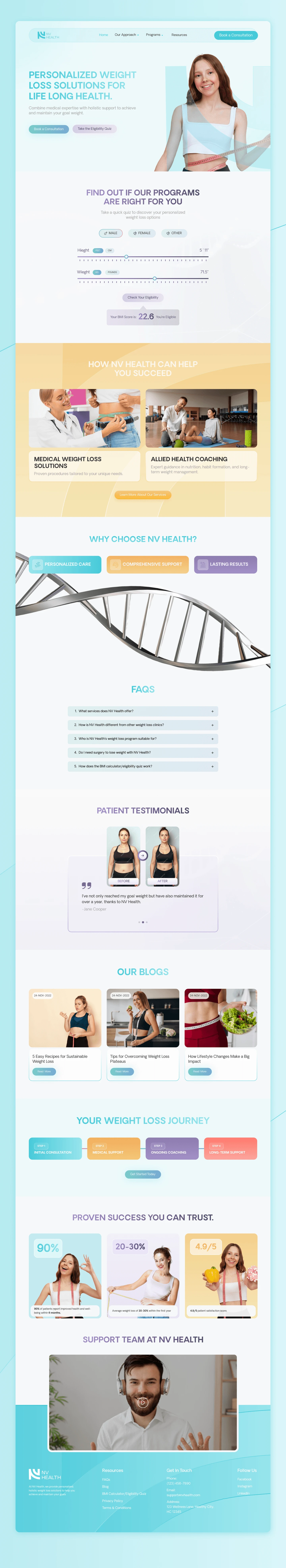 Crafted a clean and calming homepage experience for a weight loss clinic that strengthens user engagement and increases lead generation through CRO optimized conversion design.