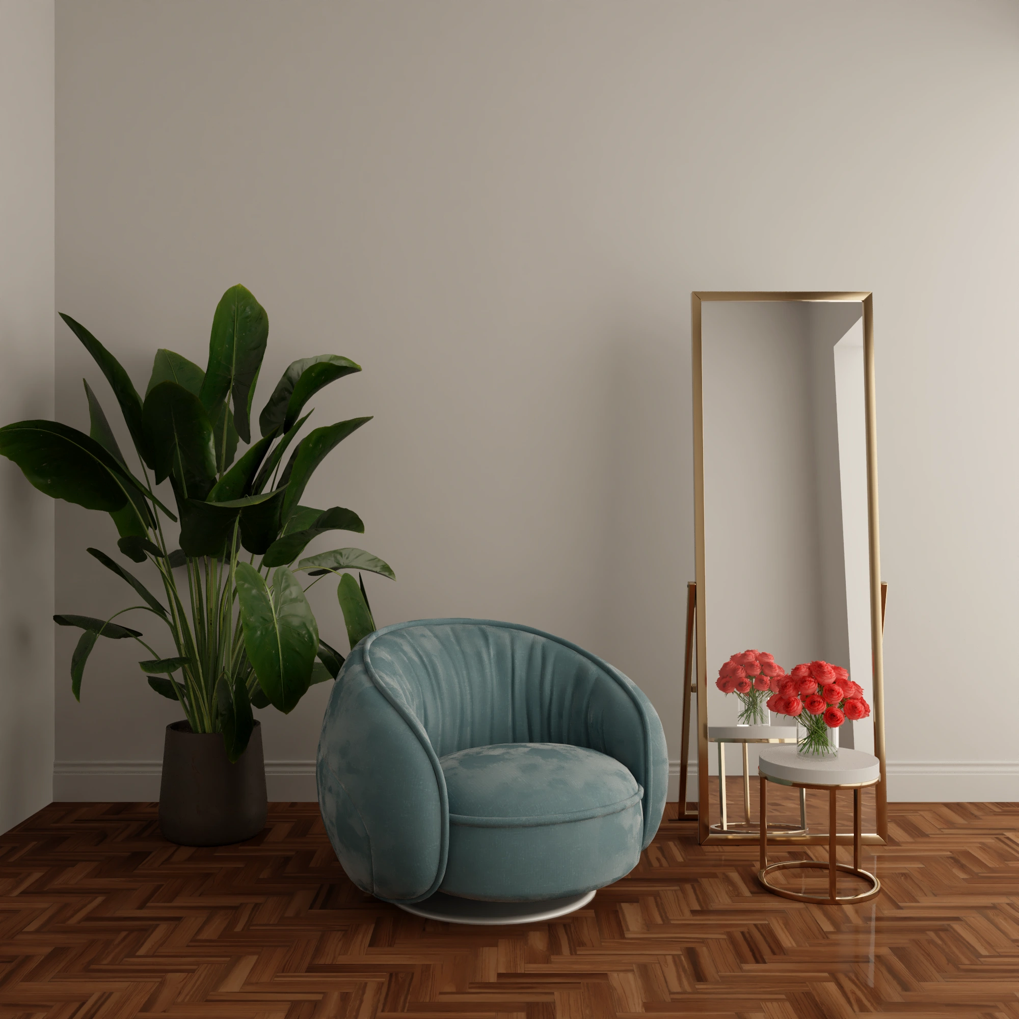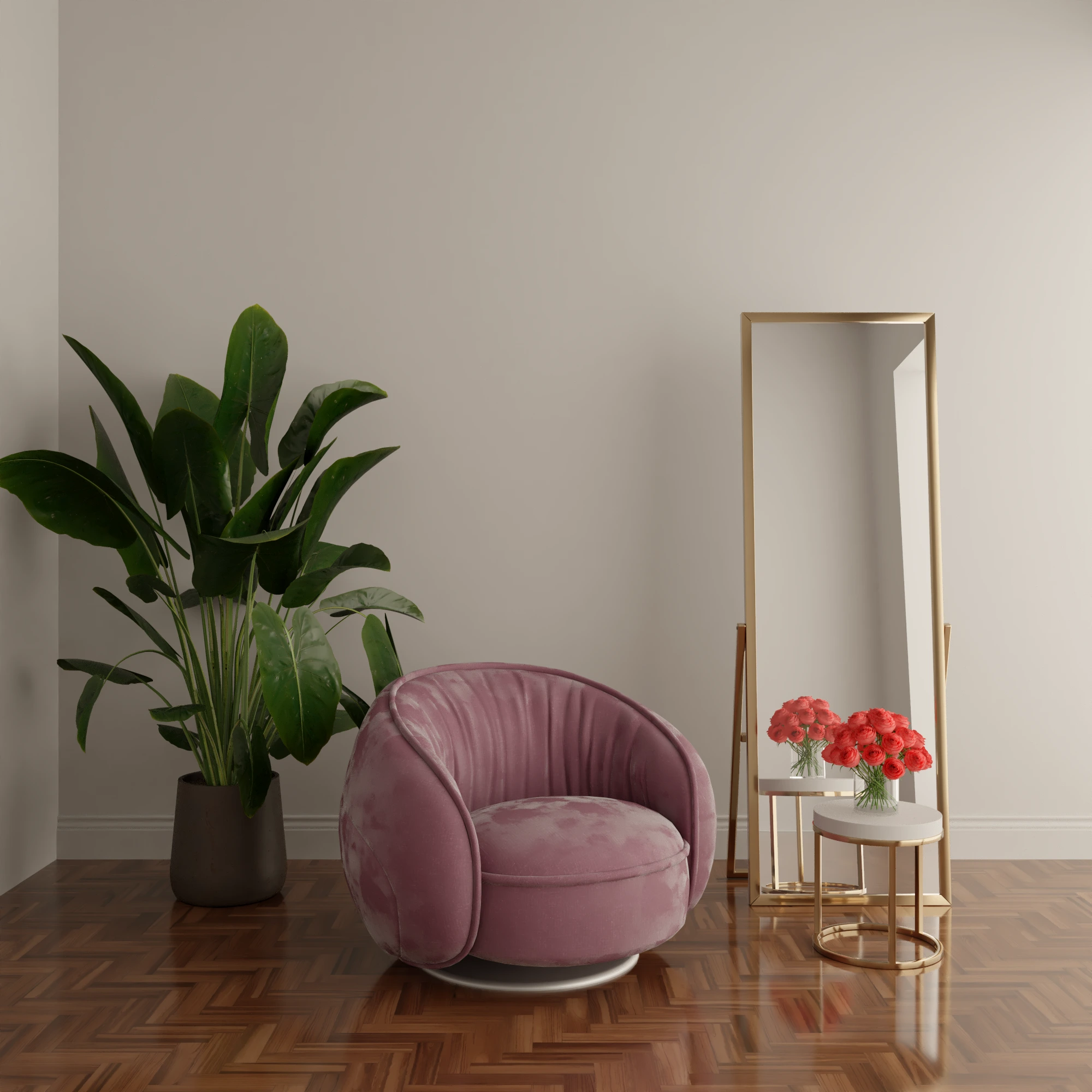 Interior scenes with an armchair and a vase.