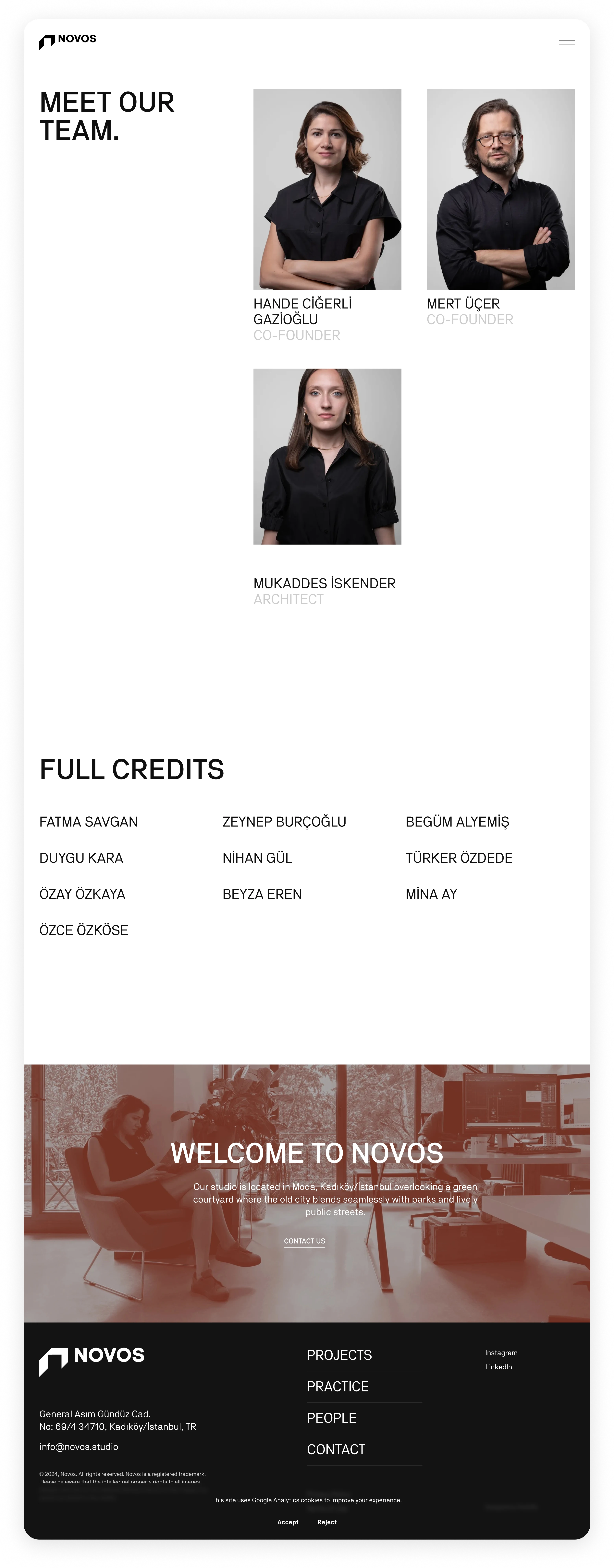 Website design for Novos.studio, an architecture and design studio. Minimal, elegant visuals with a strong focus on showcasing project work.