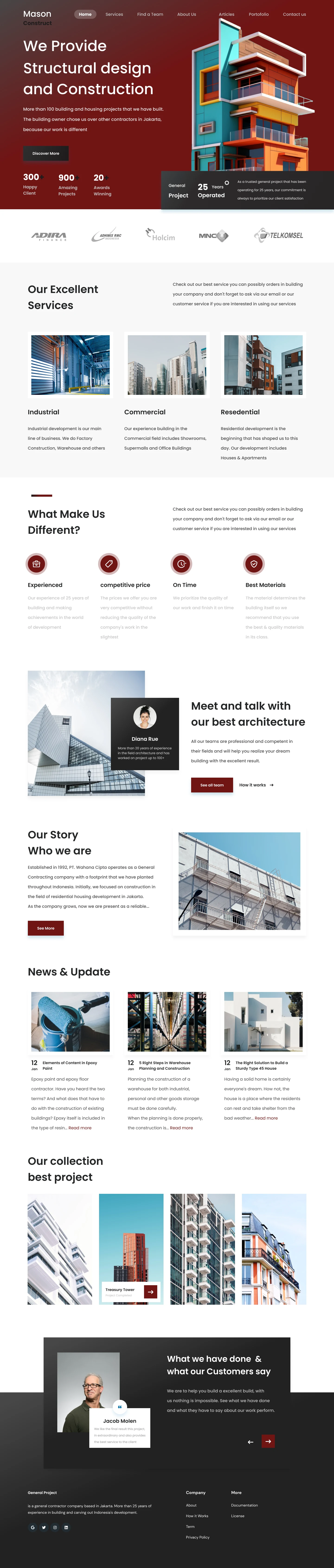 I designed a modern, responsive website for Mason Construction Company using Framer, with the initial concept and layout created in Figma.