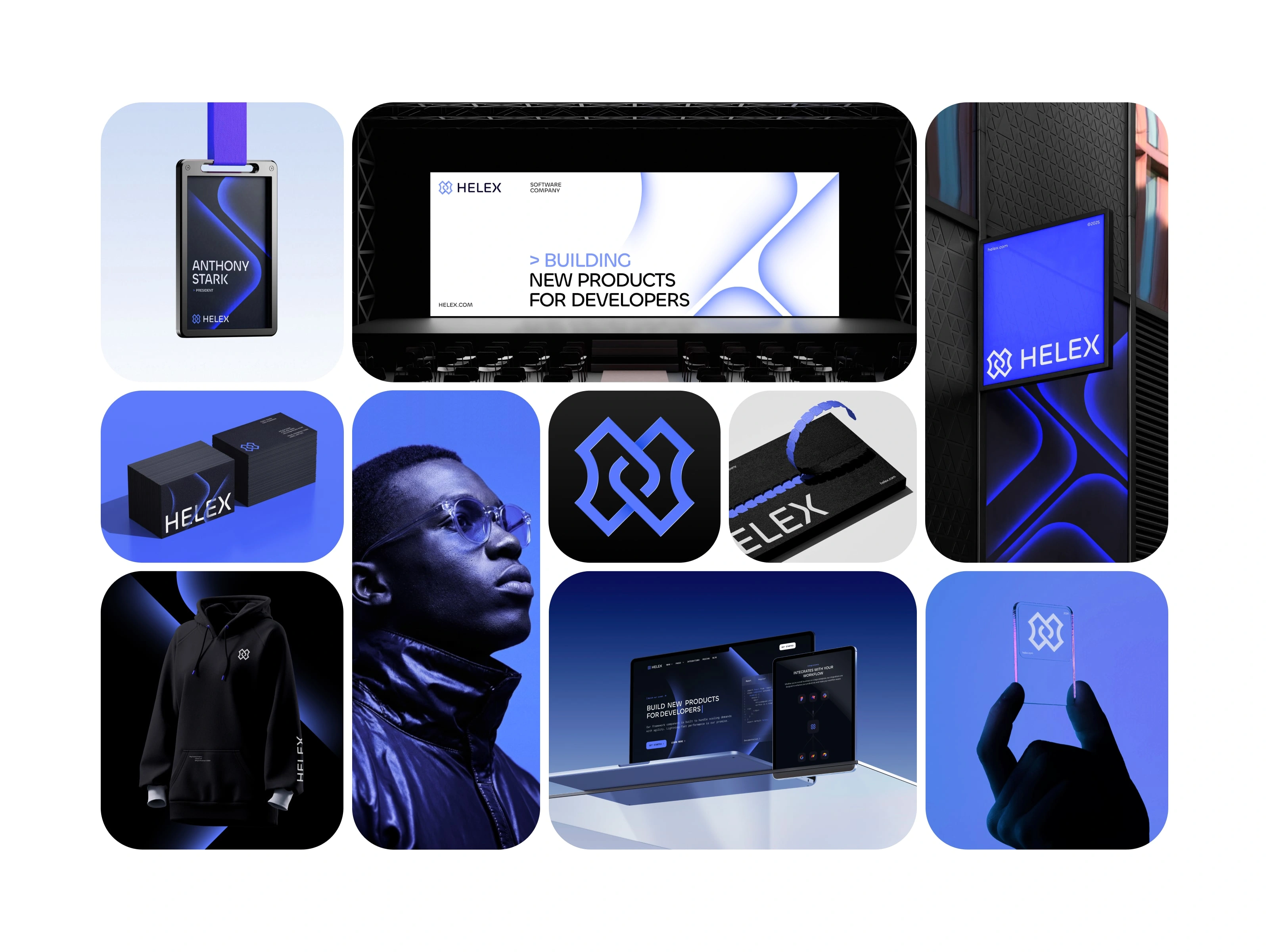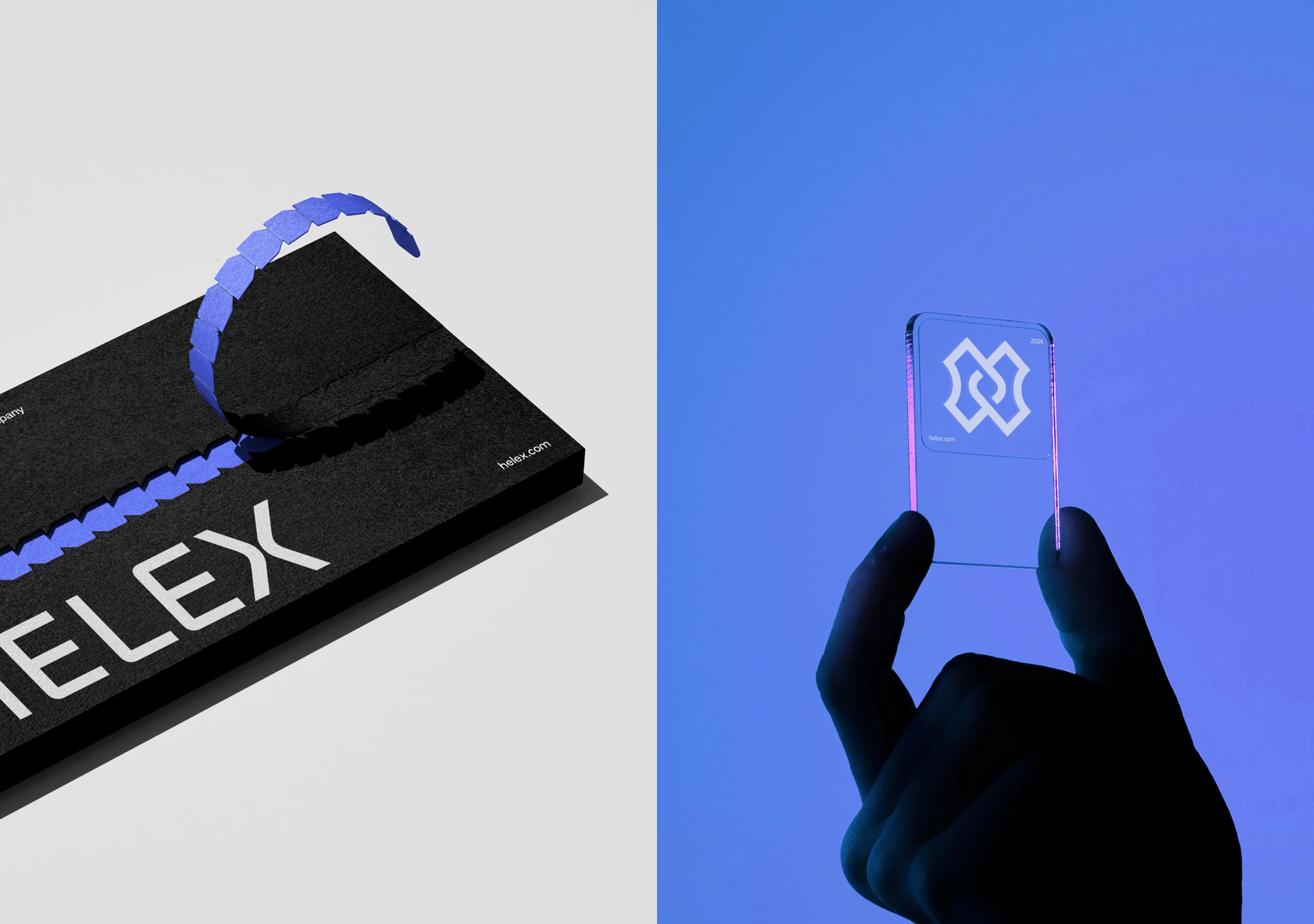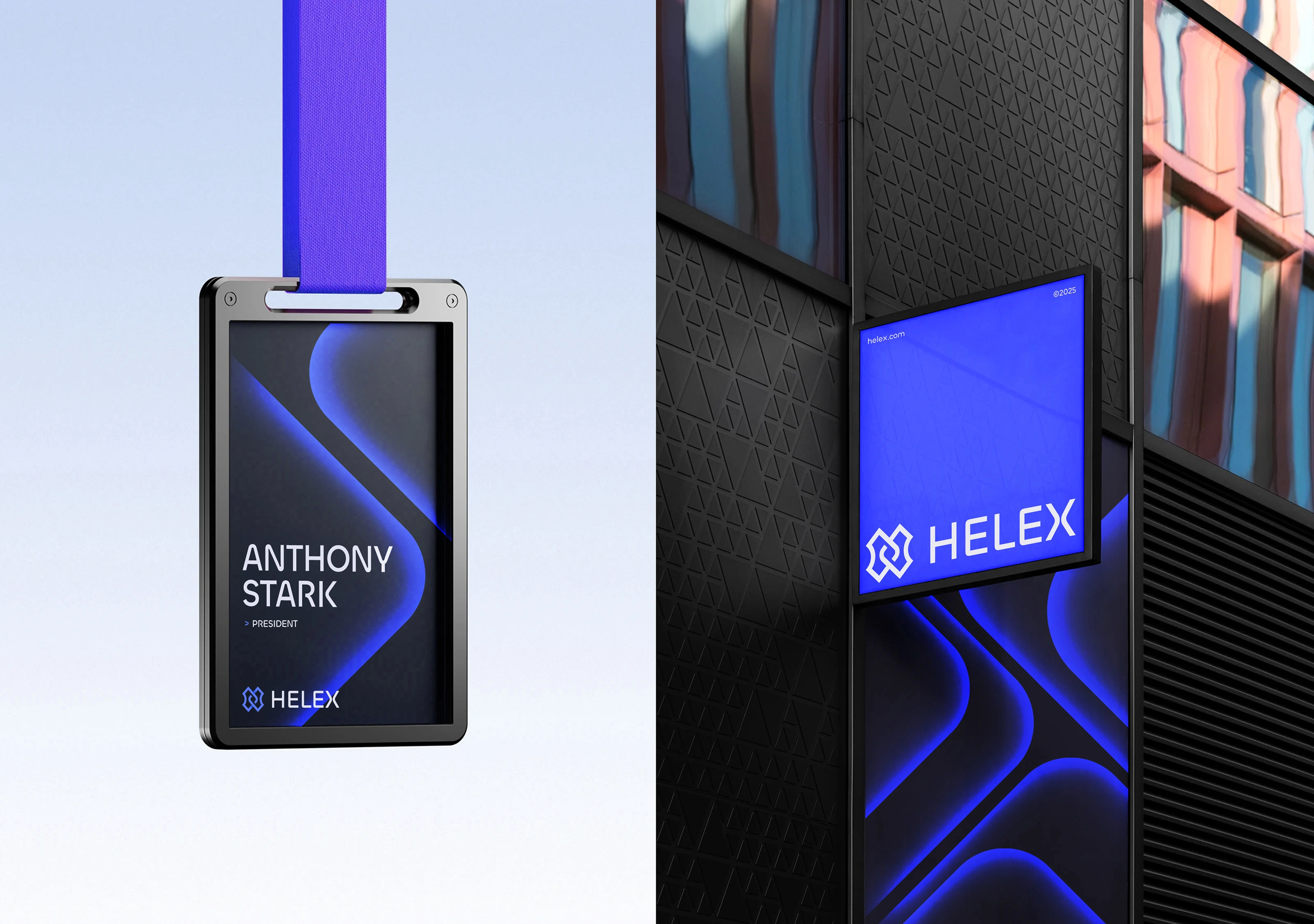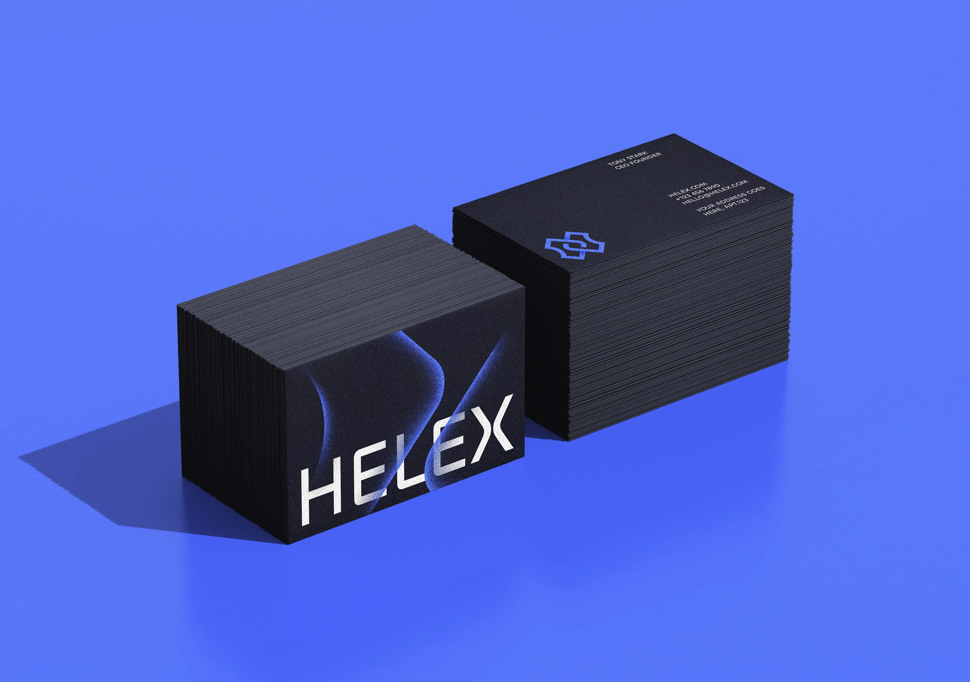 The final brand identity positions Helex as a confident and forward-thinking technology brand.