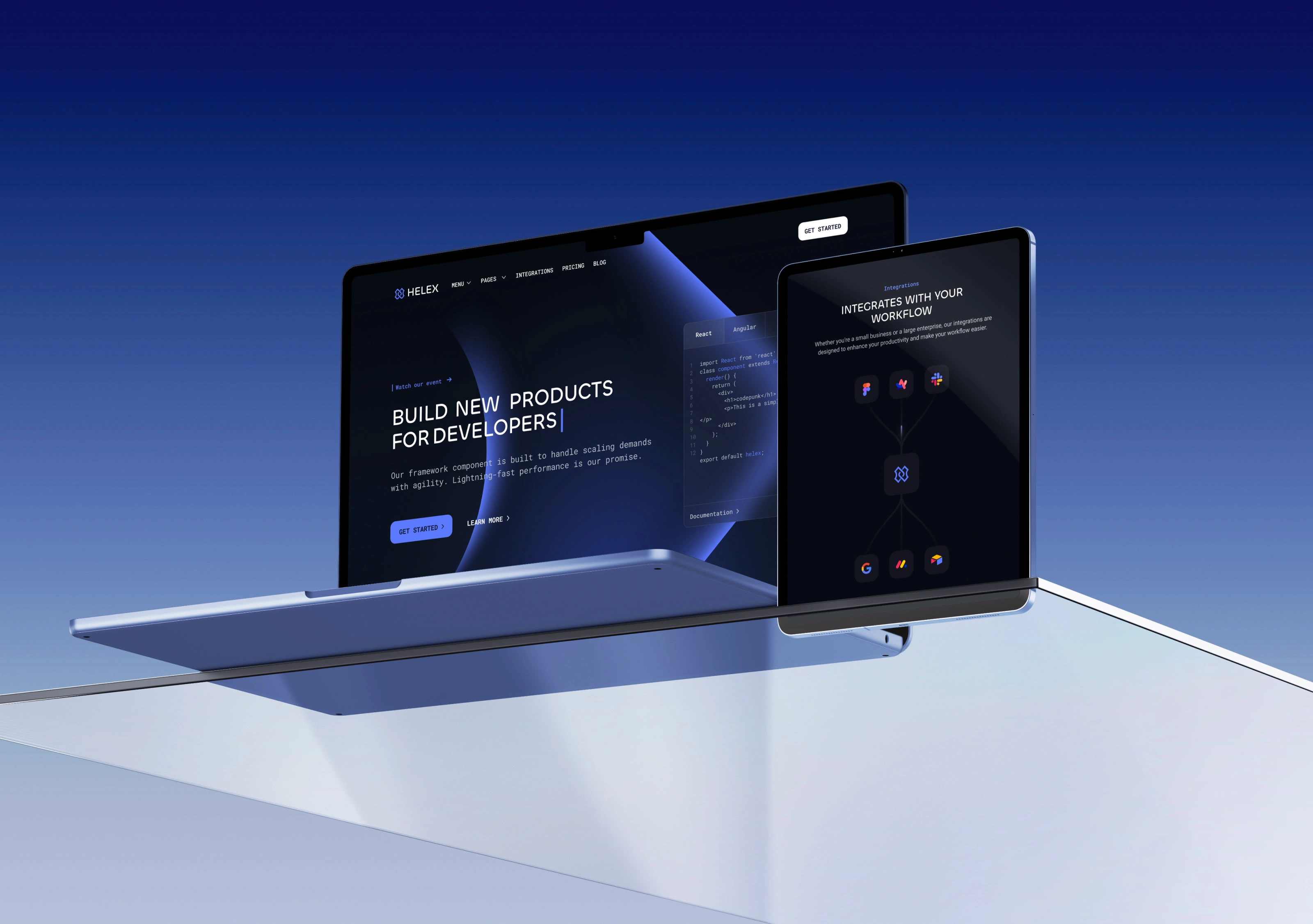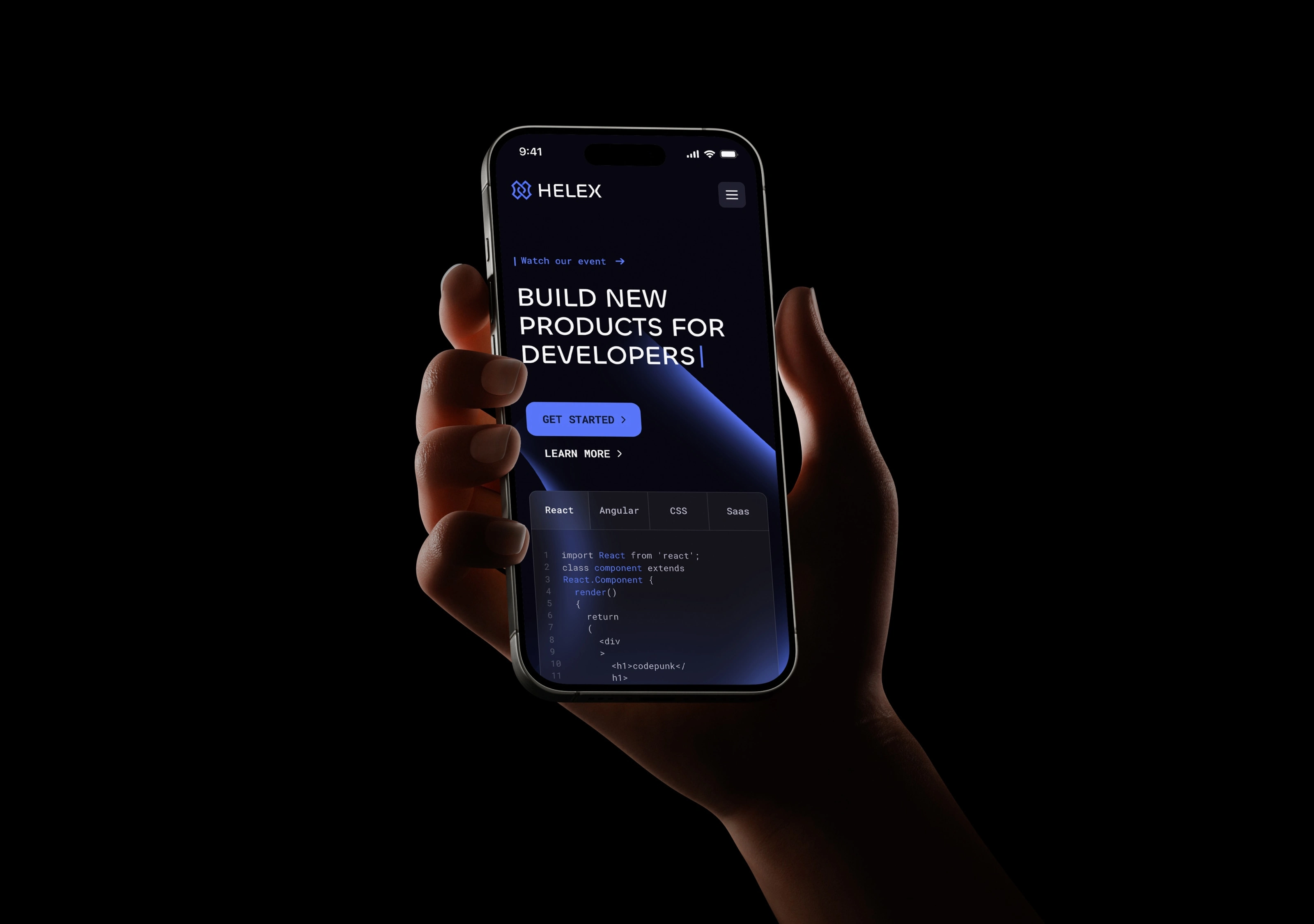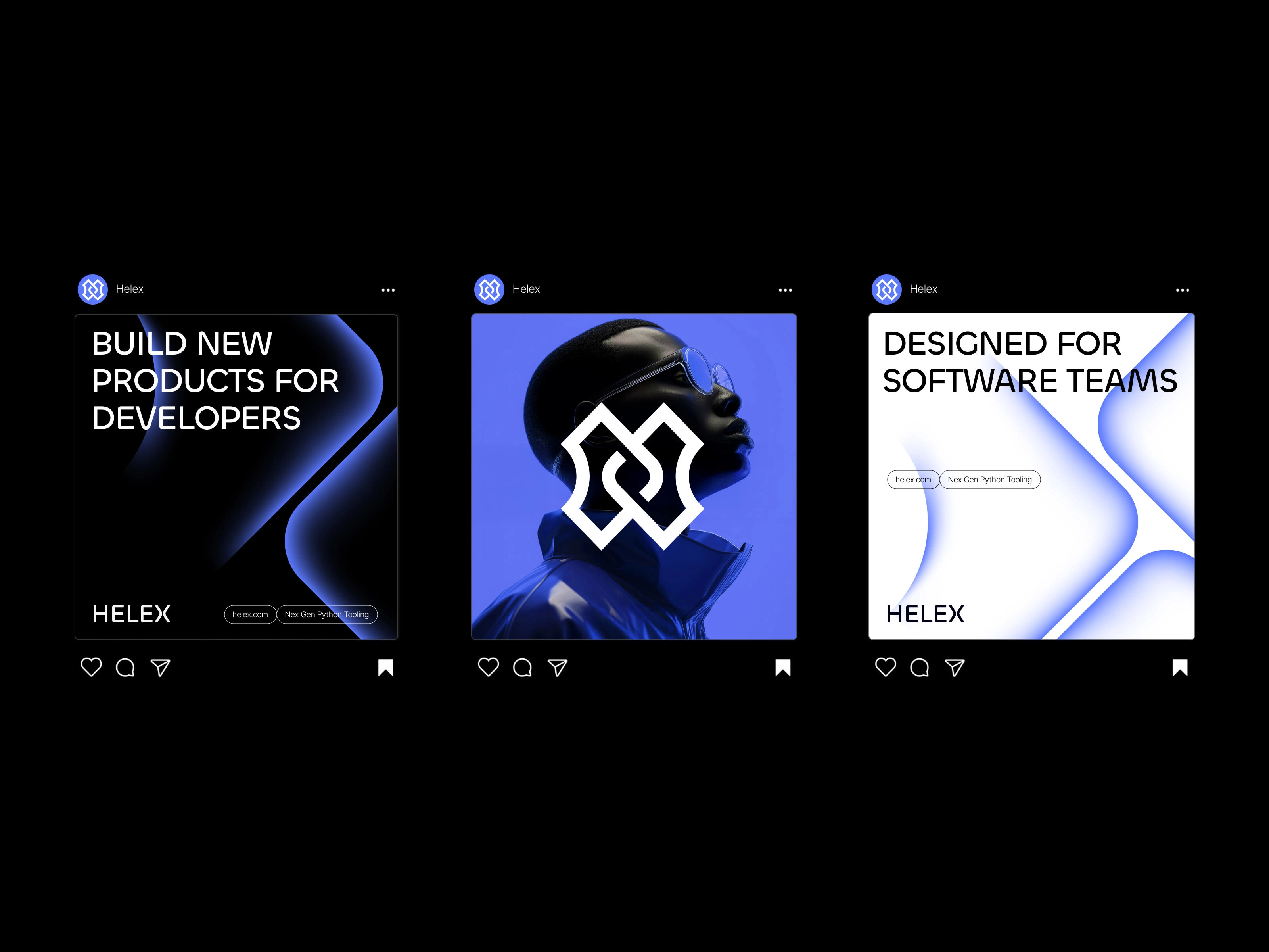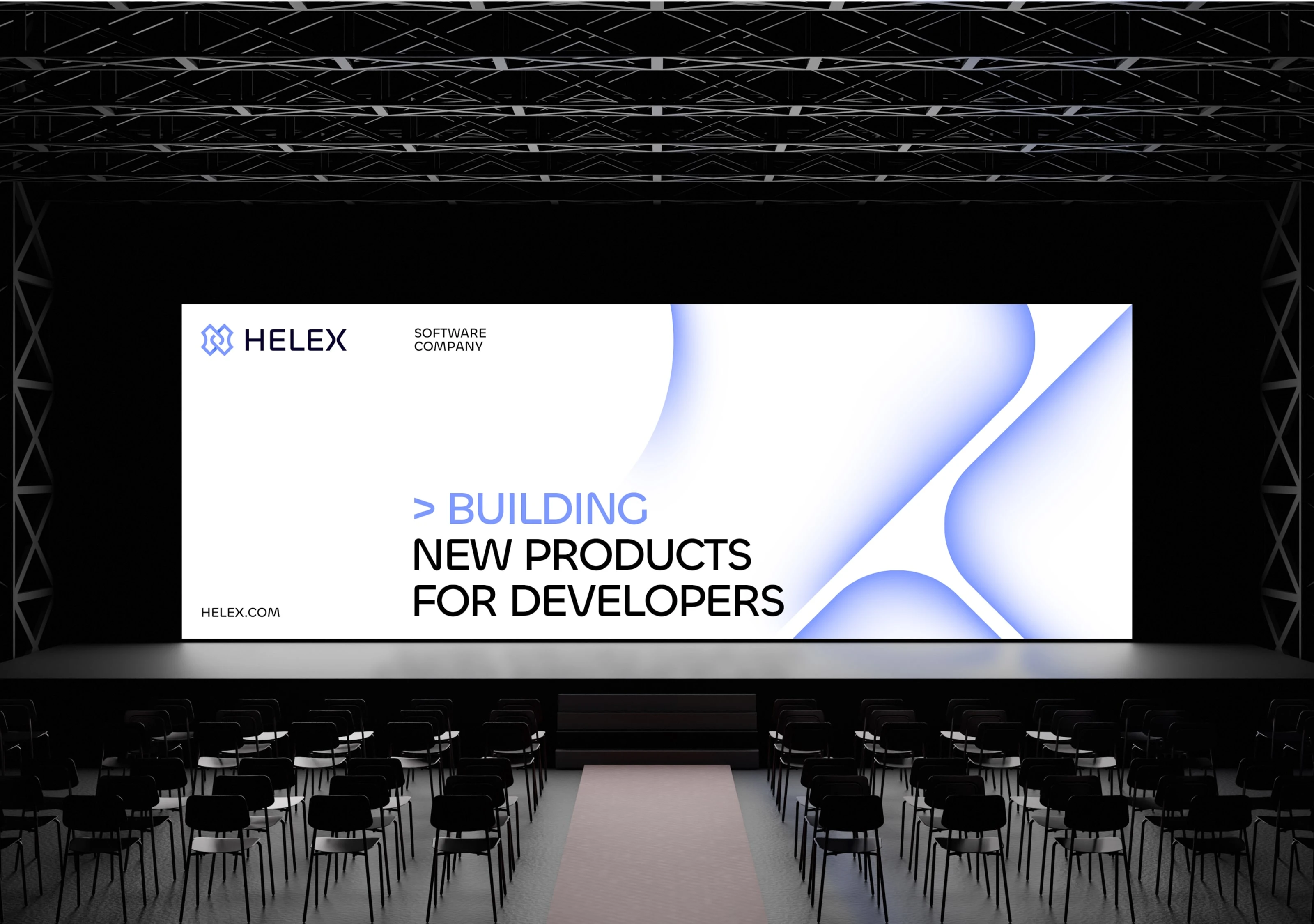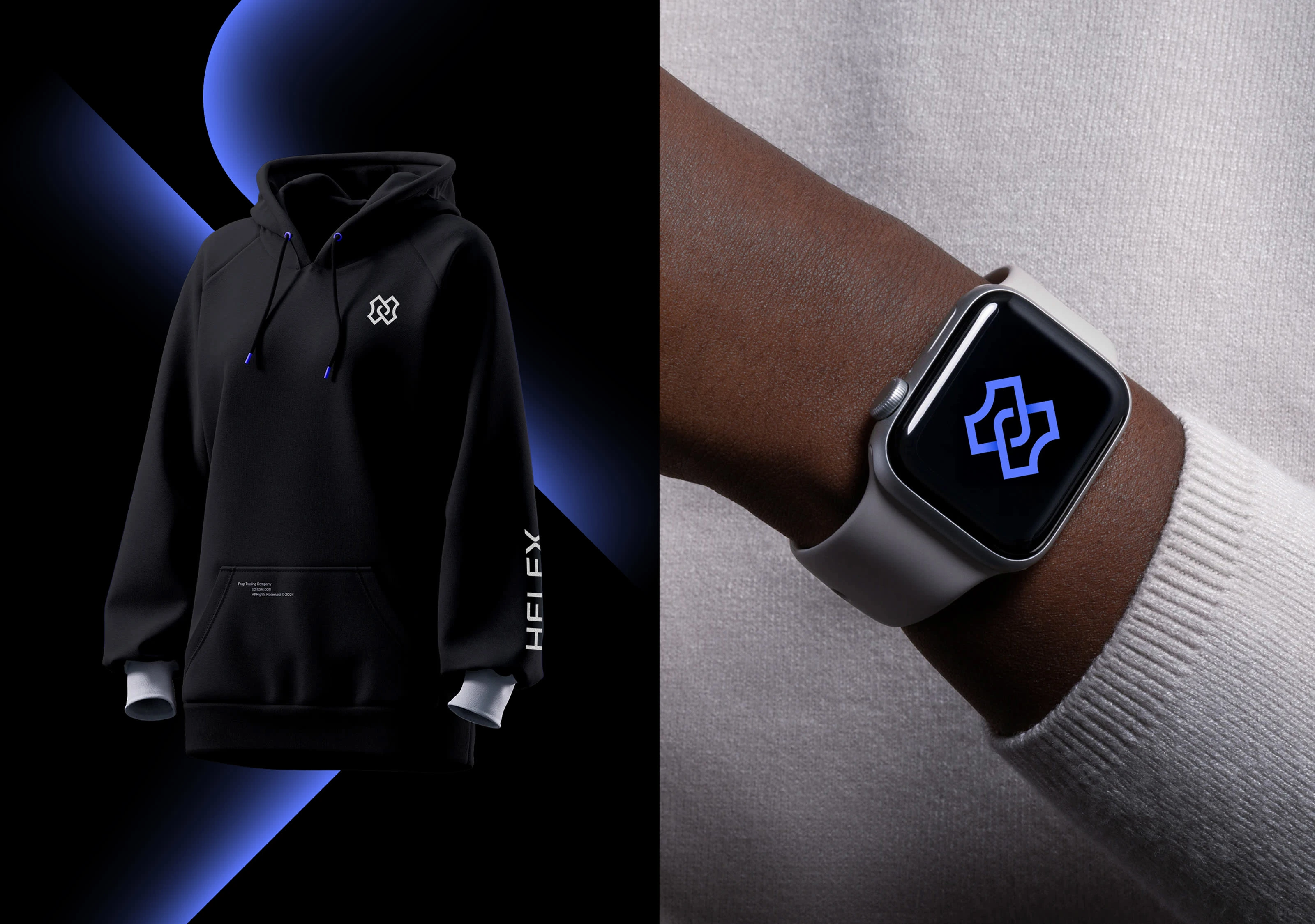 The final brand identity positions Helex as a confident and forward-thinking technology brand.