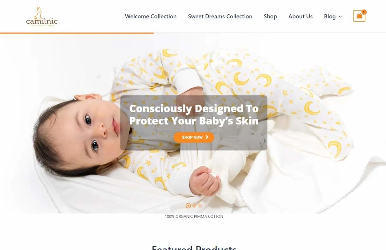 Landing Page for wordpress website. Client is selling baby cloths online and was needed a landing page to show products.