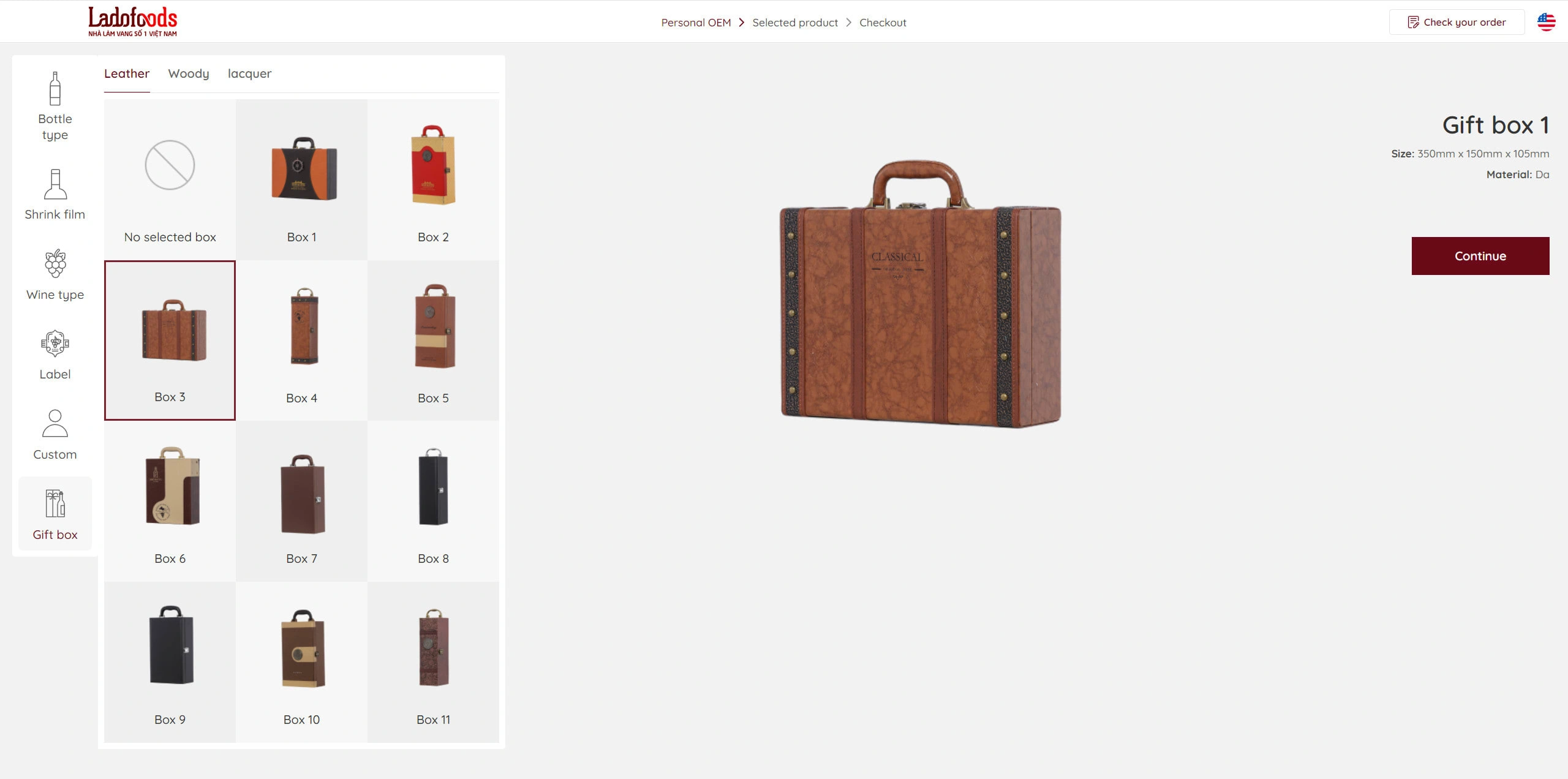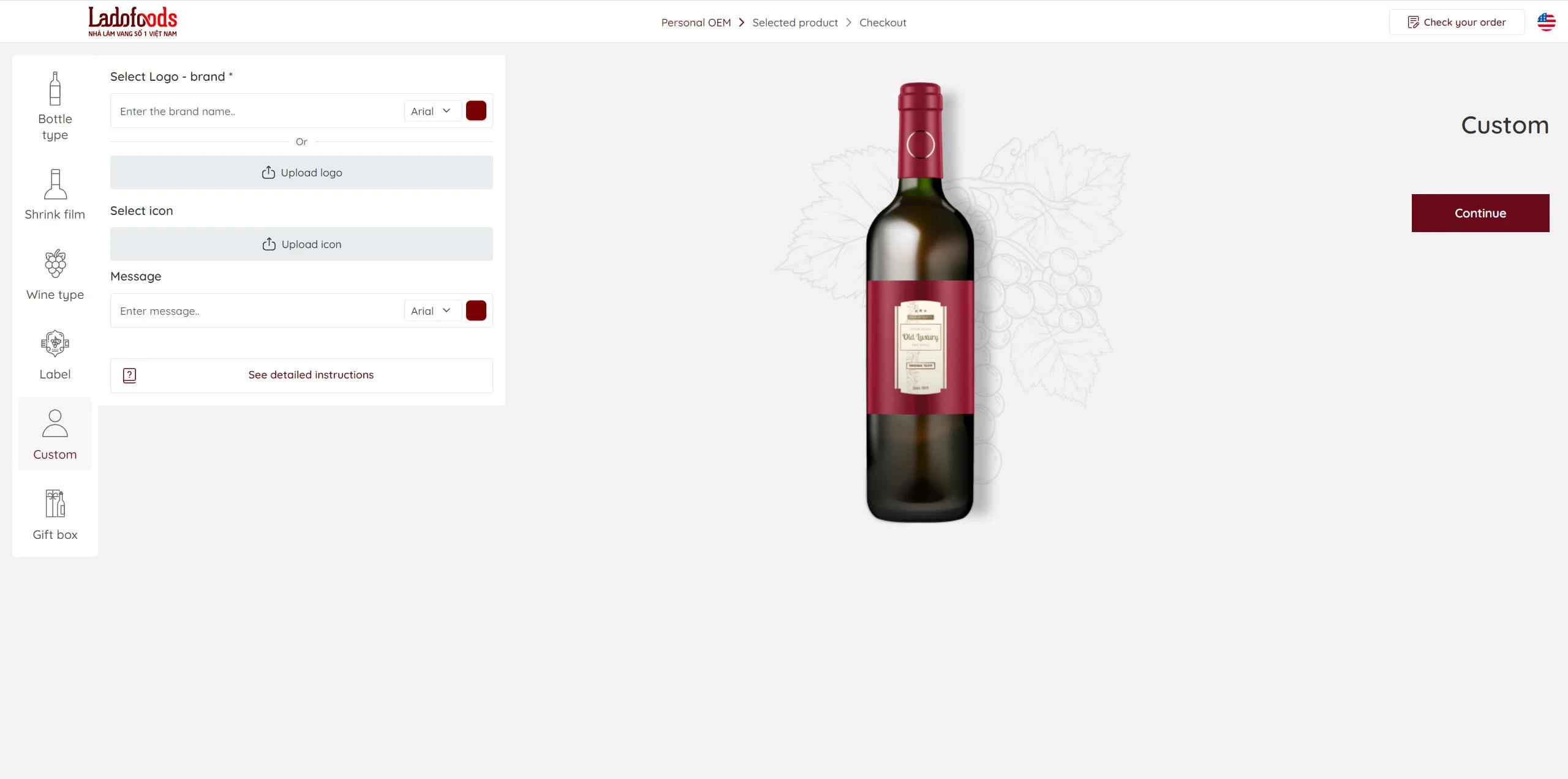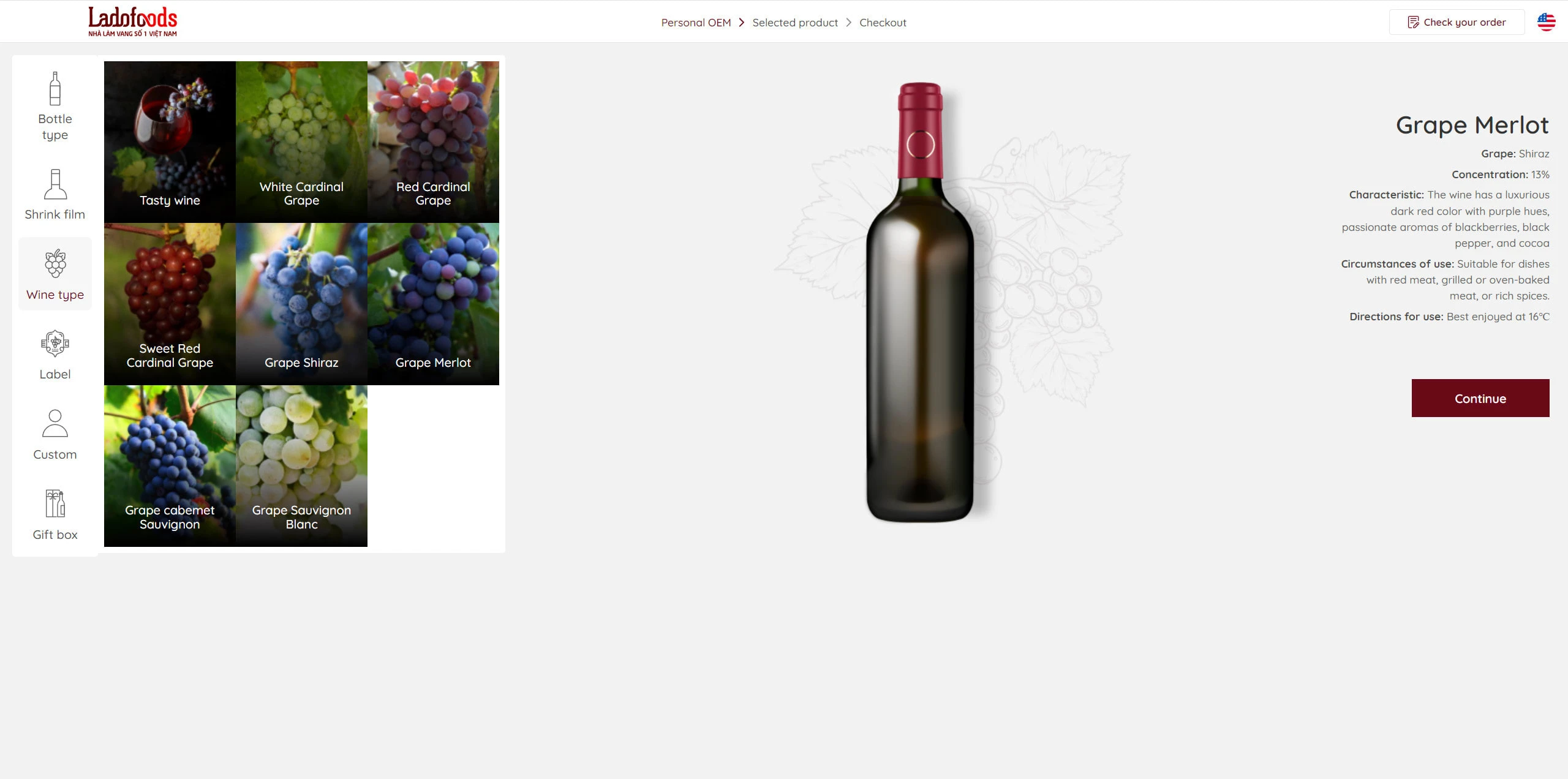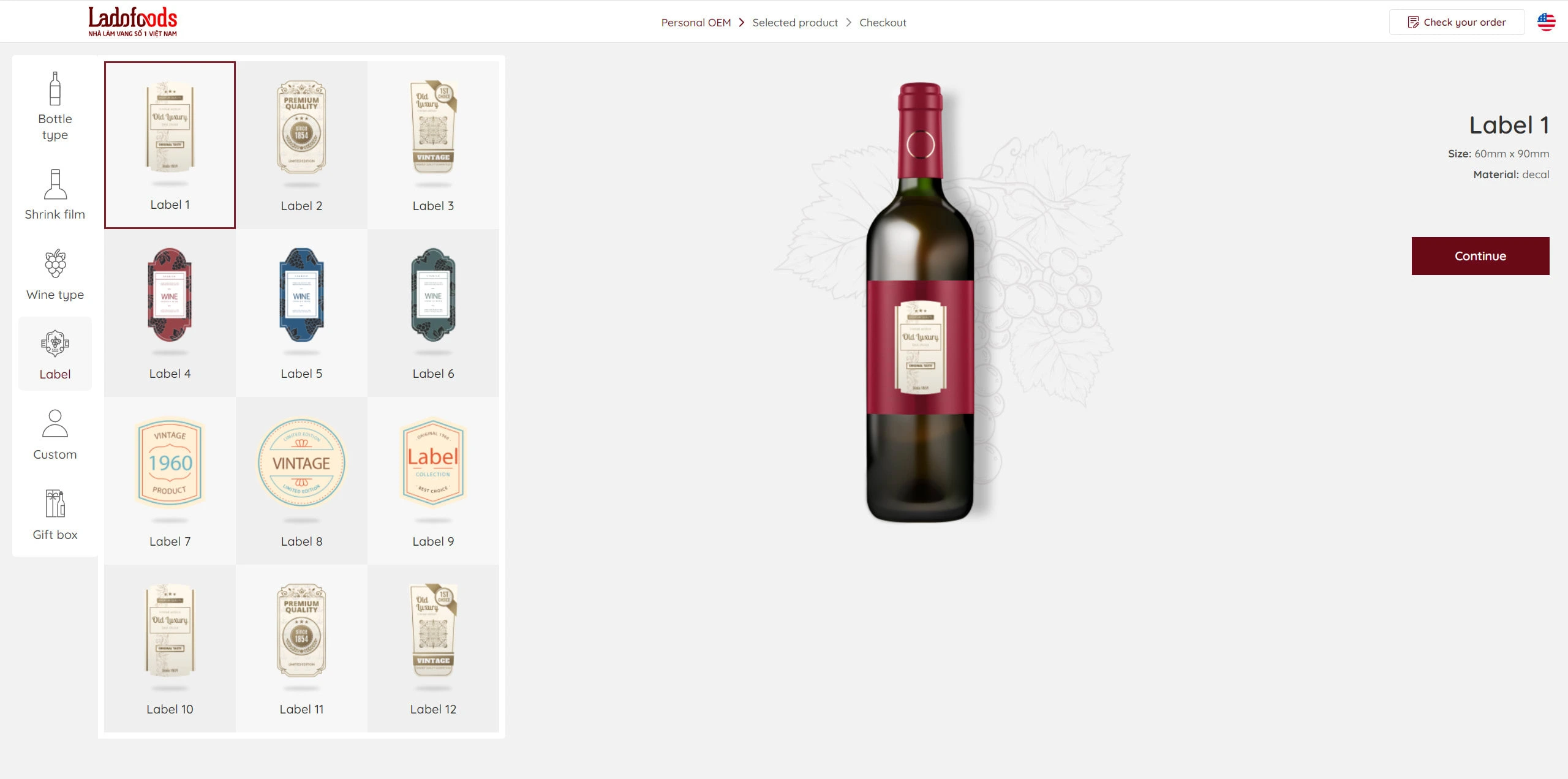 - Use local storage to save the selected item (Bottle type, shrink film, label,...) and load it in the preview / Selected product page / Checkout page,...