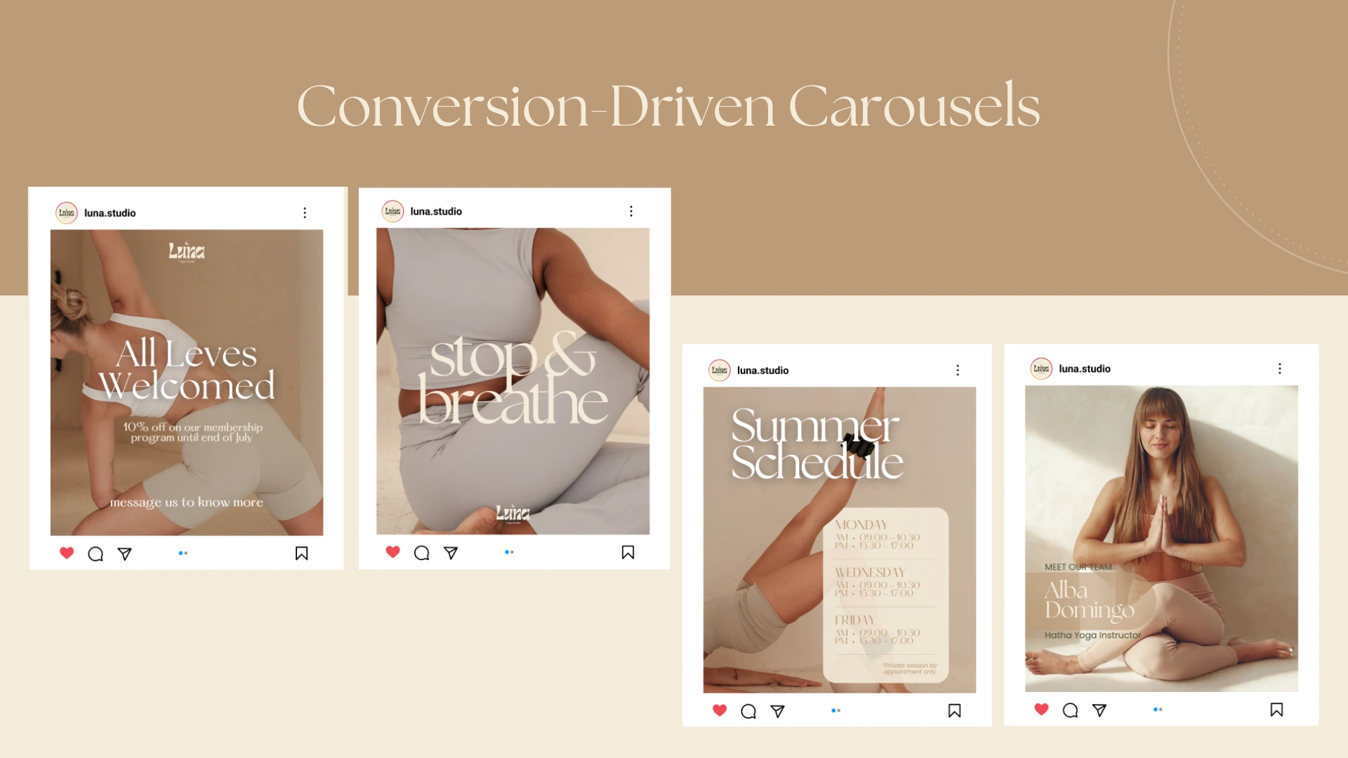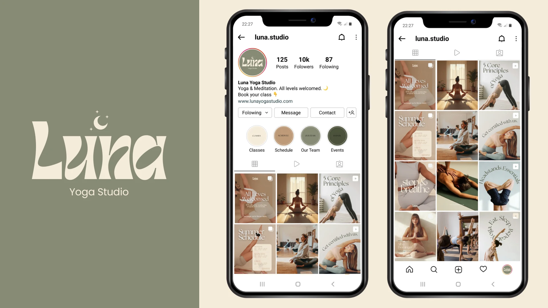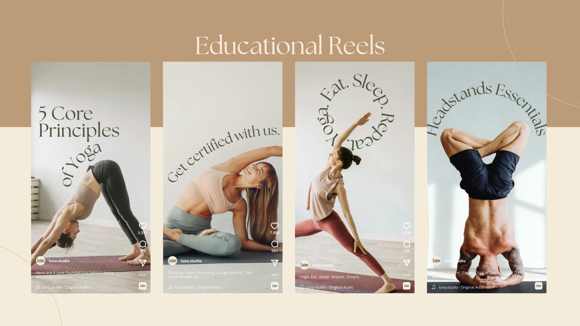 Luna Yoga Studio offered a calming, high-quality in-person experience but lacked a clear and cohesive presence on Instagram. Its content fell short of strategic direction, and there was no defined brand identity to differentiate the studio within a competitive wellness market. As a result, engagement remained low, and Instagram was not effectively converting followers into students.