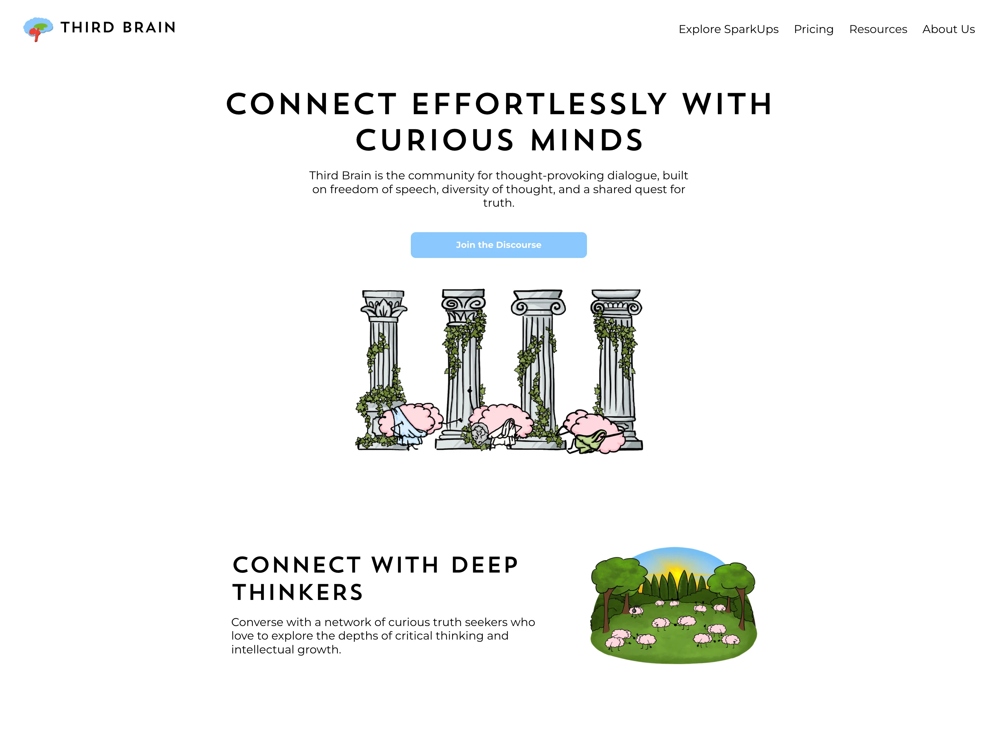 I designed and developed the Third Brain website, a platform built to cultivate a community of independent thinkers and curious truth seekers. The project involved creating an engaging user interface using Framer, allowing visitors to easily apply, view pricing, and learn more about Third Brian. I also integrated seamless email capture features through Mailchimp for growing the organization's backend.