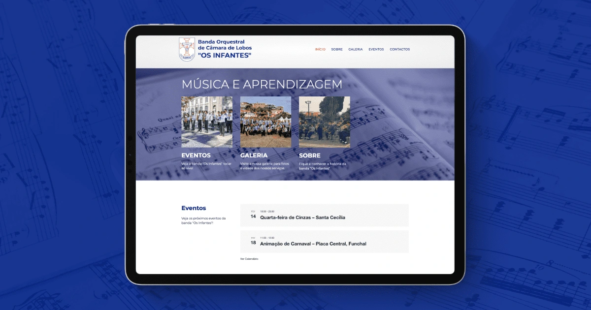 Banda Orquestral de Câmara de Lobos "Os Infantes" is a local band that has a long history in Madeira, providing music to everyone both in concerts and local festivities. Our goal for this project was to update the band website, making it modern, mobile-friendly and easy to update with upcoming events for the band.