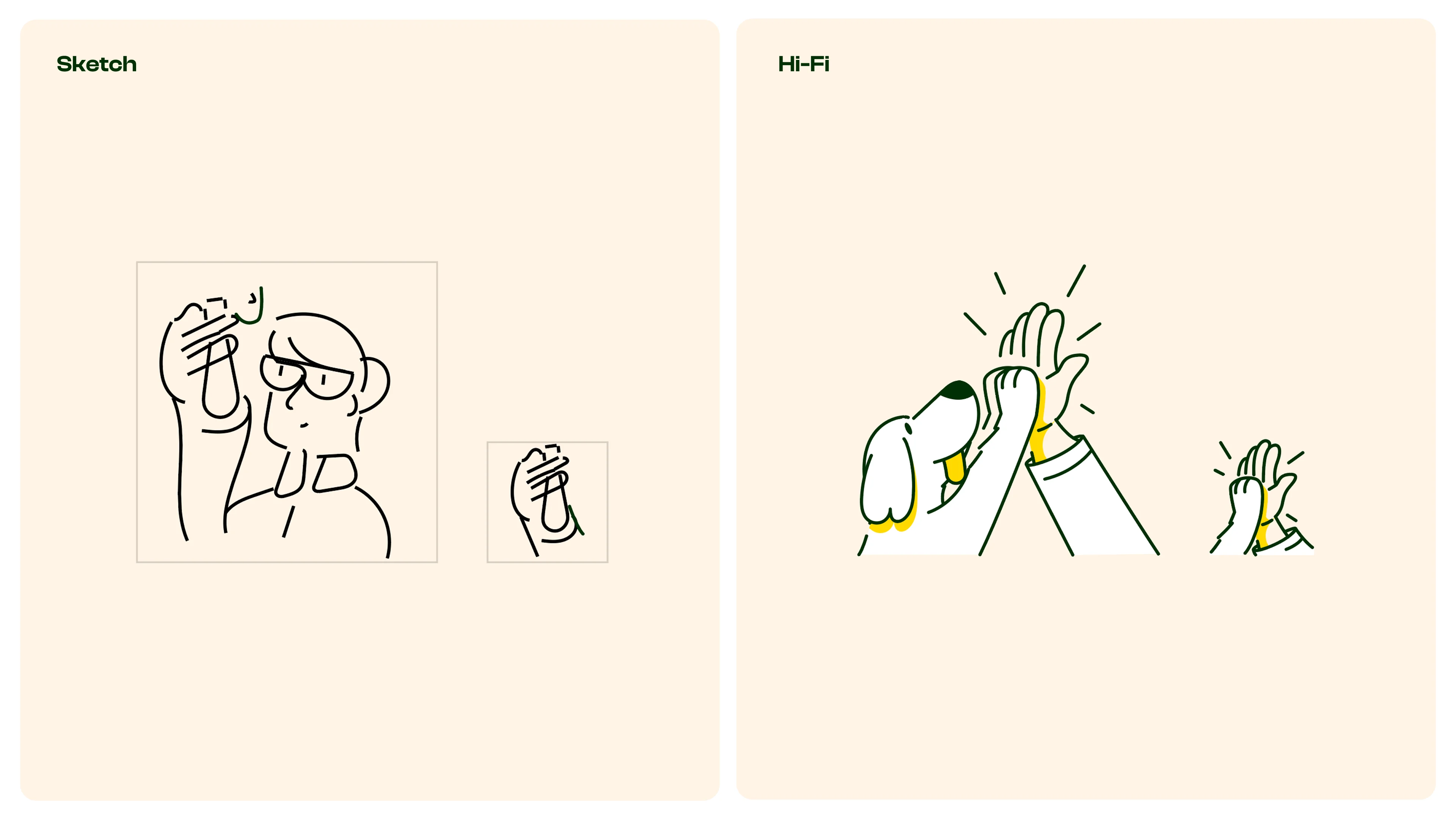 The key to the illustration system was modularity and flexibility. It had to scale seamlessly, working just as well in large formats as it did in smaller applications.