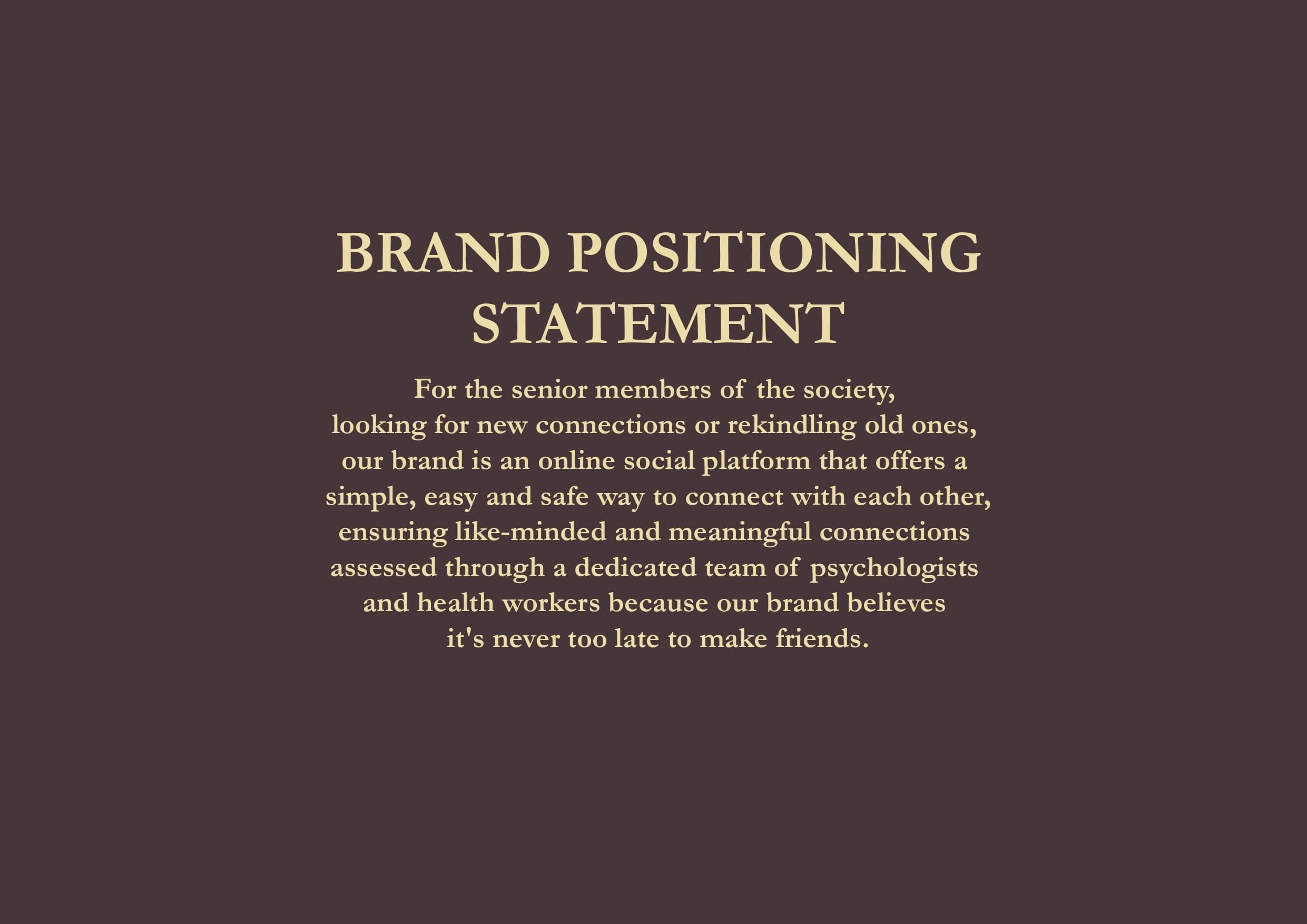 I created a brand strategy, naming and logo design for a social media app targeting the elderly citizens of the society. The social media brand focuses to connect elderly citizens of the society and create a platform for them. The brand values are trust, safety, socialisation, simplicity, and comfort. The logo concept is inspired by the idea of connecting whales together, since whales live long years and are considered quite lonely.