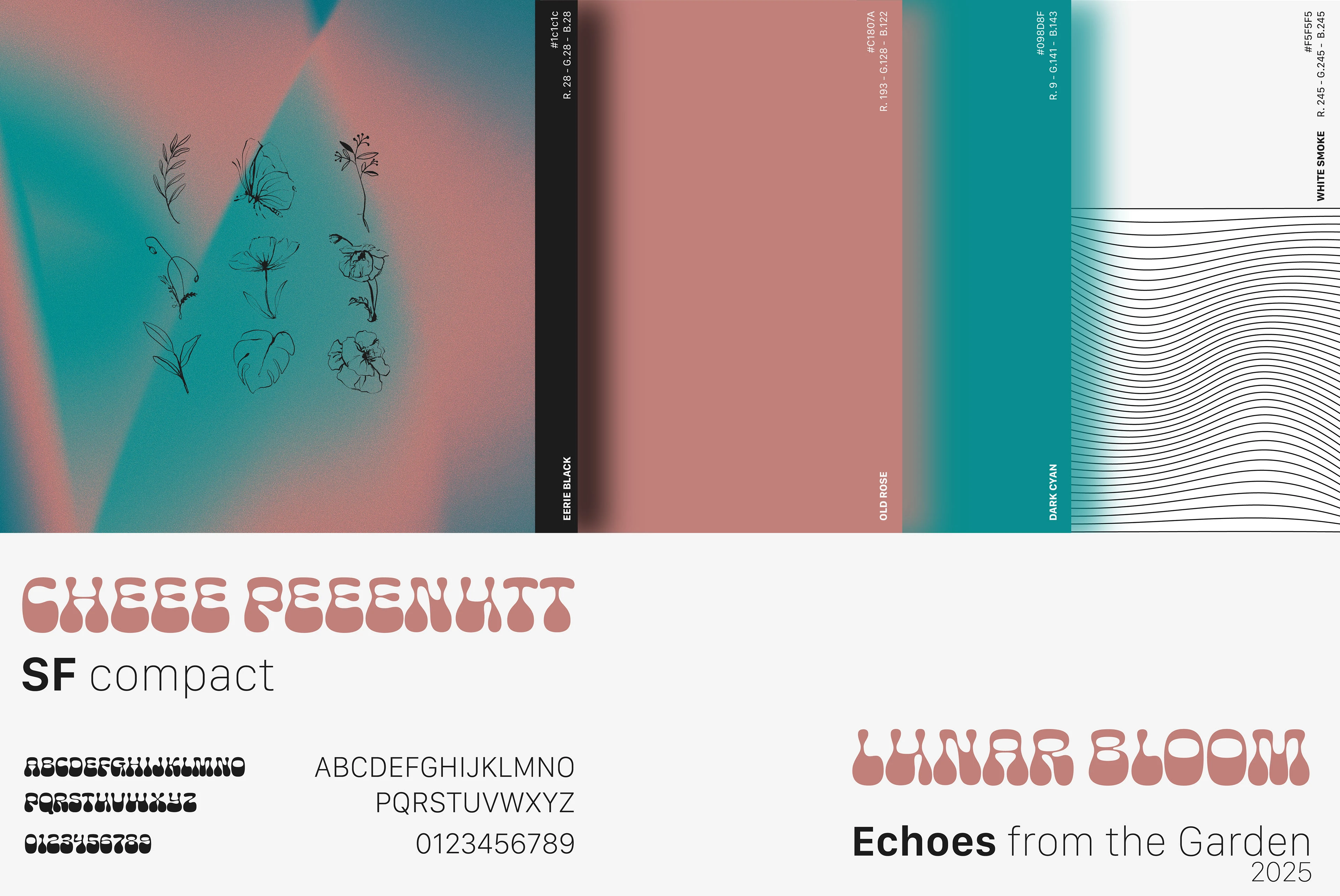 I started with a fictional music project blending dreamy and psychedelic tones. I focused on translating the sound’s emotional texture into visuals, using pastel tones, lunar collage work, and grainy overlays. The goal was to create a visual identity that evokes nostalgia, softness, and subtle strangeness.