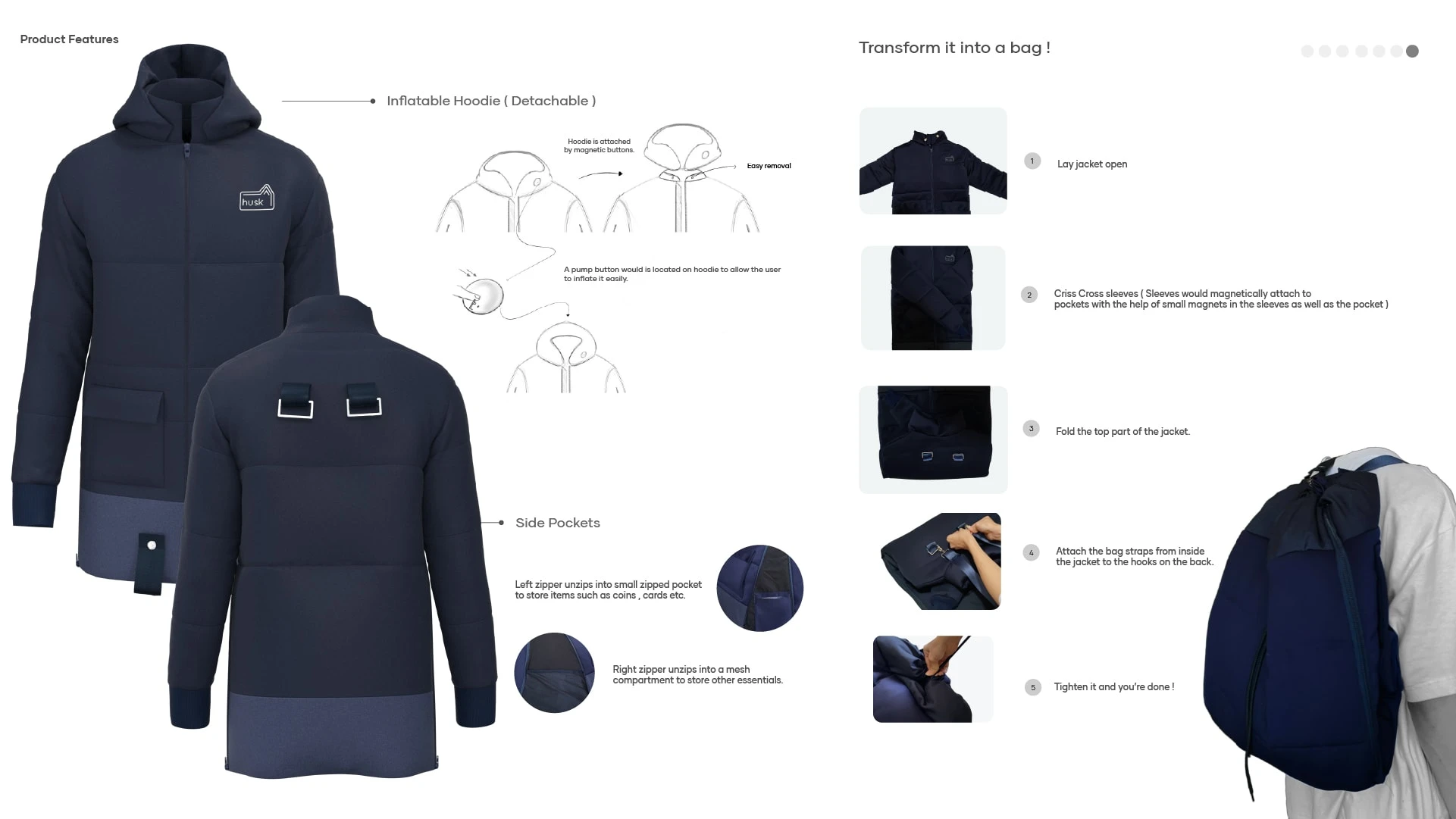 Husk is a project that reimagines purpose through multi-functionality. Its versatility aids crucial problems during tough times all while being a single item.