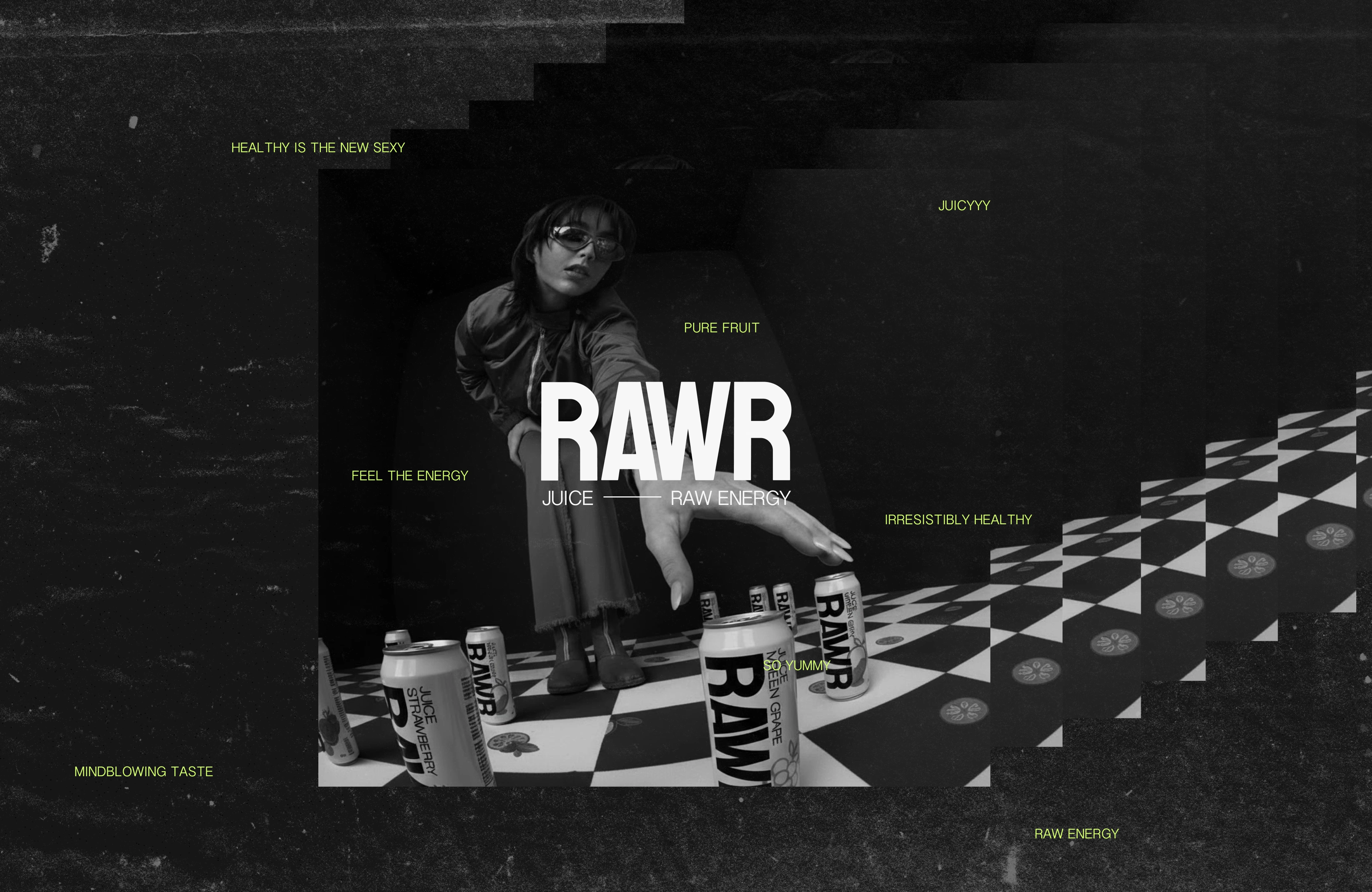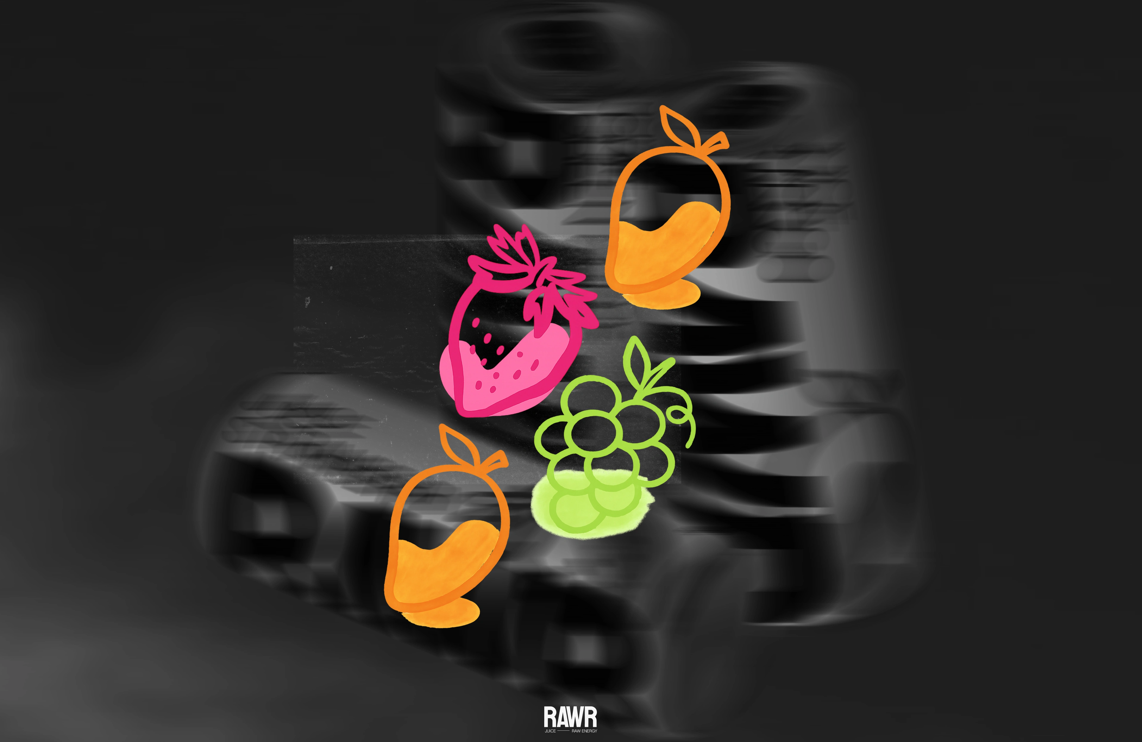 RAWR- Bold juice brand that redefines what “healthy” looks like. RAWR fuses raw energy, vibrant color, and confident attitude - blending fashion typography with playful fruit visuals. It celebrates the idea that healthy can be loud, sexy, and full of flavor.