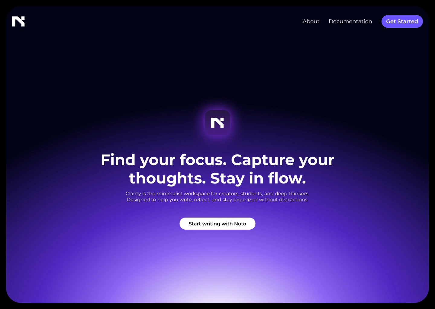 Noto is a fictional minimalist note-taking and focus app designed for deep thinkers, writers, and students who want a distraction-free space to capture their thoughts.