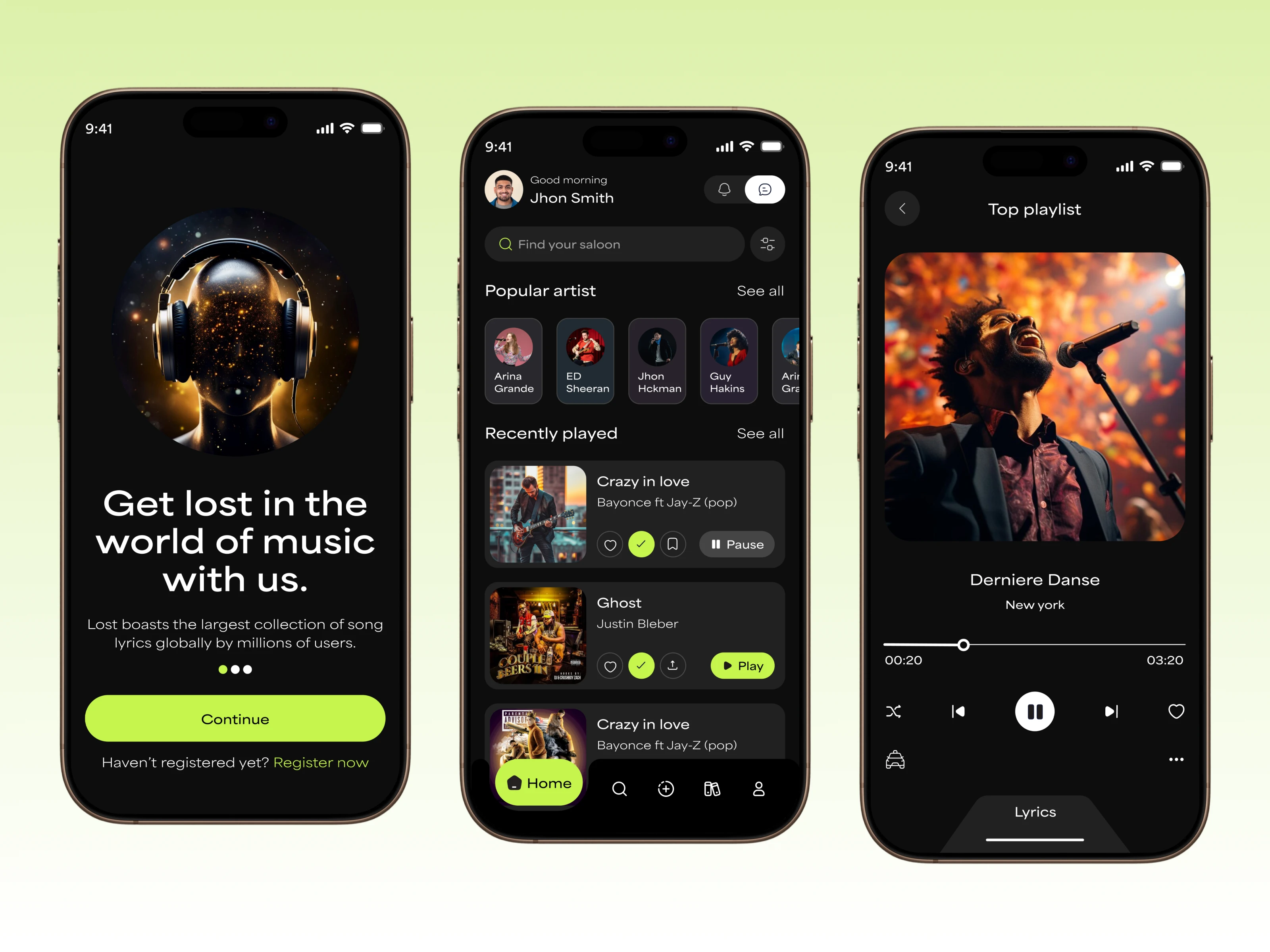 "Introducing our AI-powered Spotify Music Mobile App design concept, combining sleek UI with smart music recommendations. The modern interface ensures effortless navigation, personalized playlists, and immersive music experiences. Crafted for music lovers, this redesign enhances usability, engagement, and aesthetic appeal for seamless audio streaming."